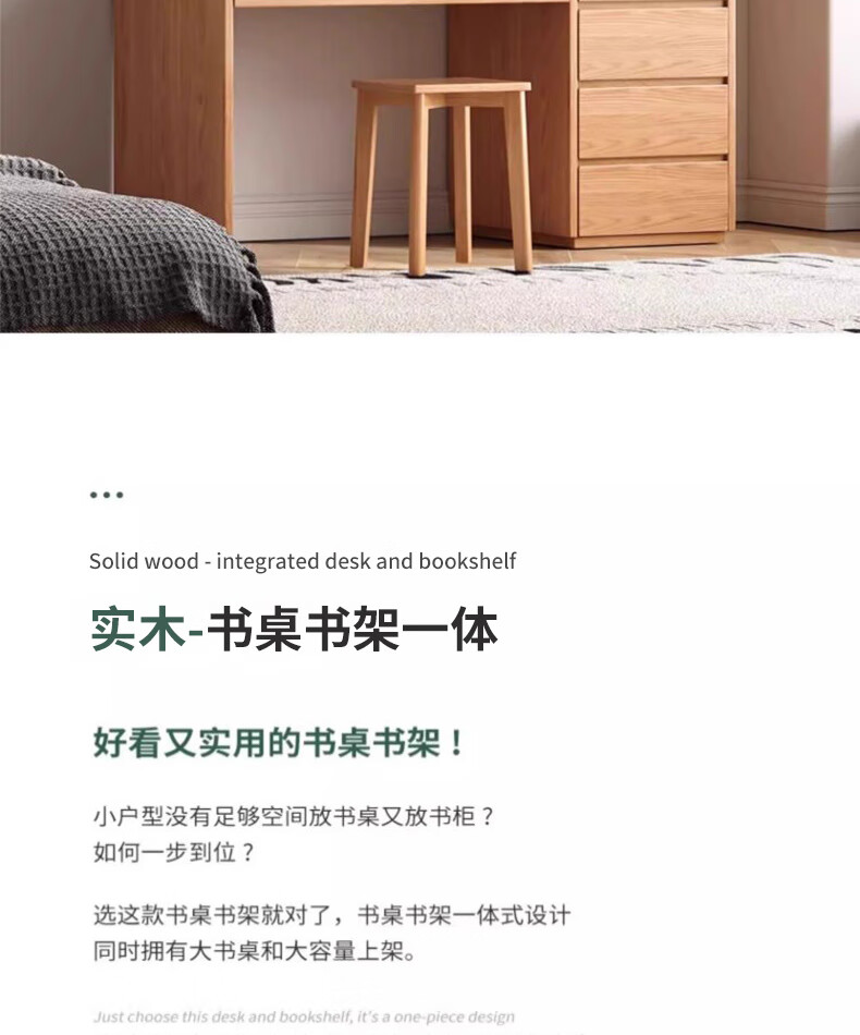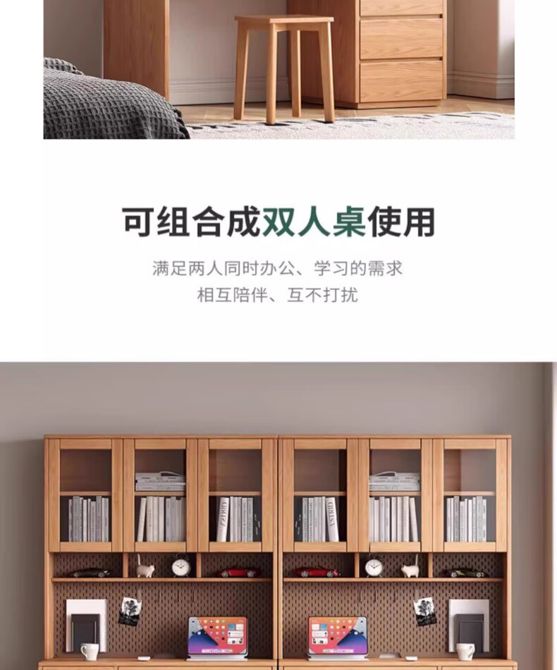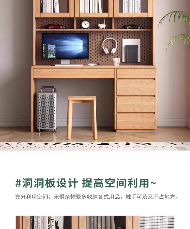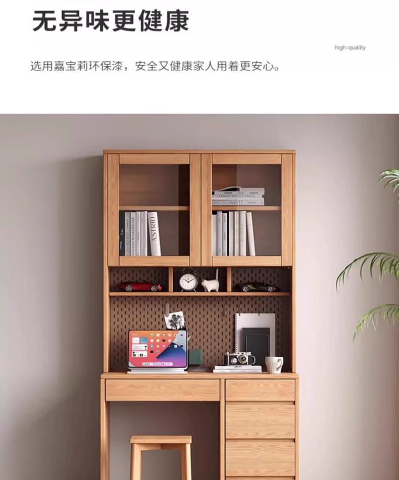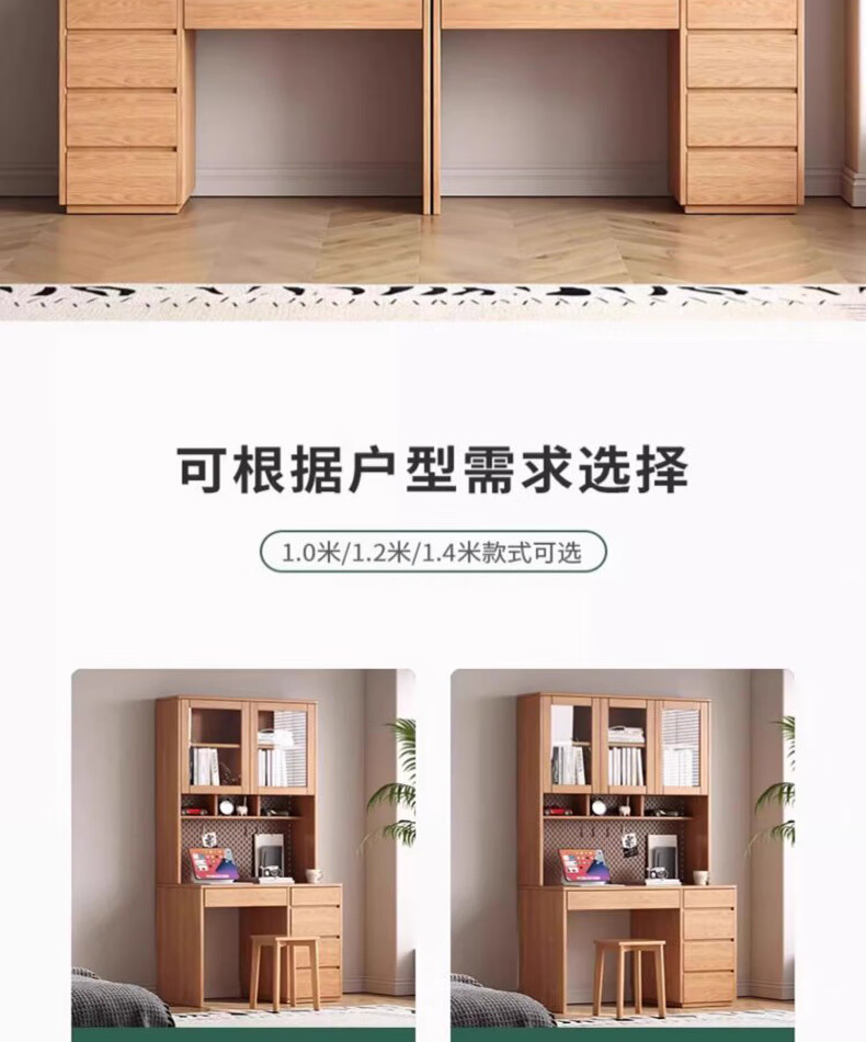 Ulan Guoya includes installation, oak all-solid wood desk and bookshelf integrated table for home bedroom desktop computer desk and bookcase combination, oak model 1.2 meters desk and bookshelf