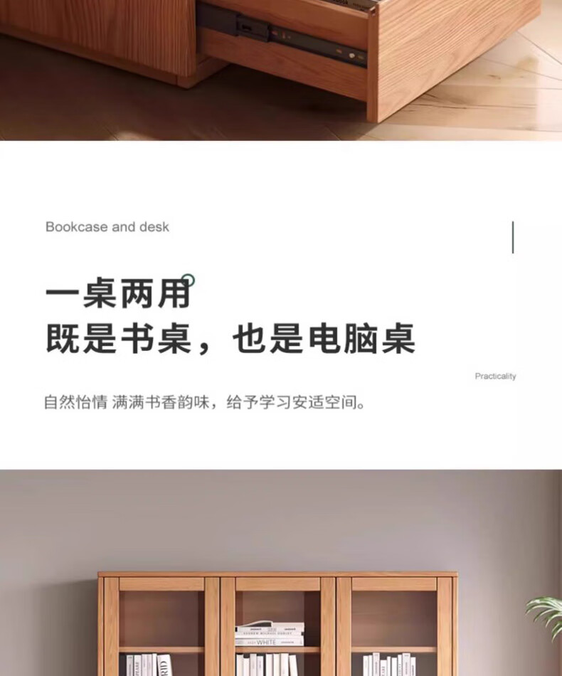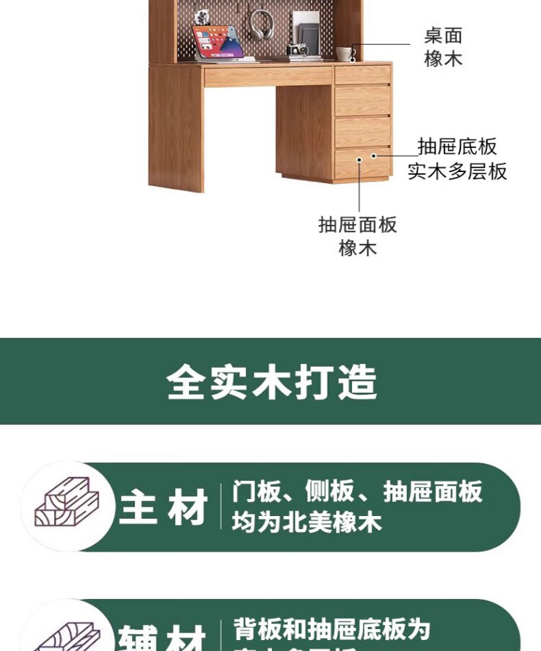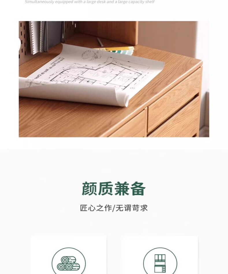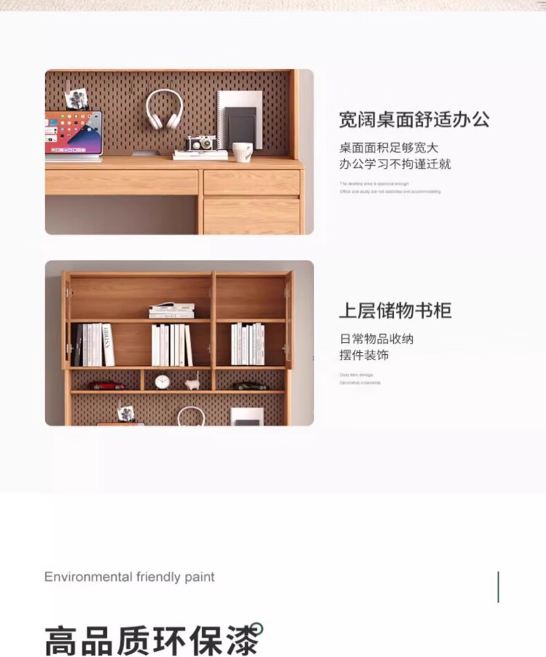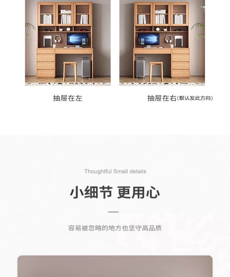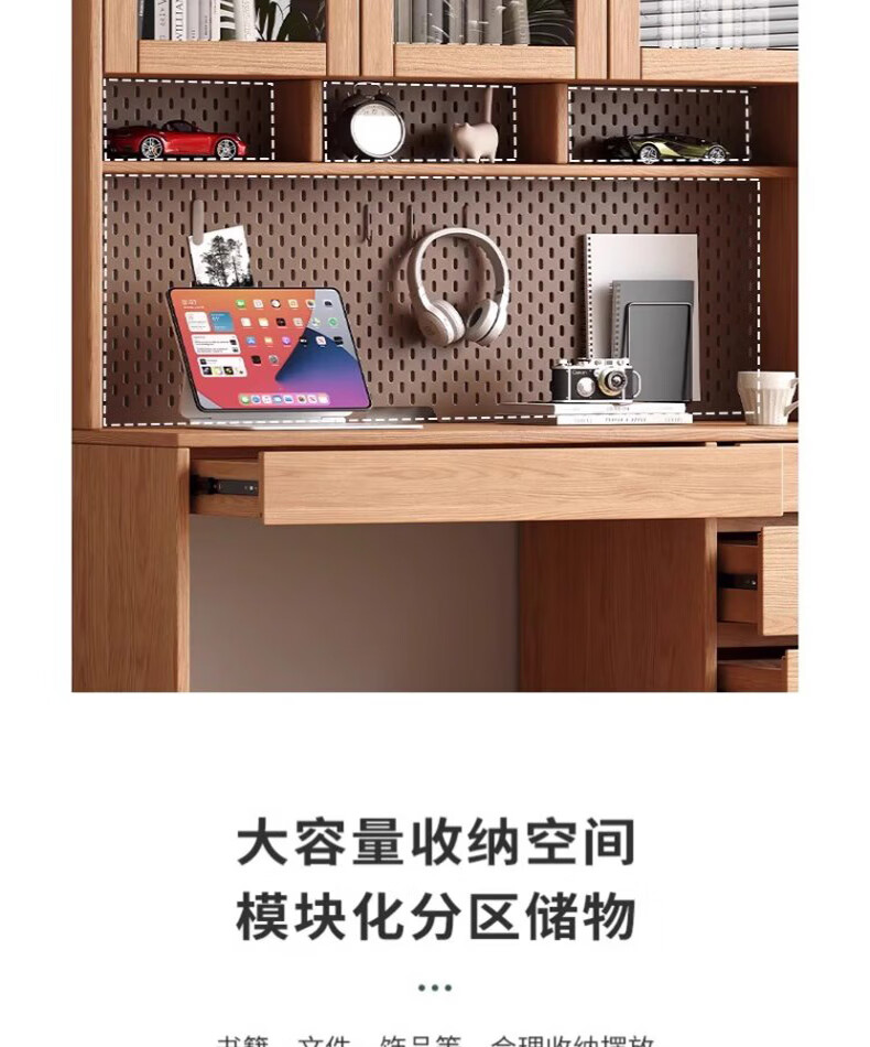 Ulan Guoya includes installation, oak all-solid wood desk and bookshelf integrated table for home bedroom desktop computer desk and bookcase combination, oak model 1.2 meters desk and bookshelf