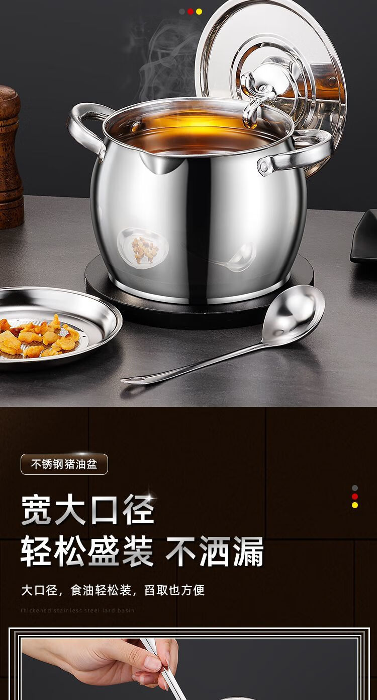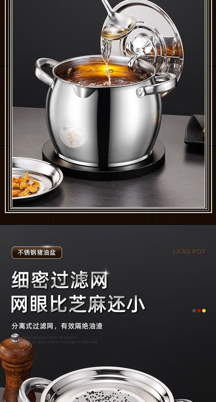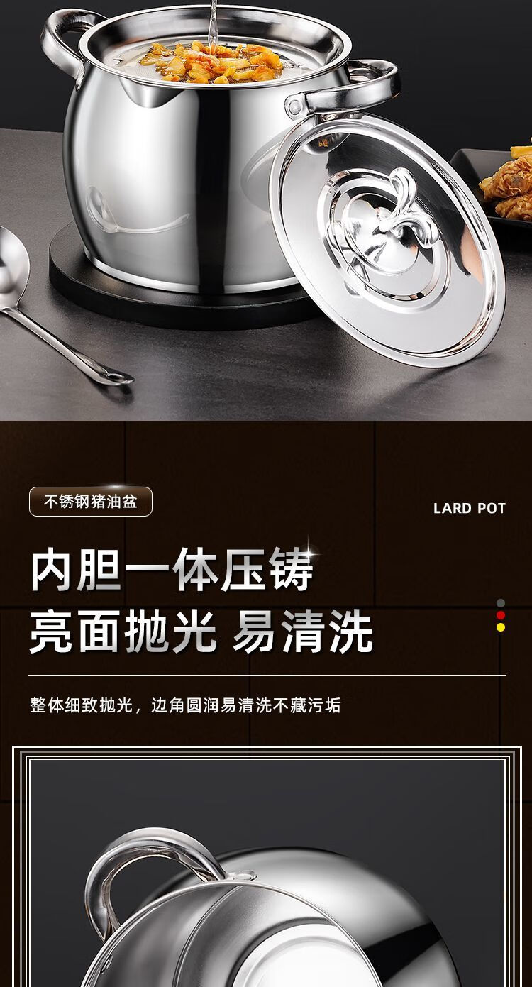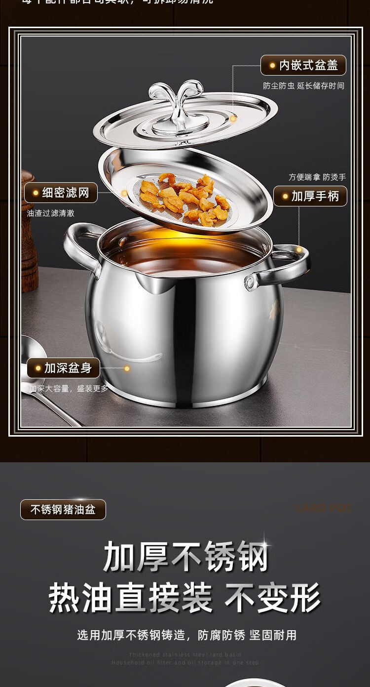 Chaosihui stainless steel lard tank with filter and lid double-eared lard pot household high temperature resistant large capacity lard barrel medium high temperature resistant 600 ml without lid low price thickened steel flagship model