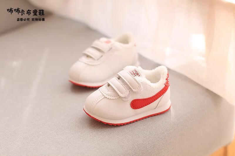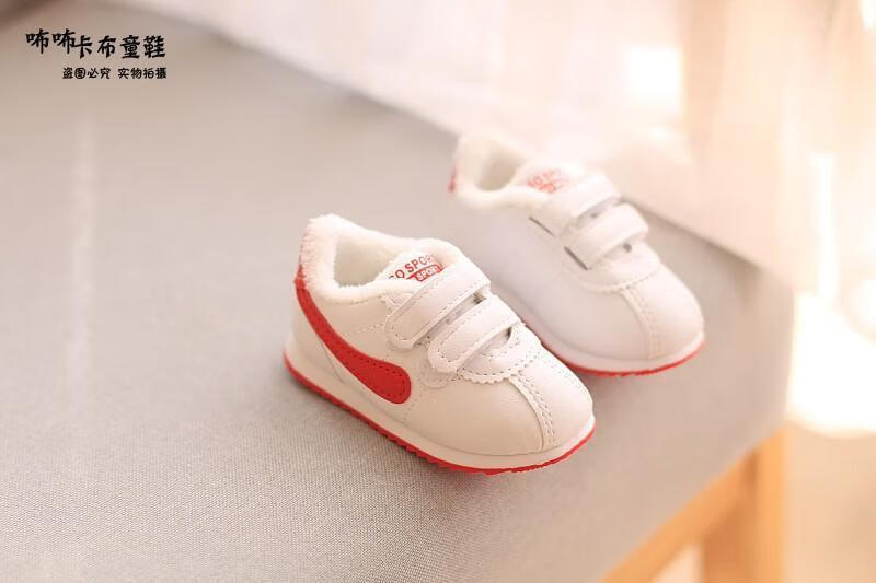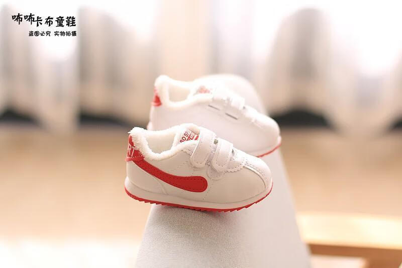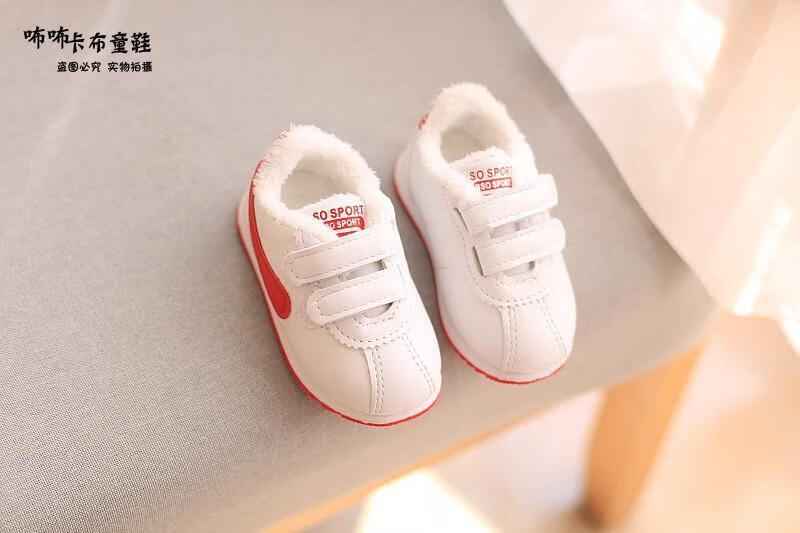 Remtin shoes winter boys' shoes-year-old female infant toddler shoes plus velvet cotton shoes 2003 cotton red 19 inner length 13.5 cm
