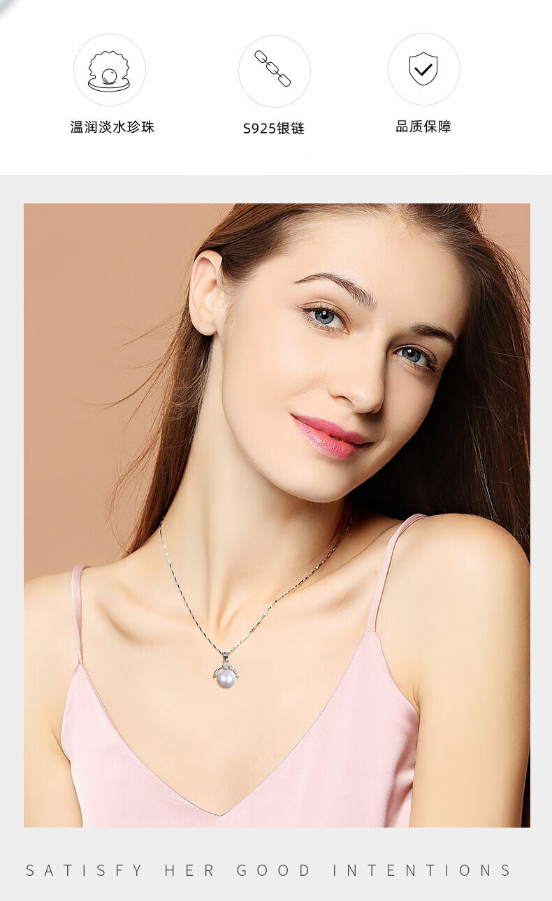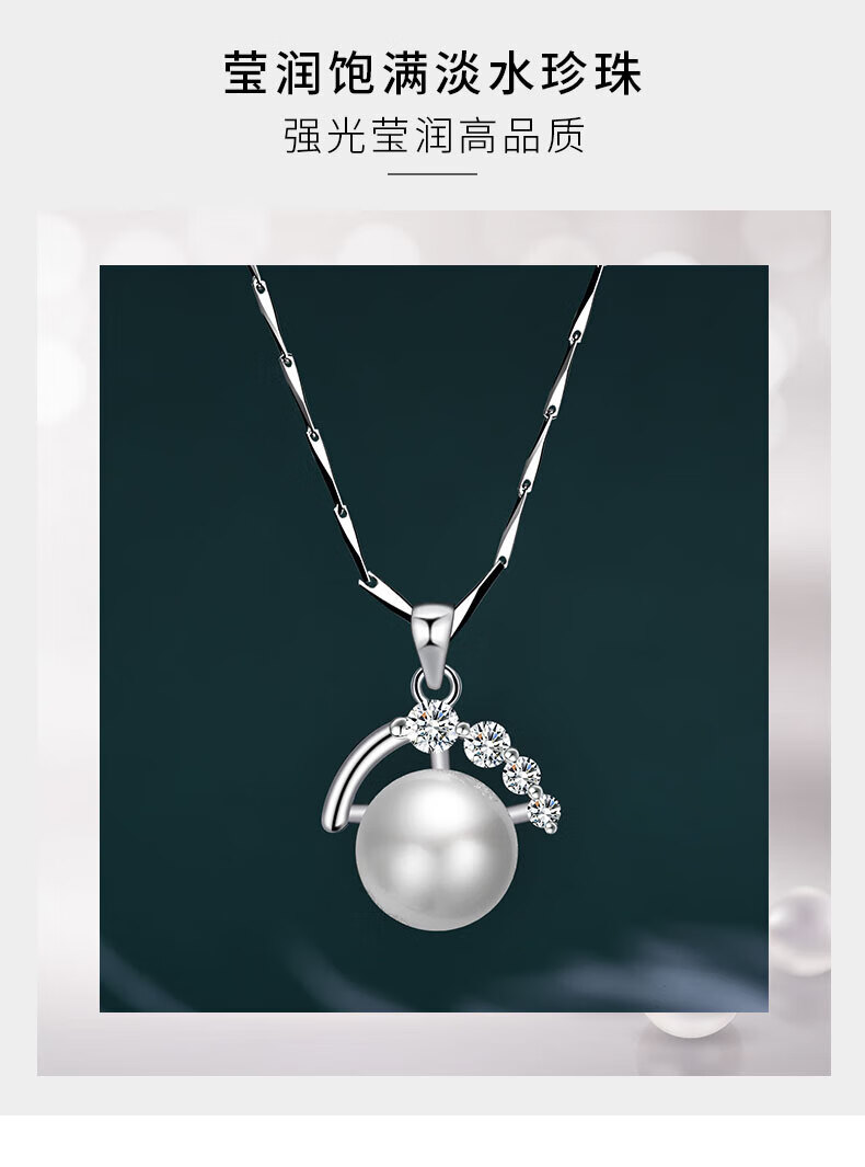Chow Tai Fook Pearl Necklace Mother's Birthday Gift Mother's Day Gift Practical for Mother-in-Law S925 Silver Freshwater Pearl