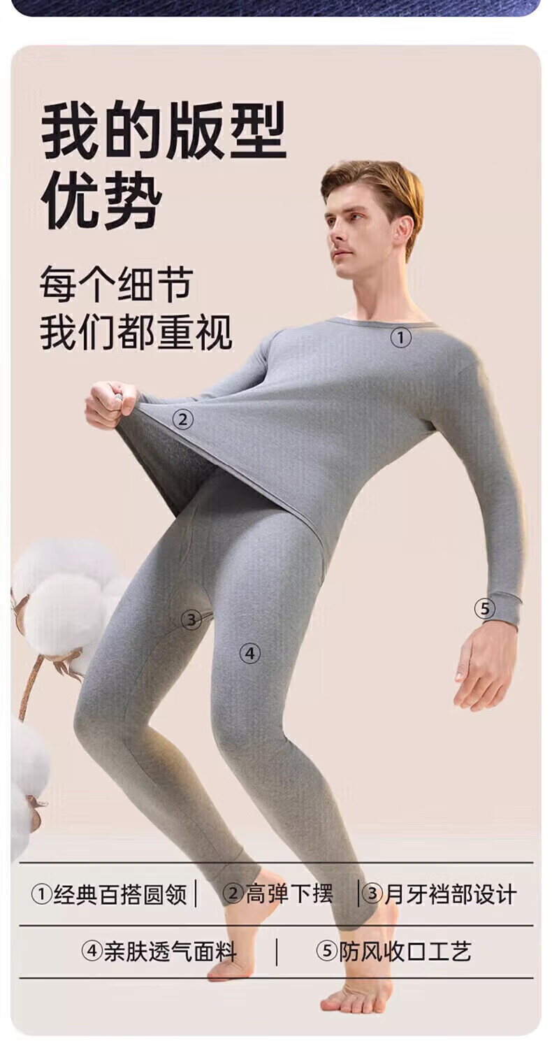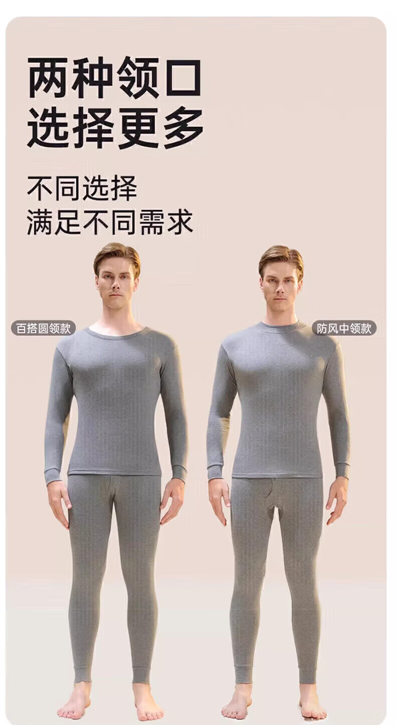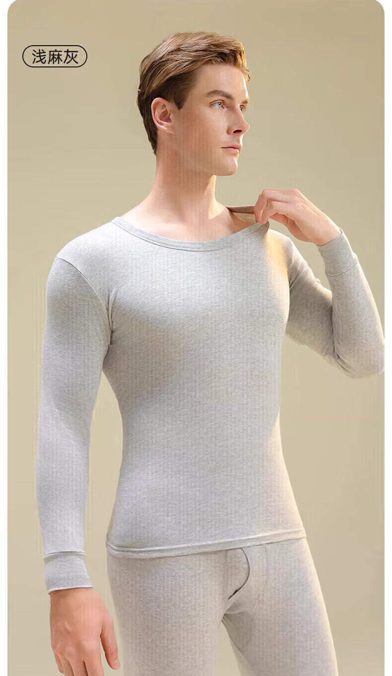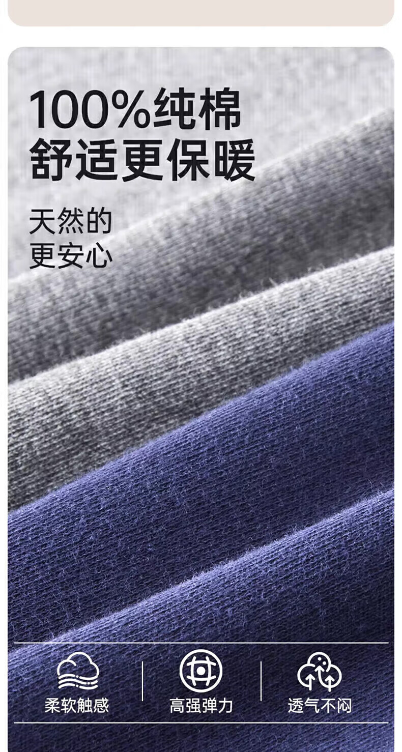 Yalu middle-aged and elderly autumn clothes and long johns men's suit pure cotton bottoming cotton sweater men's cotton thermal underwear autumn and winter dark gray pure cotton middle collar 10A antibacterial XL recommended 120-150Jin Jin equals 0.5 kg