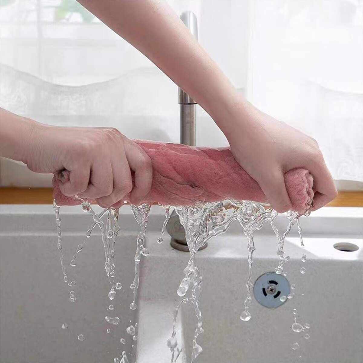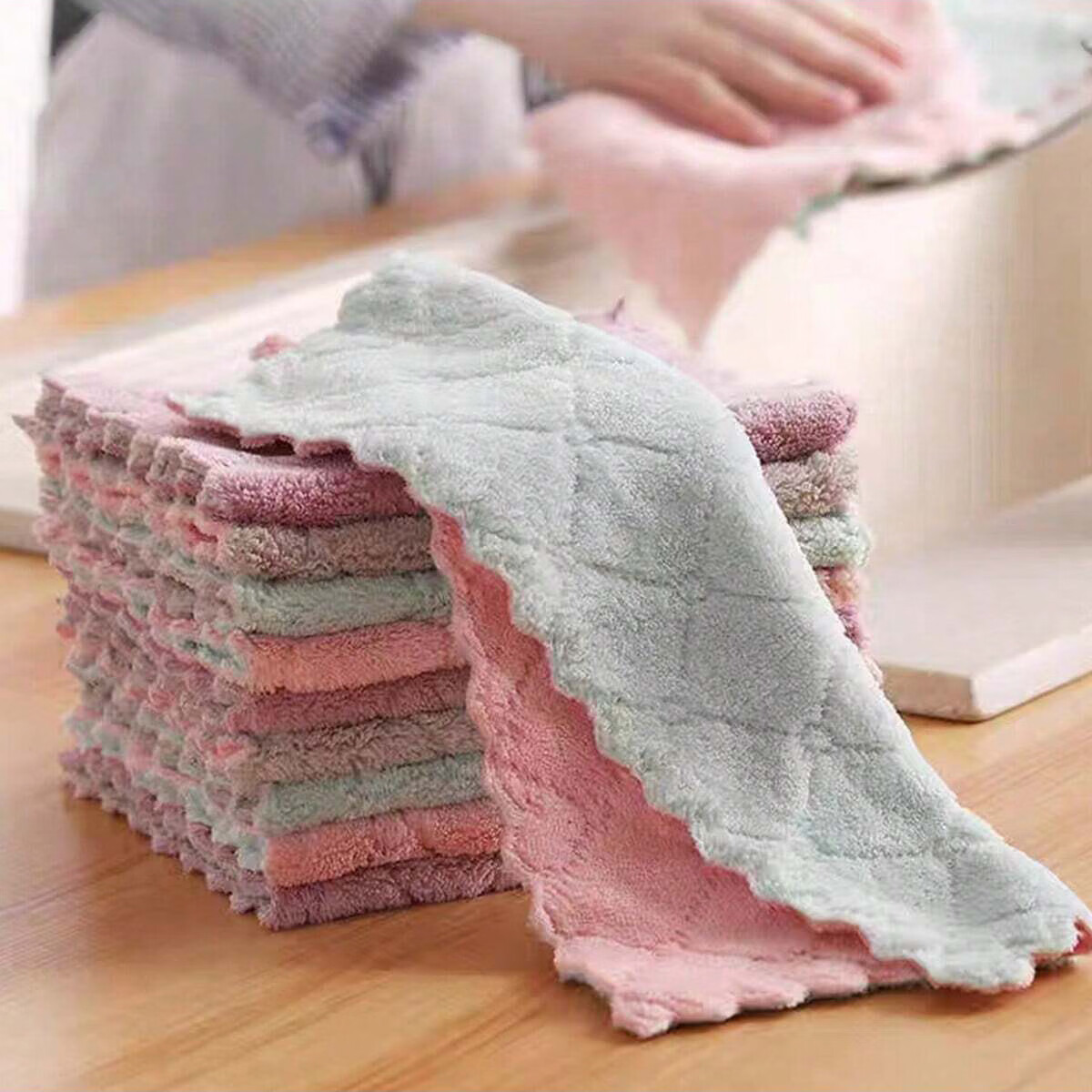 Coral velvet double-sided two-color rags household dish towels kitchen cleaning absorbent rags mixed colors 10 pieces two-color rags with random colors