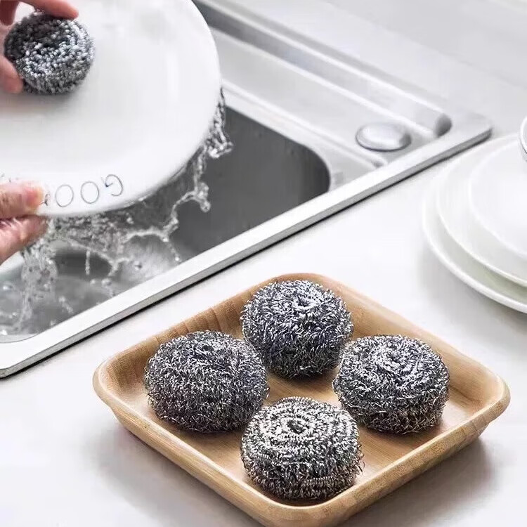 Stainless steel wire ball cleaning ball kitchen dishwashing pot cleaning supplies cleaning tools light gray extra large 15g 4 pieces