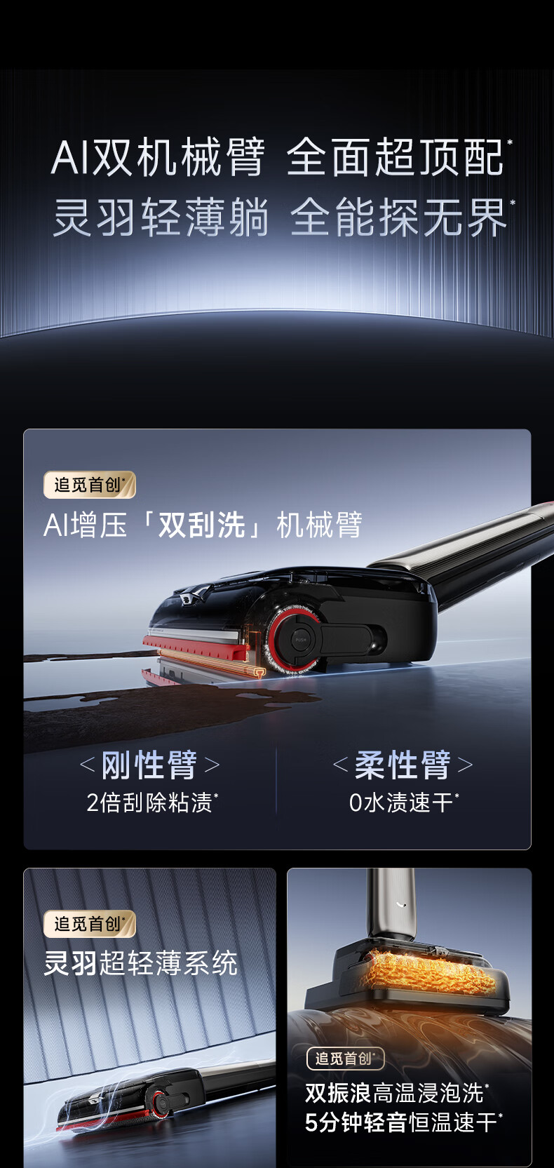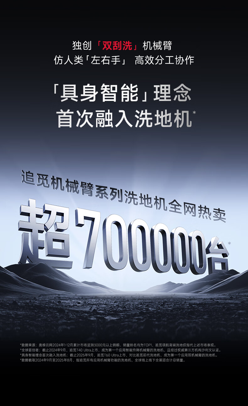 Chaimi floor washing machine T60 Ultra dual mechanical arms ultra-thin washing and mopping all-in-one automatic cleaning and mopping machine household sweeping robot 25Kpa large suction state-subsidized vacuum cleaner