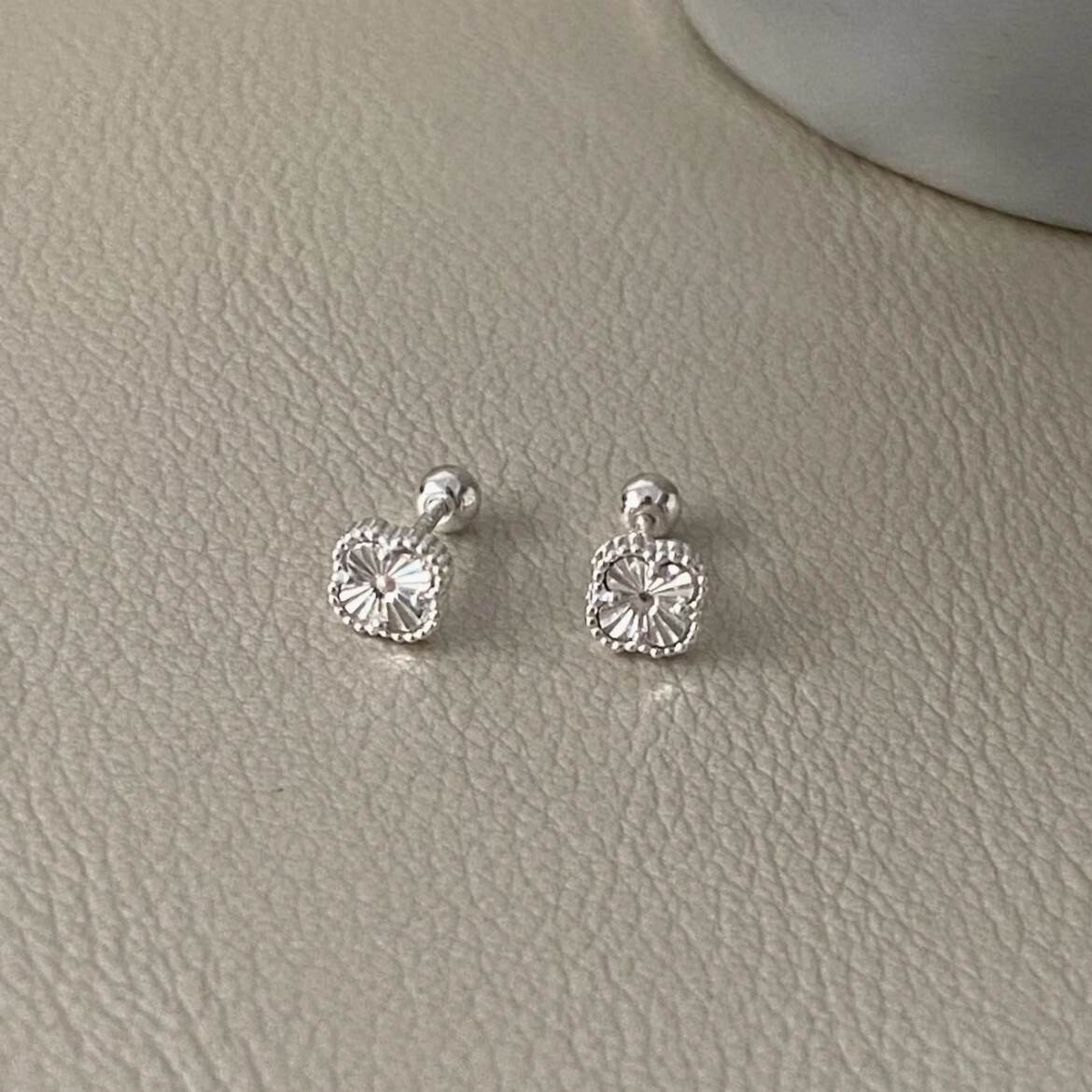 European painted four-leaf clover earrings sterling silver earrings 999 pierced ears for sleeping without removing earrings women's ear bone nails silver jewelry birthday gift sterling silver four-leaf clover earrings two pack
