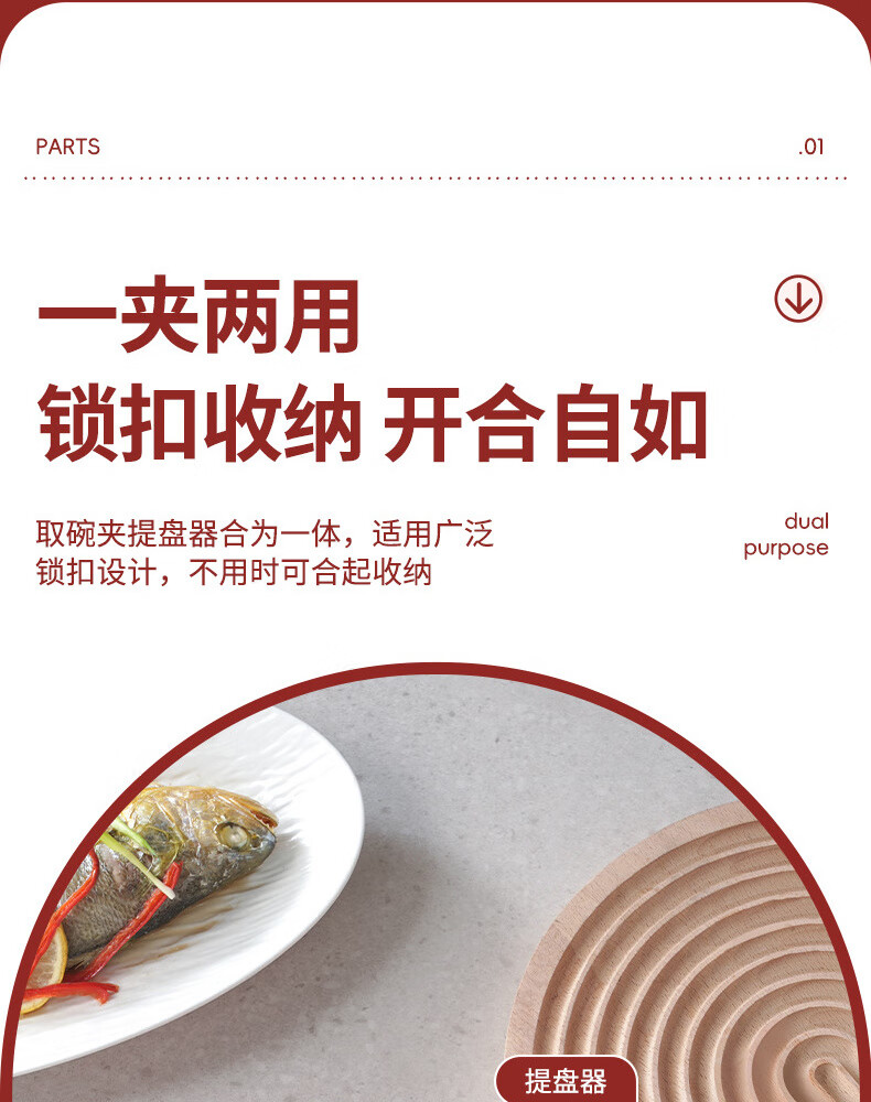 ROP Japanese two-in-one anti-scalding bowl artifact kitchen plate lifter plate clamp non-slip vegetable tongs hot vegetable steaming vegetable clip white dual-purpose anti-scalding bowl and plate clamp