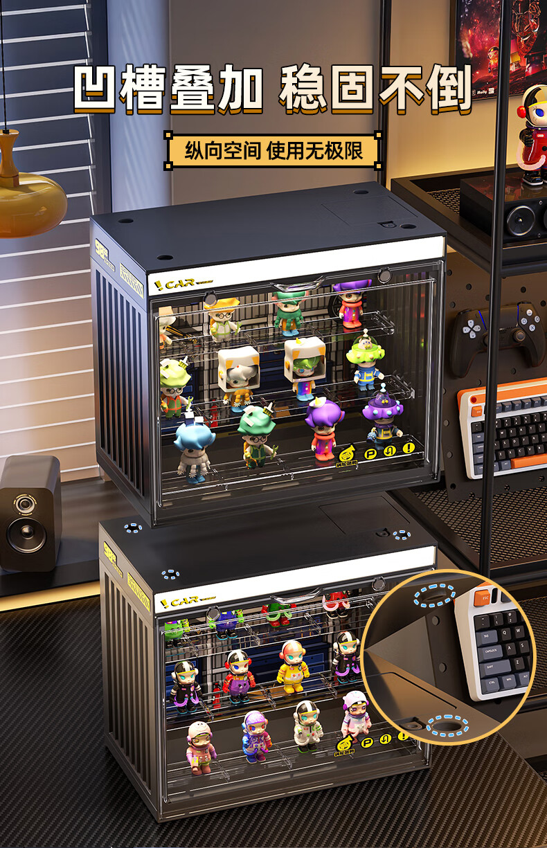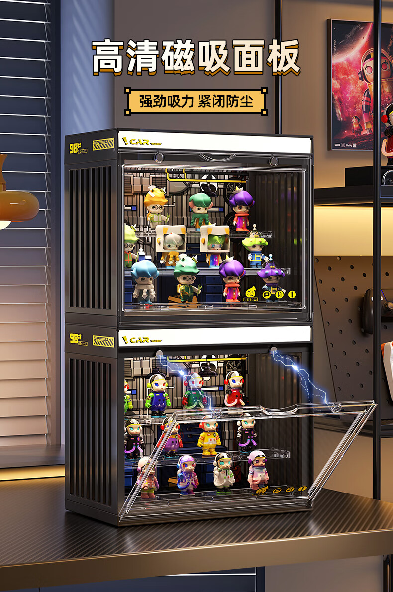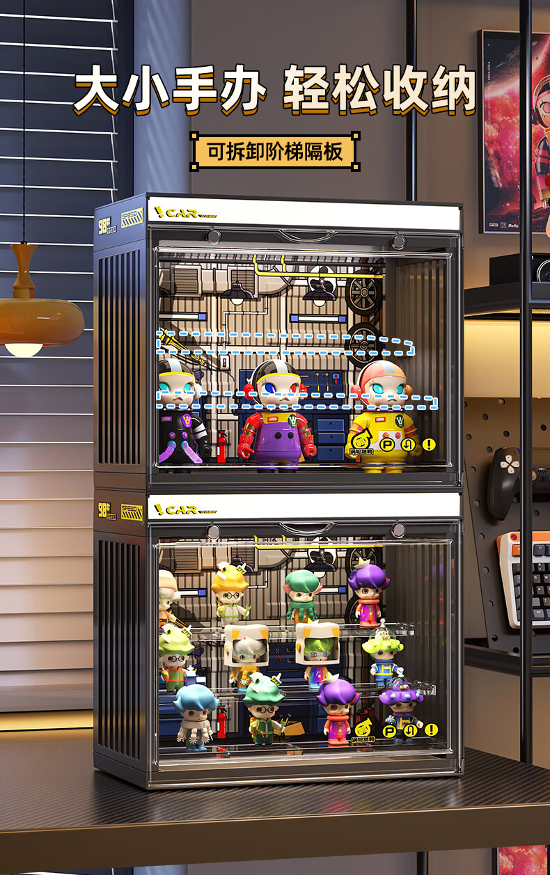 KAMAN blind box storage display stand suitable for Bubble Mart display box figure container transparent dust-proof display cabinet with light, fashionable white with light/three layers 3 pcs