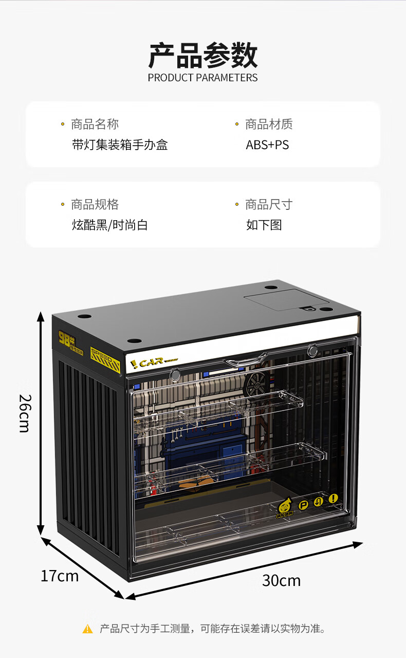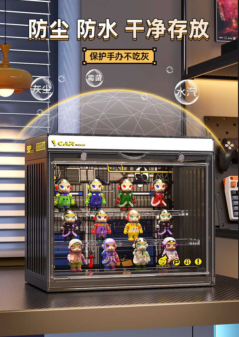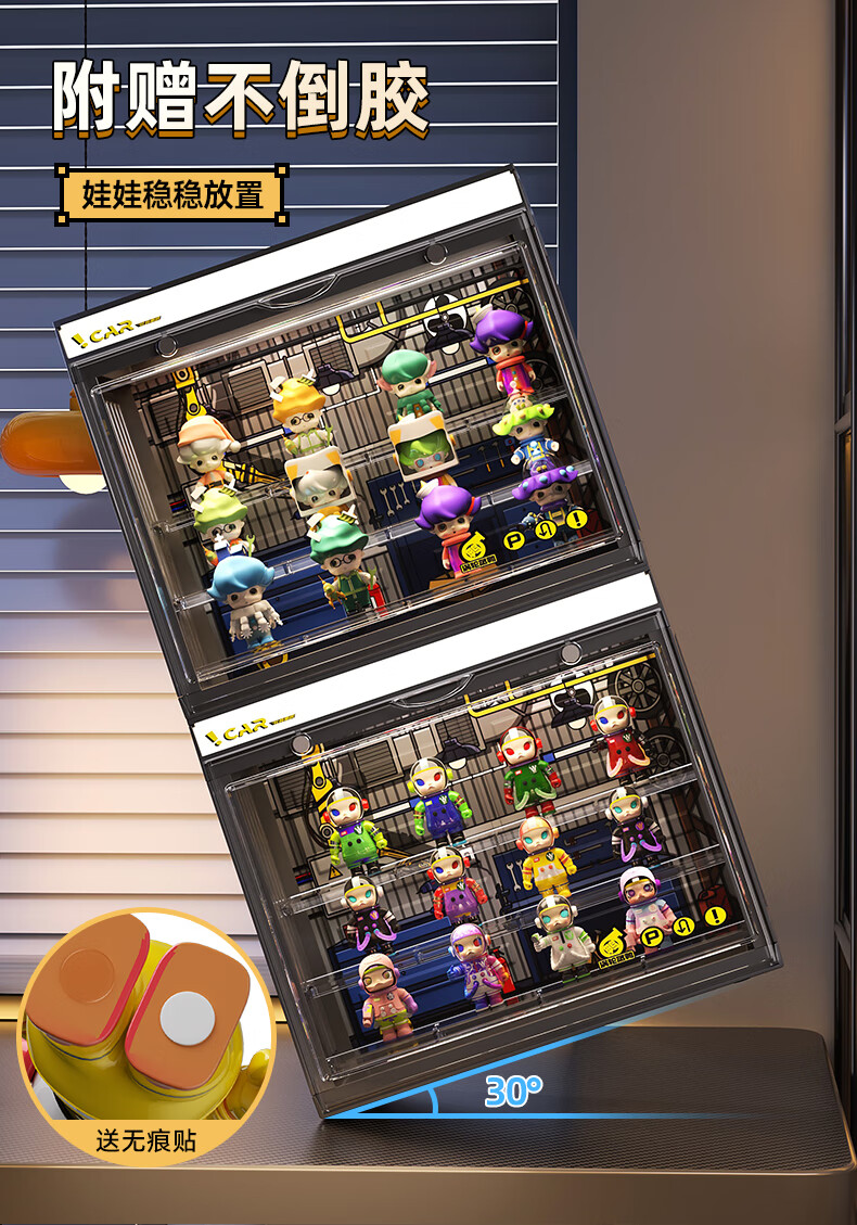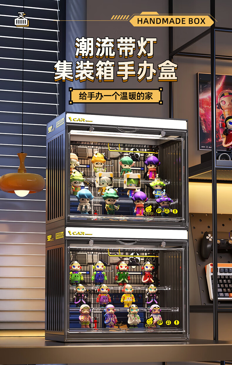 KAMAN blind box storage display stand suitable for Bubble Mart display box figure container transparent dust-proof display cabinet with light, fashionable white with light/three layers 3 pcs