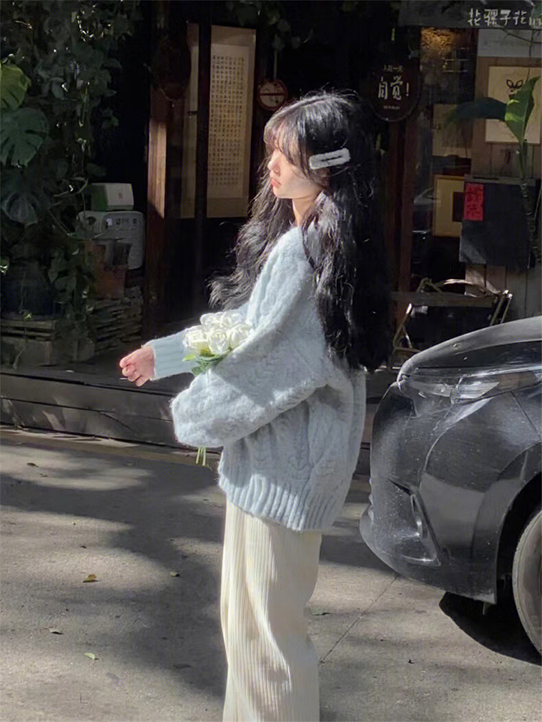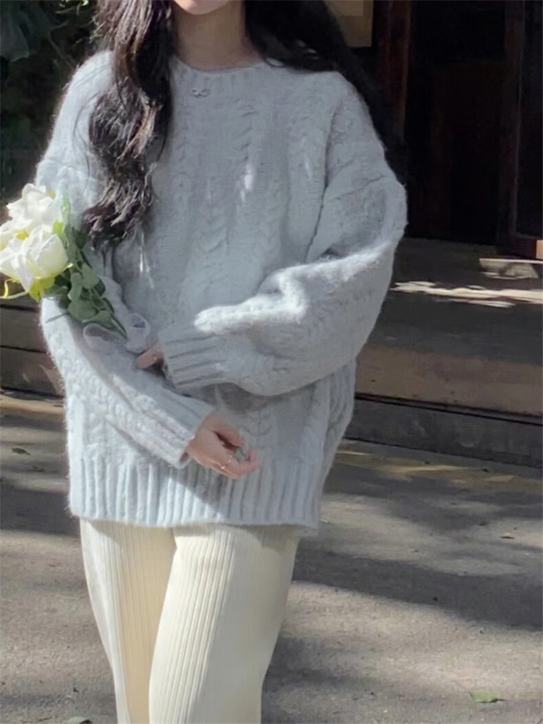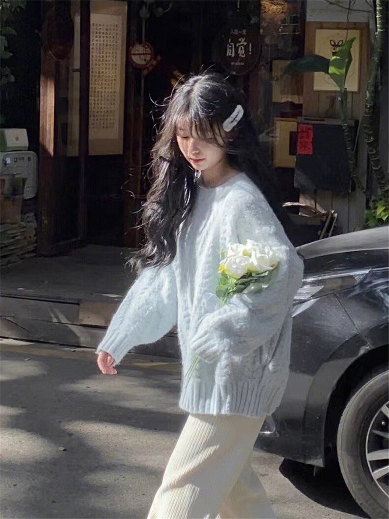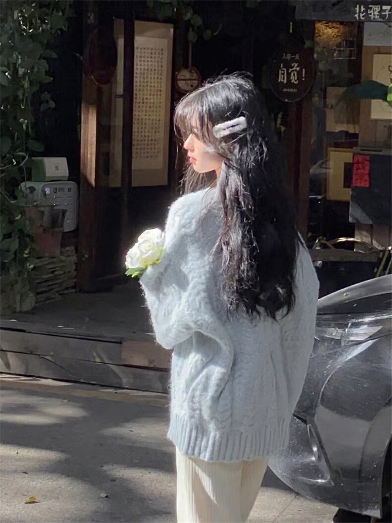 Oubaixi Sweater Women's Spring and Autumn Thickened Soft Waxy Inner Bottoming Sweater 2026 New Women's Feel Top Jacket Light Blue One Size Recommended 80-130 Jin Jin equals 0.5 kg
