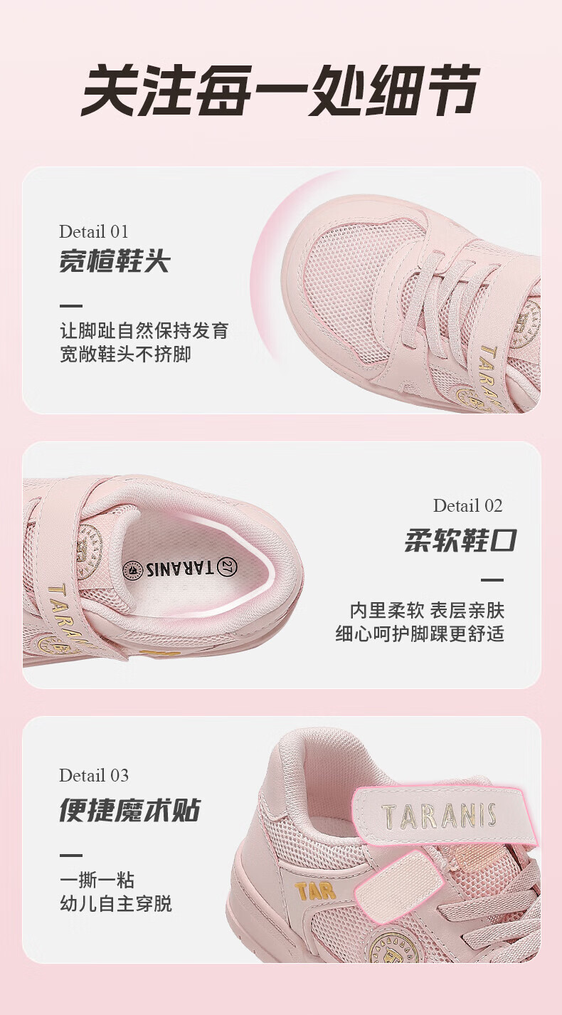 Tyrannis children's shoes autumn new children's sneakers boys' casual shoes girls' comfortable sports shoes campus cool sneakers pink single mesh 29 suitable for feet 18.0cm long