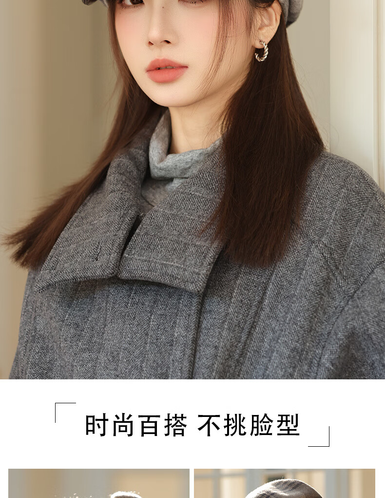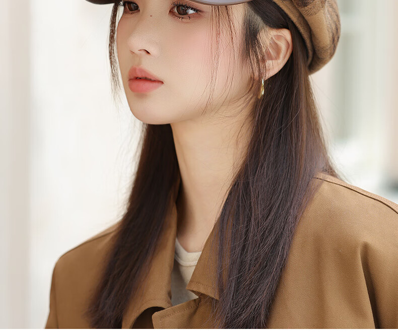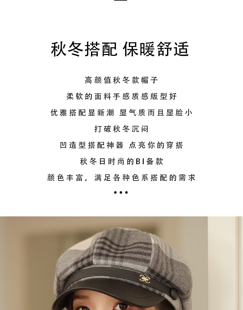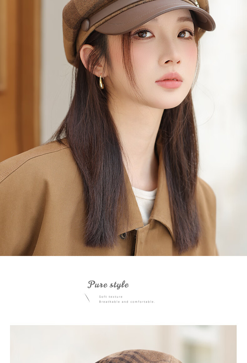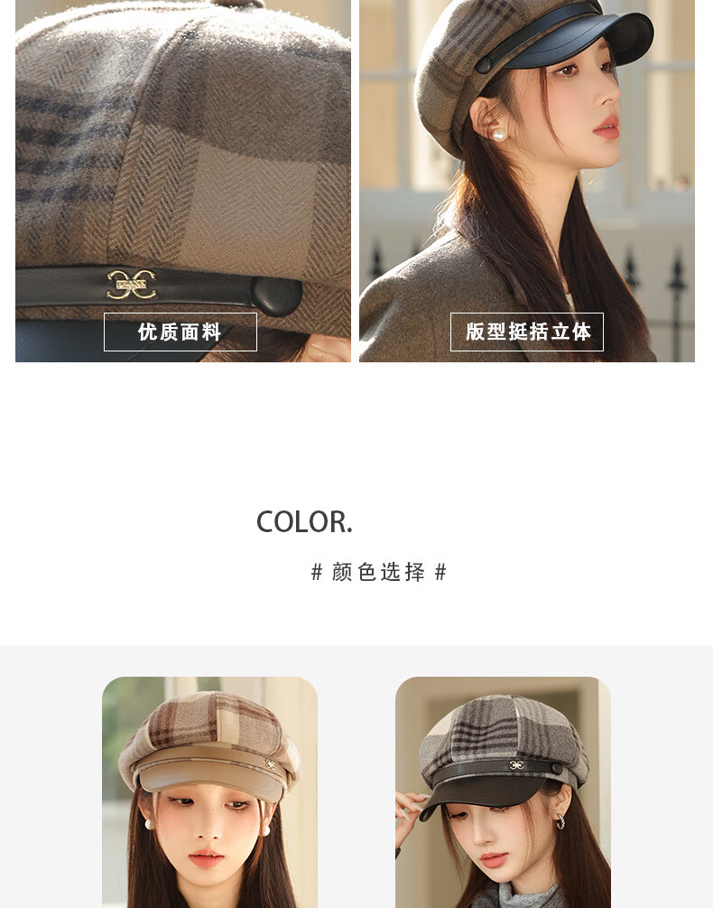 Jimmy Leaf Octagon Hat Women's Autumn and Winter Plaid Beret Casual and Versatile British Style Peaked Hat Warm Painter Hat Coffee One-size-fits-all Head Circumference 55-58CM