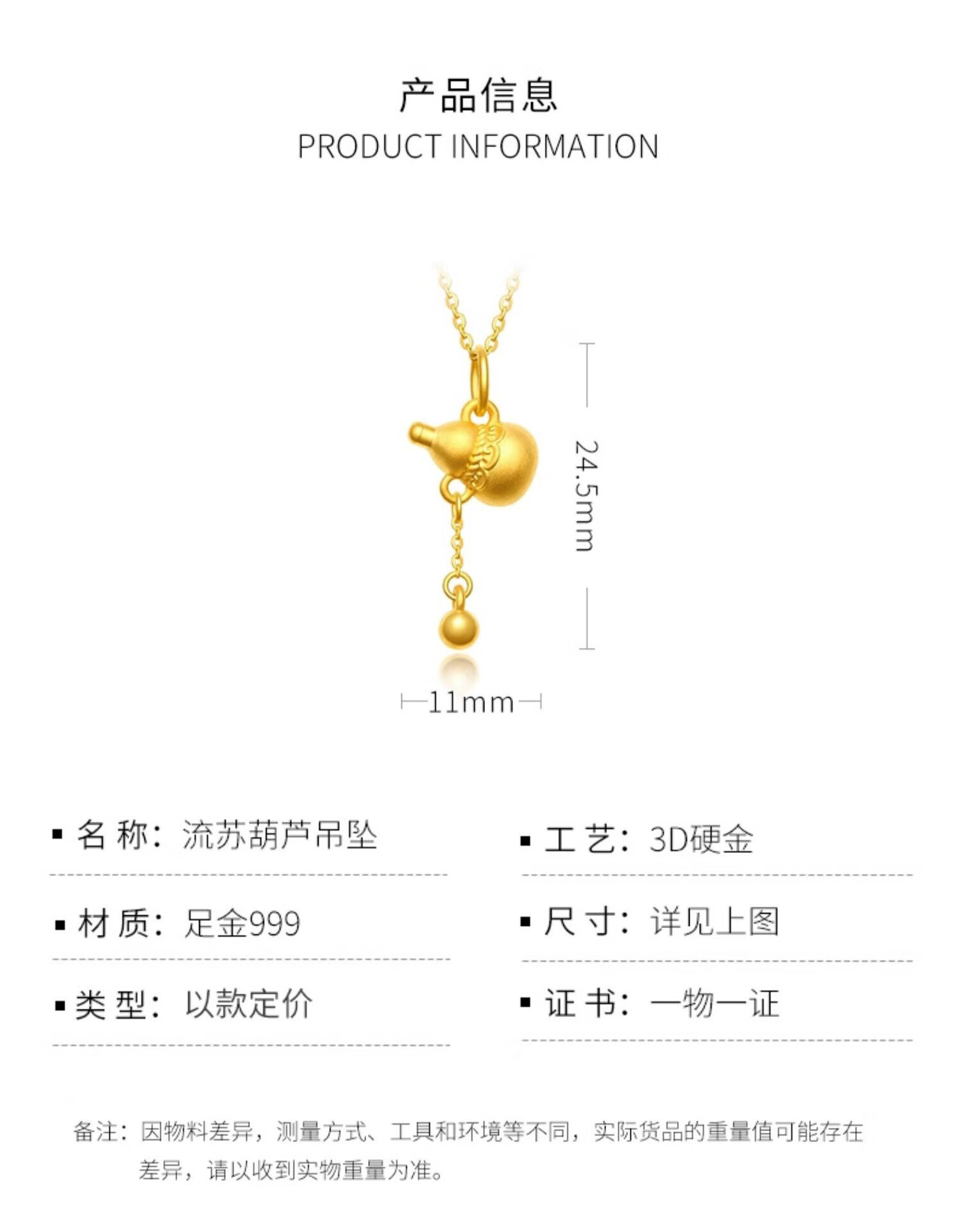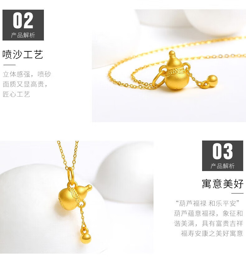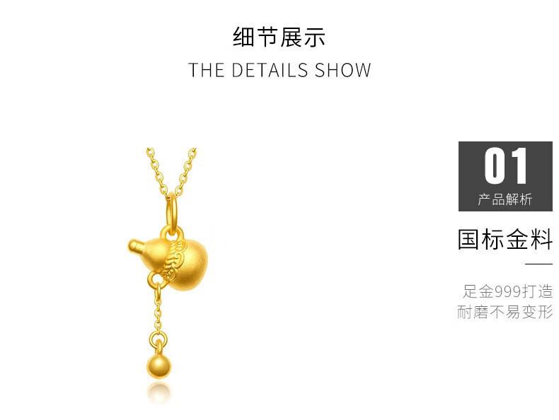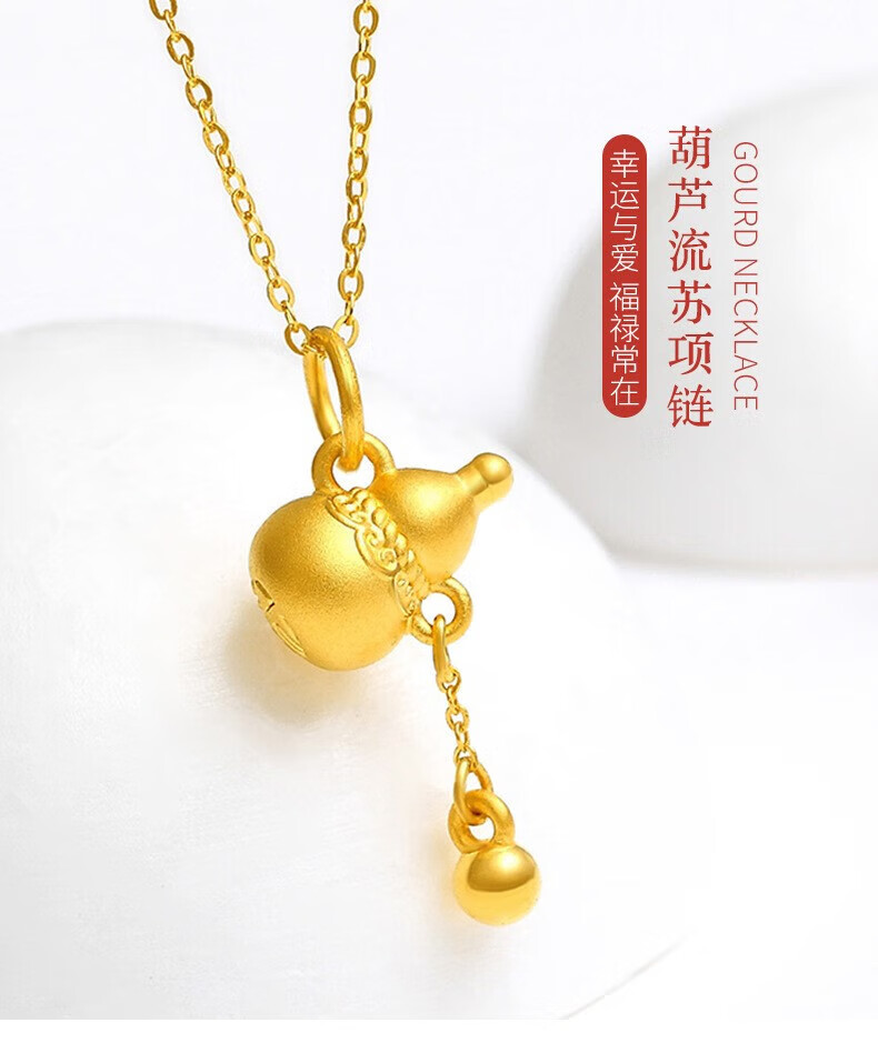 Chow Tai Fook Gold Pure Gold 999 Tassel Gourd Pendant Pure Gold Women's Jewelry 24K Pure Gold Clavicle Necklace Tassel Gourd Seven with 18k Titanium Gold Chain
