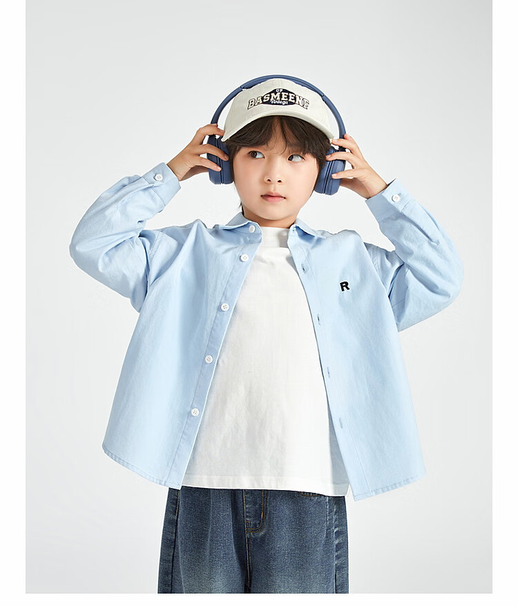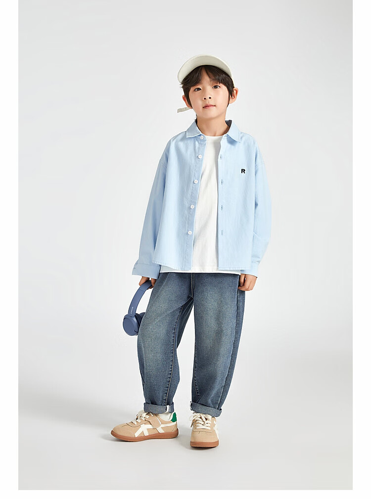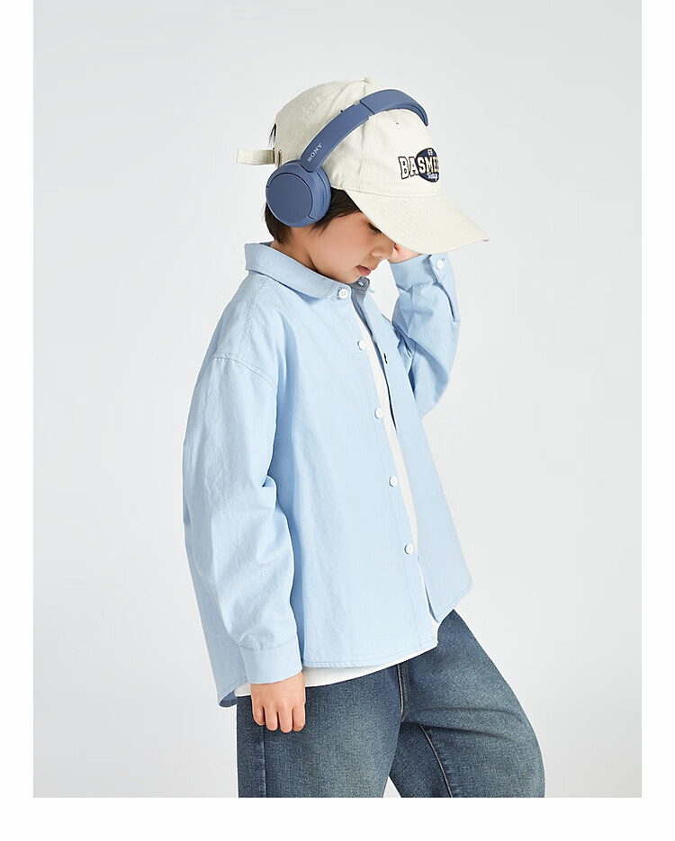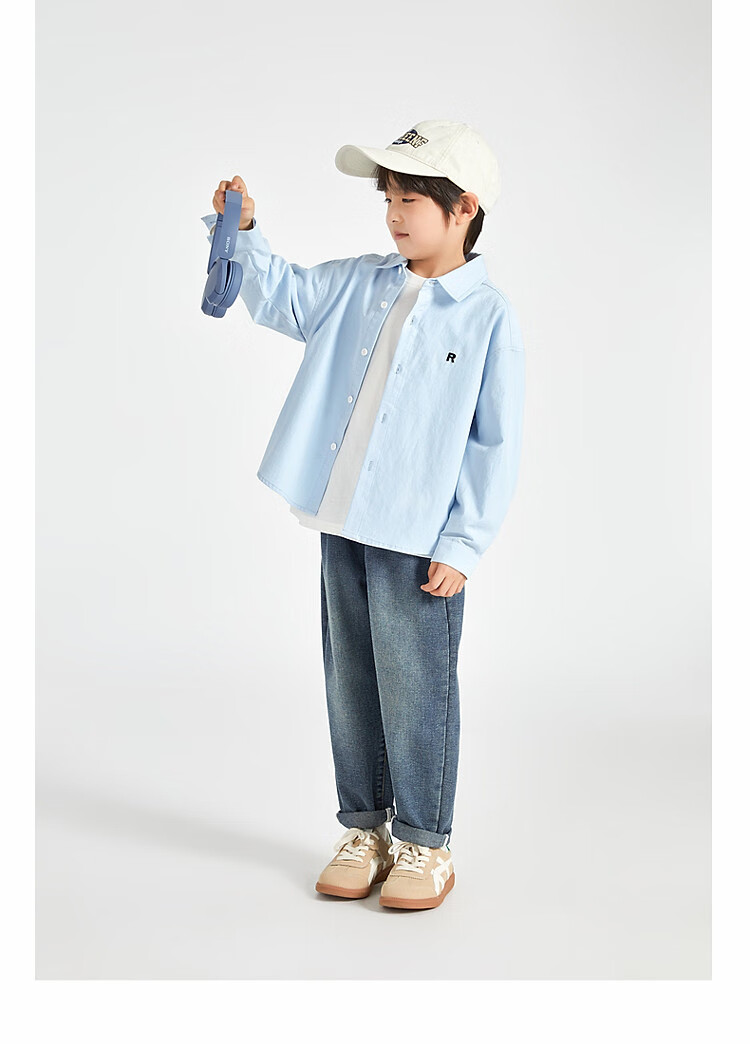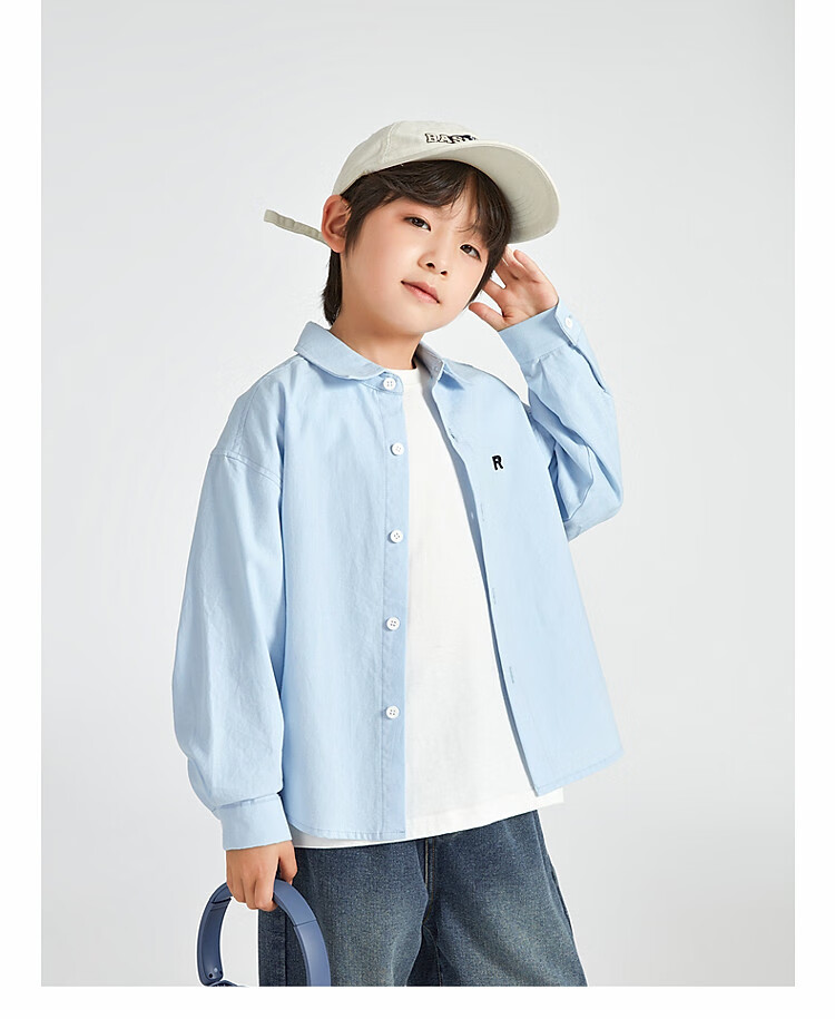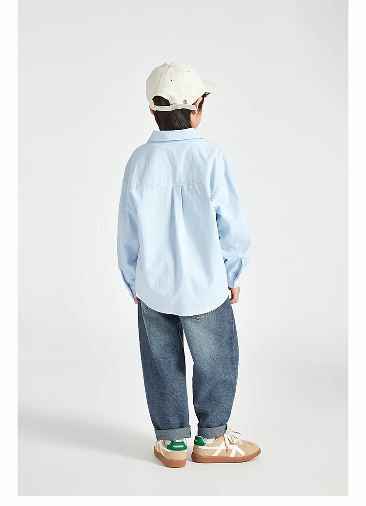 Duojia Boys' Shirts 2025 Spring and Autumn Versatile Casual Children's Breathable Cotton Long-Sleeved Medium and Large Children's Simple Korean Style Shirt Blue 120
