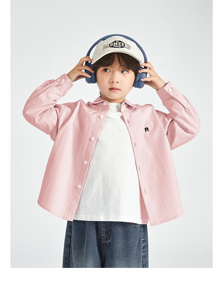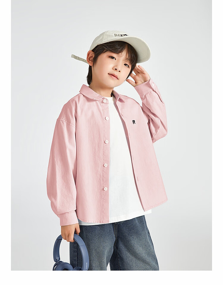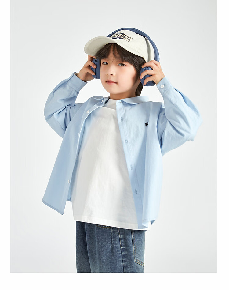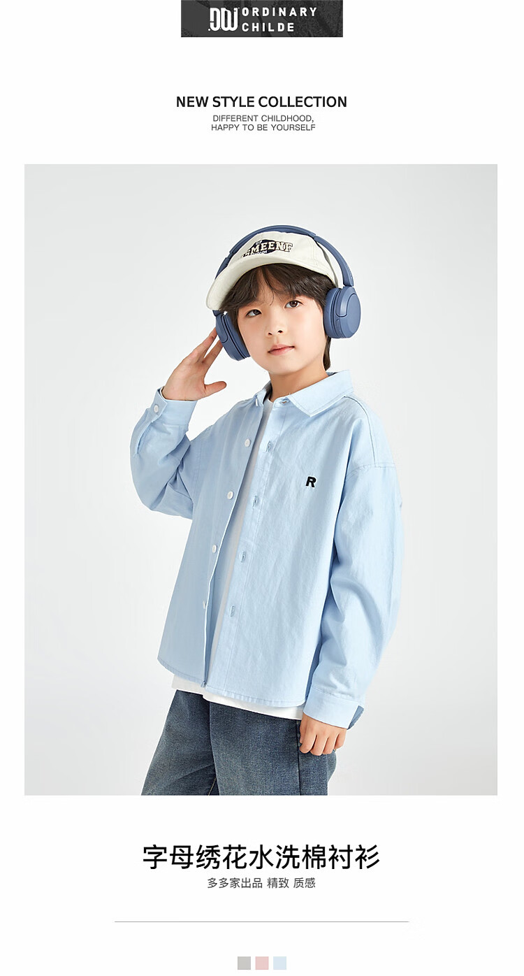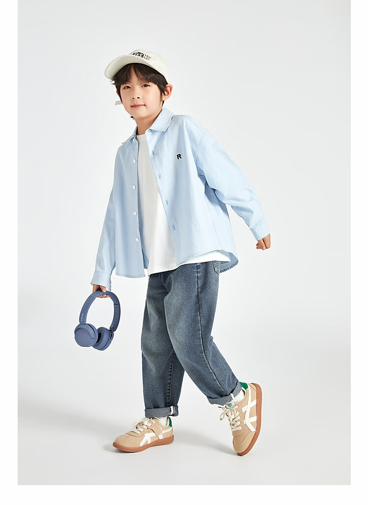 Duojia Boys' Shirts 2025 Spring and Autumn Versatile Casual Children's Breathable Cotton Long-Sleeved Medium and Large Children's Simple Korean Style Shirt Blue 120