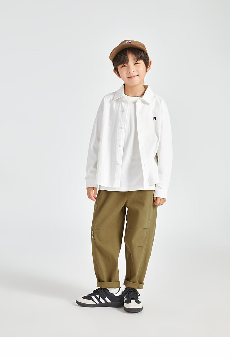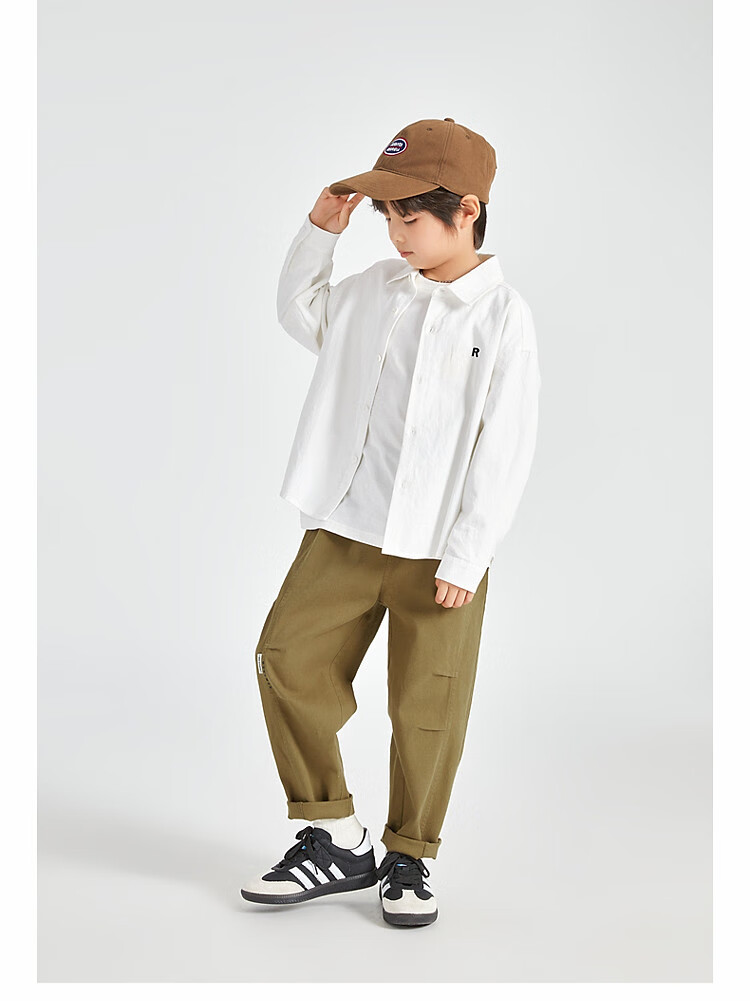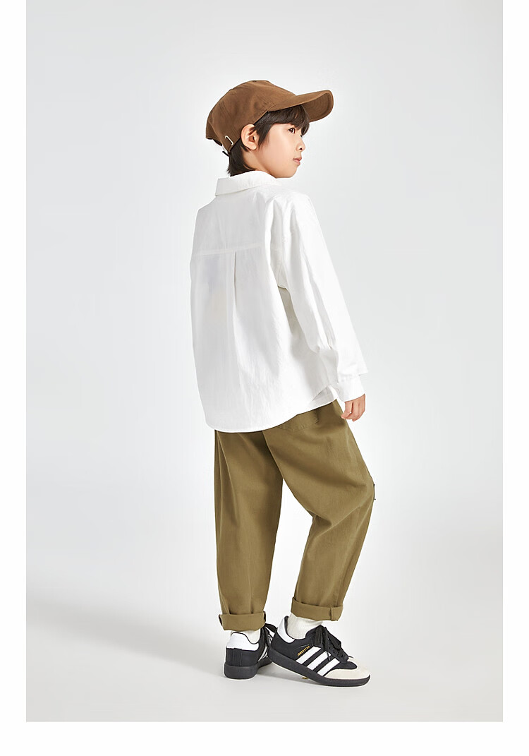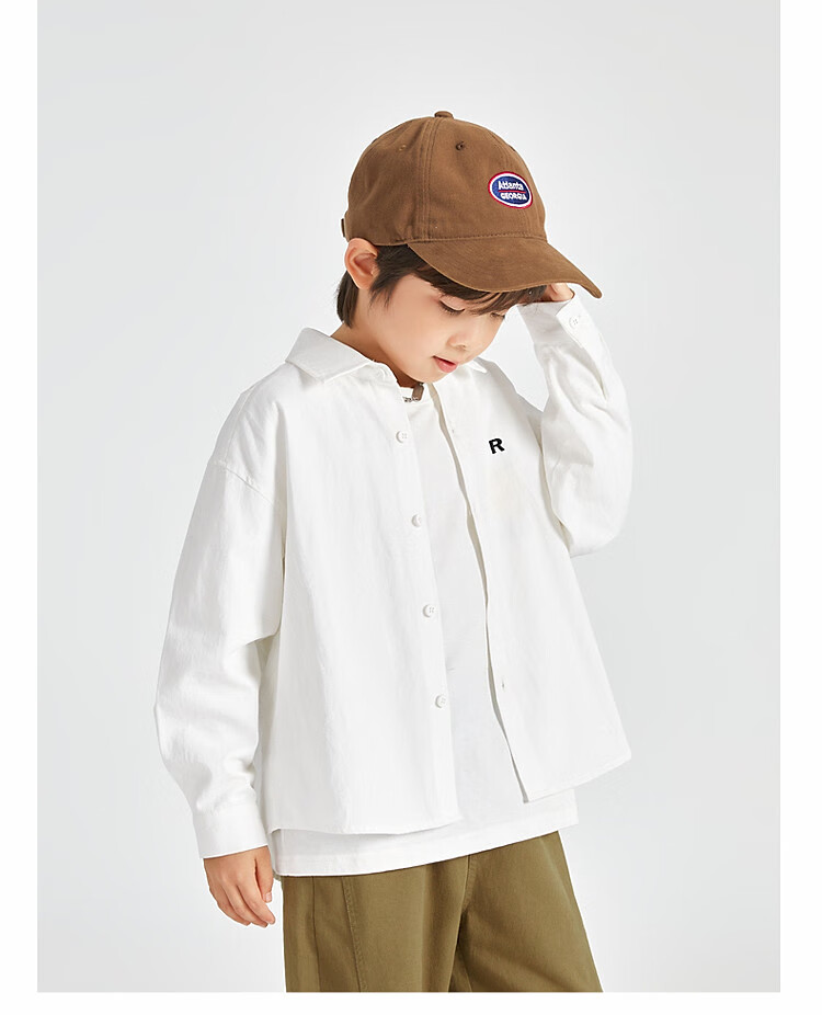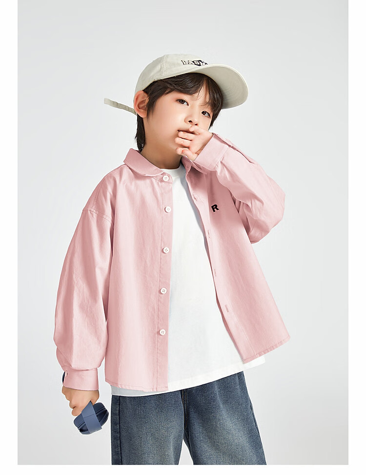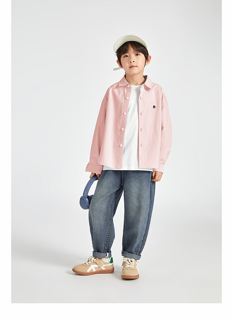 Duojia Boys' Shirts 2025 Spring and Autumn Versatile Casual Children's Breathable Cotton Long-Sleeved Medium and Large Children's Simple Korean Style Shirt Blue 120