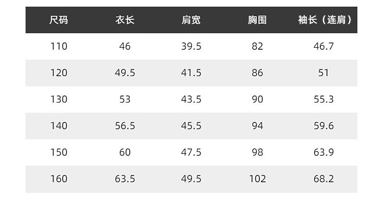 China (cm) 160-165/84-86 165-170 / 88-90 167-172 / 92-96 168-173 / 98-102 170-176 / 106-110