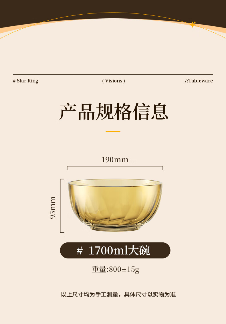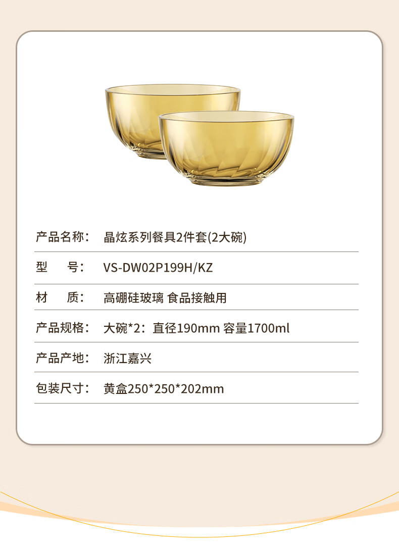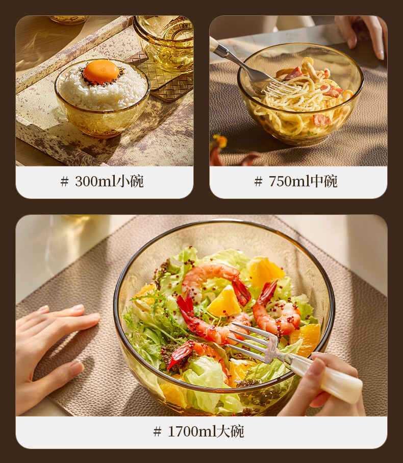 Corning tableware 2-head heat-resistant glass large bowl rice bowl soup bowl salad bowl 1.7L large glass bowl 2-piece set
