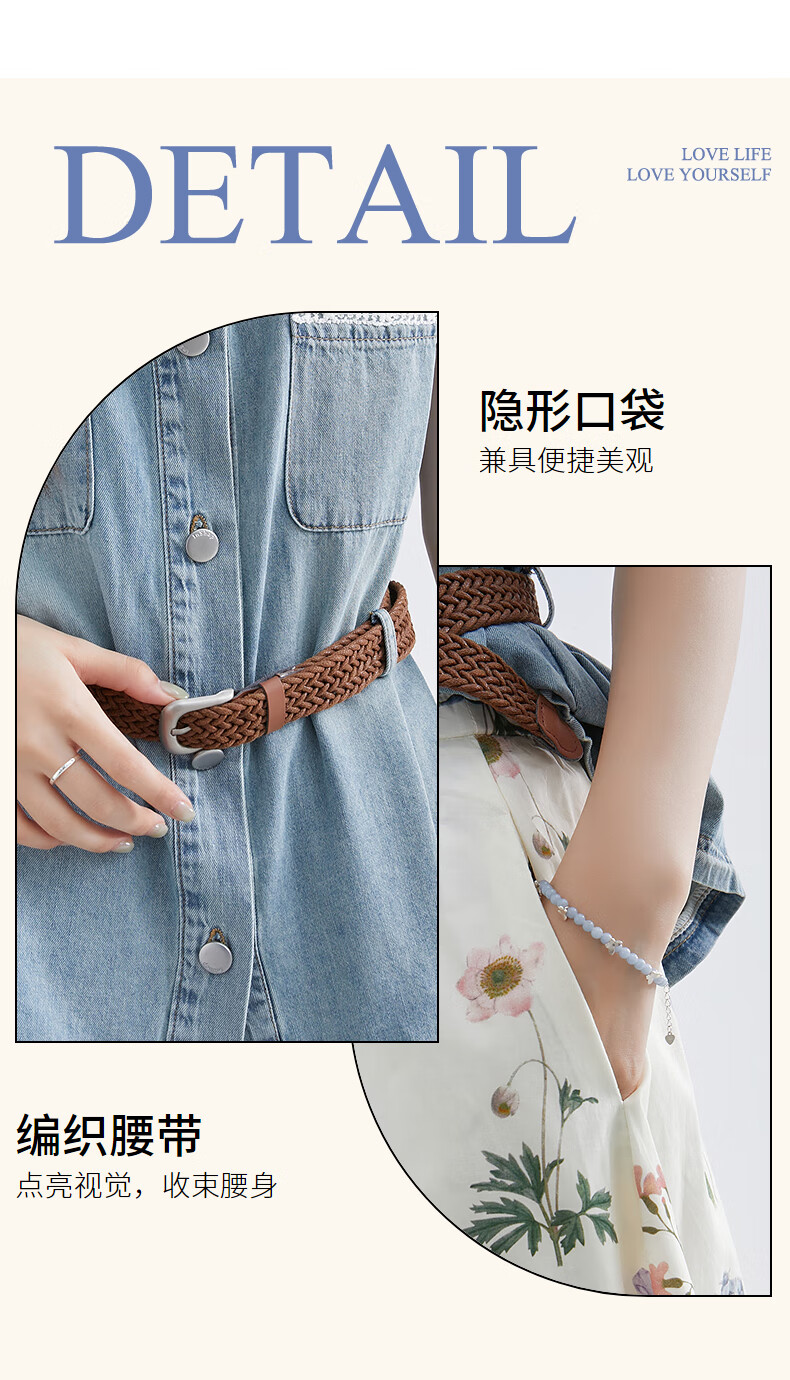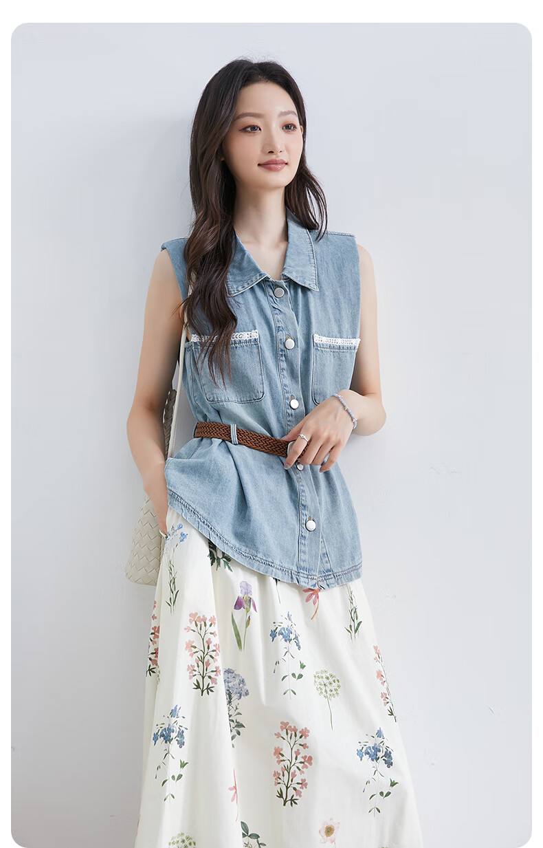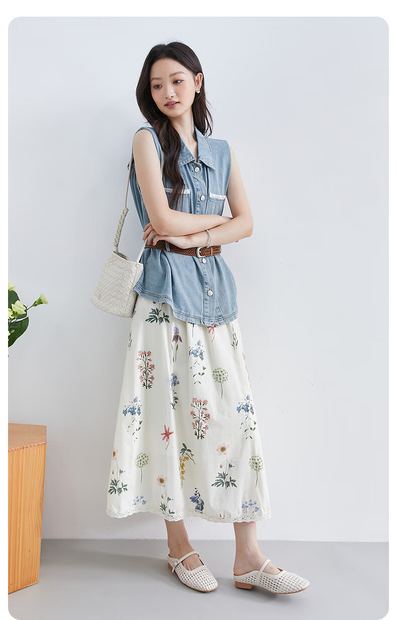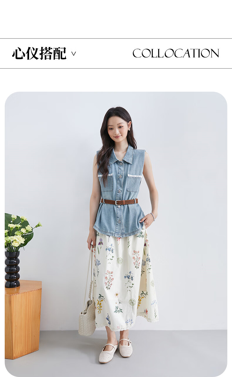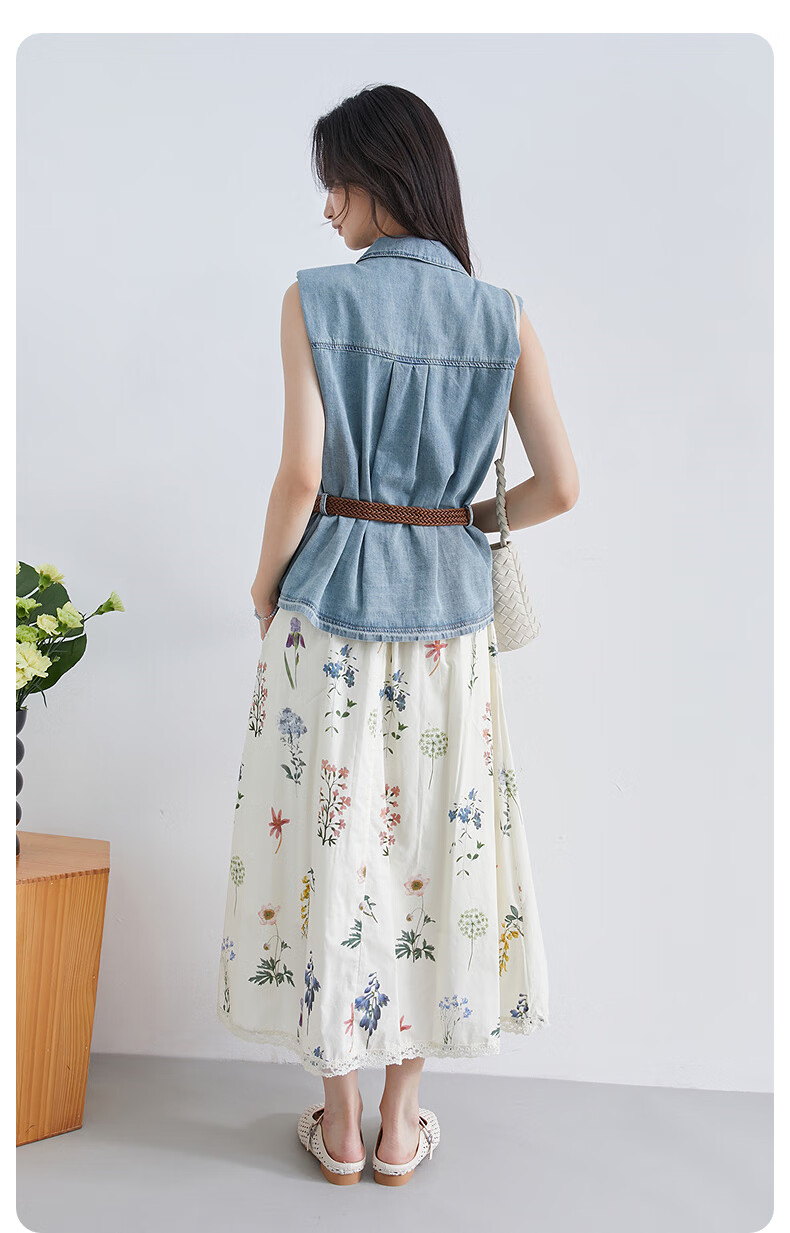 InShop shopping mall same style new denim vest jacket floral skirt commuting casual two-piece set light blue flower S