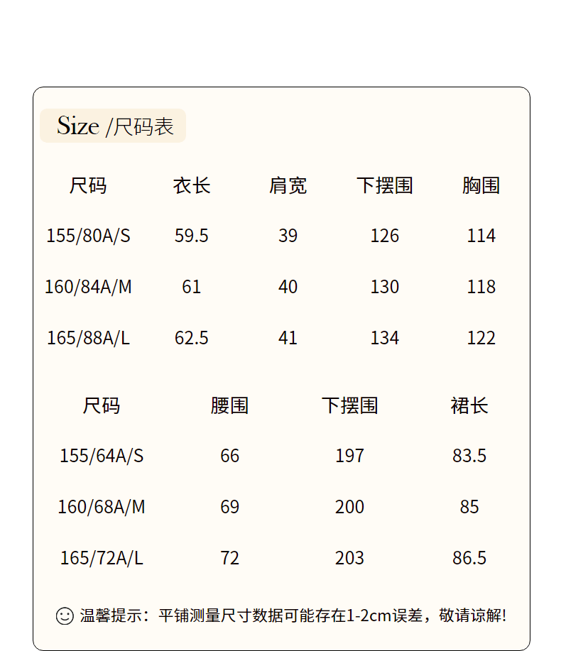China (cm) 160-165/84-86 165-170 / 88-90 167-172 / 92-96 168-173 / 98-102 170-176 / 106-110
