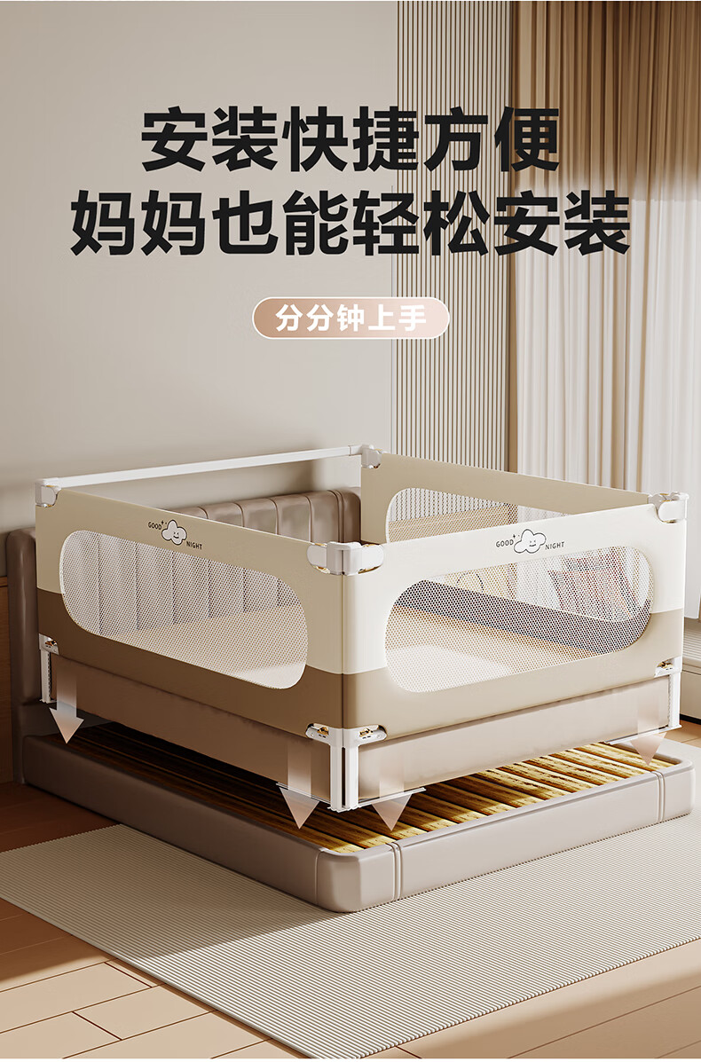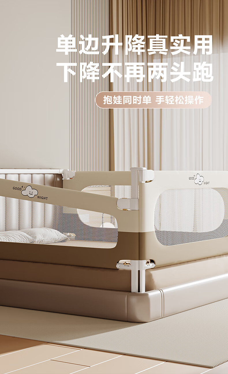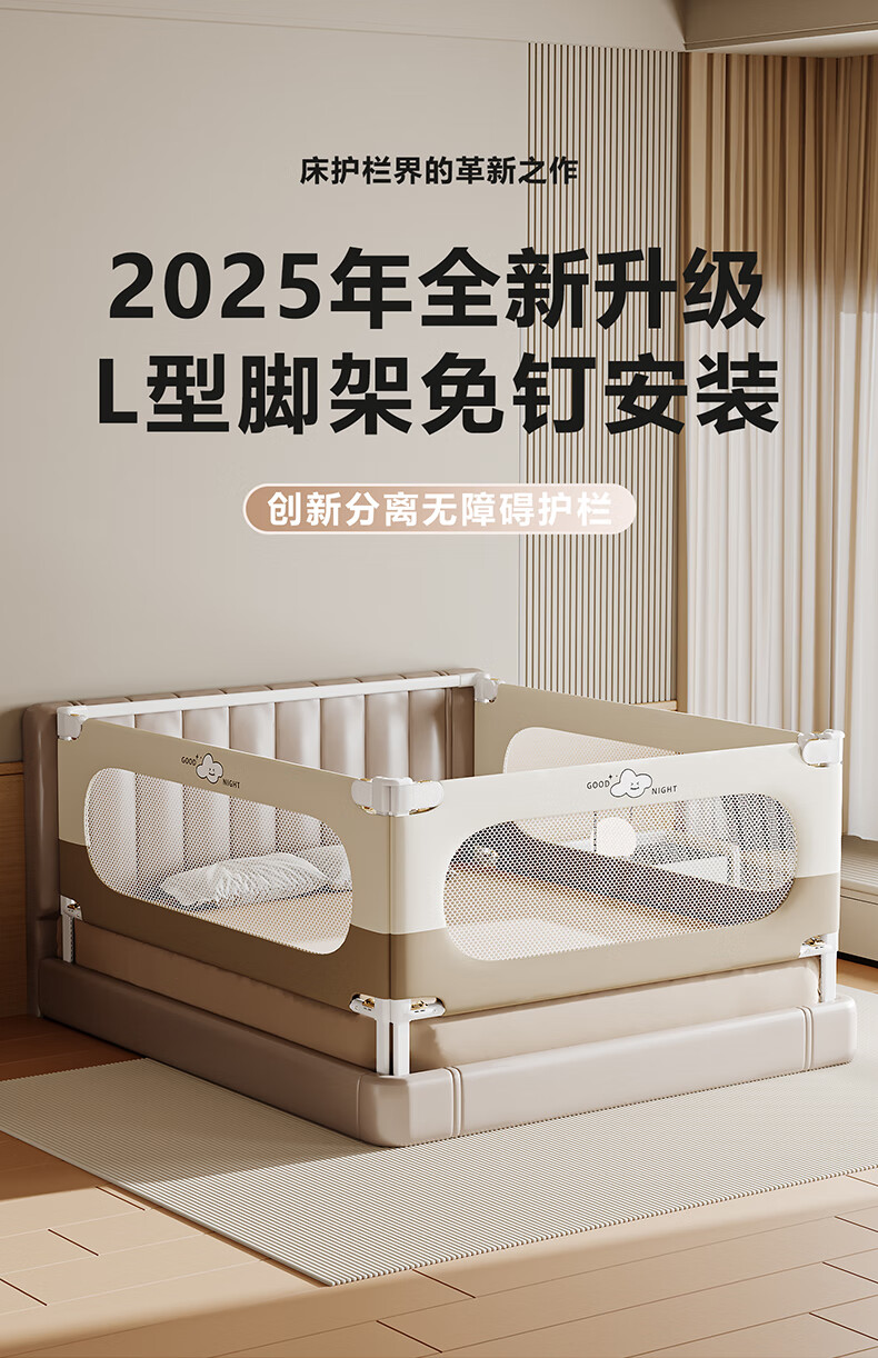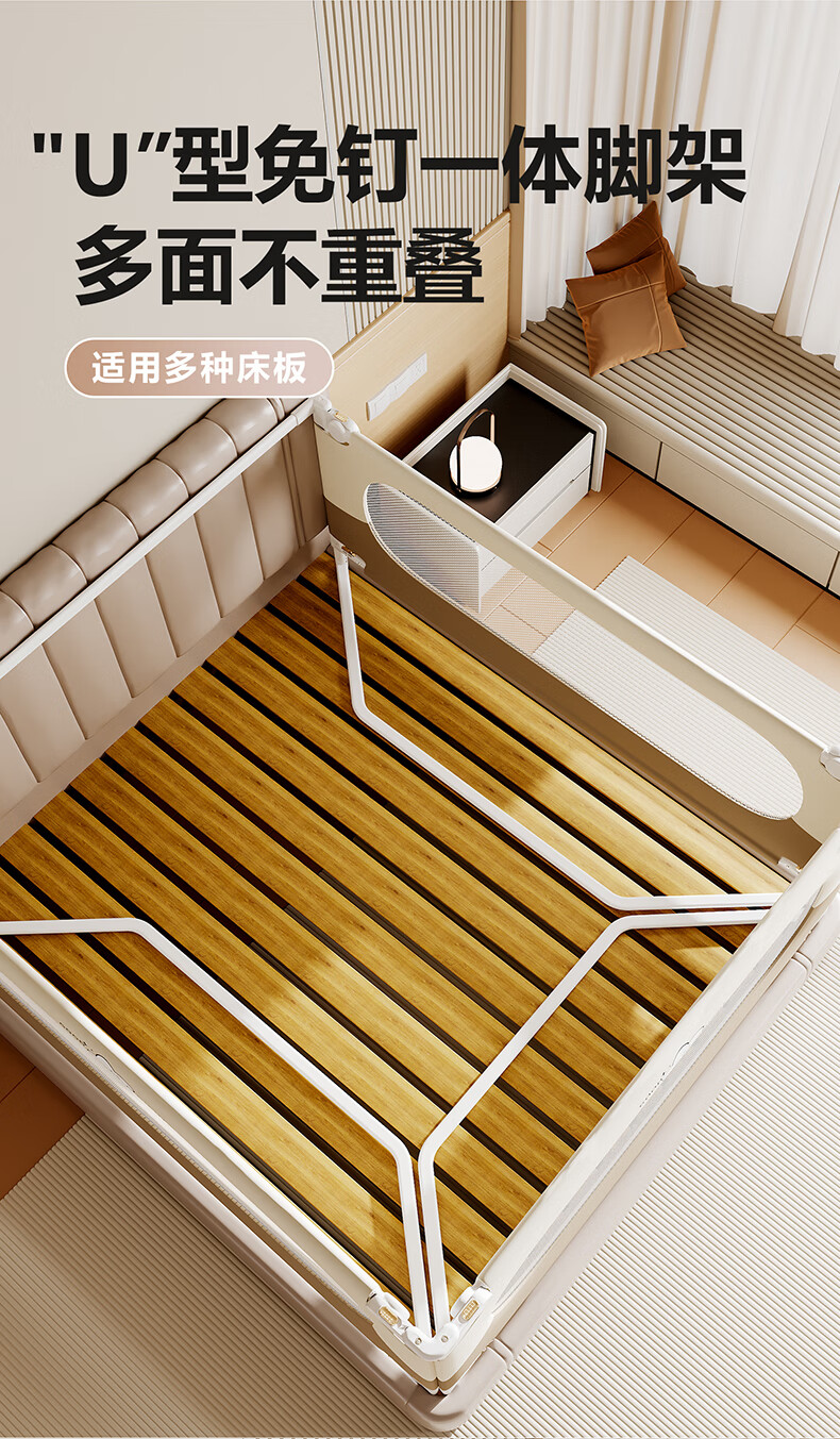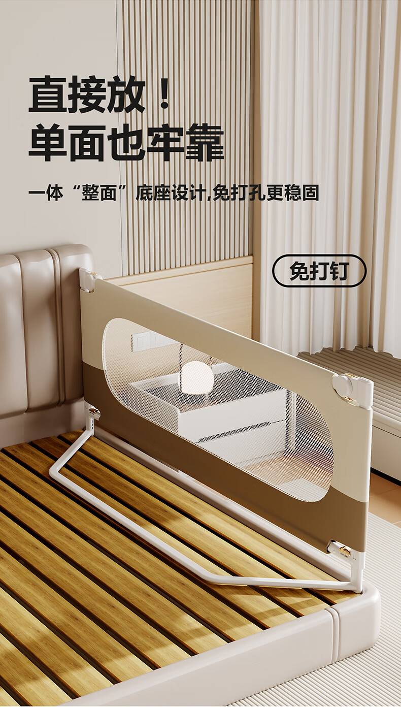Baozhixuan bed fence bed fence safety guardrail bed baby anti-fall guardrail bedside punch-free single-sided fence punch-free large U base 2m single-sided installation