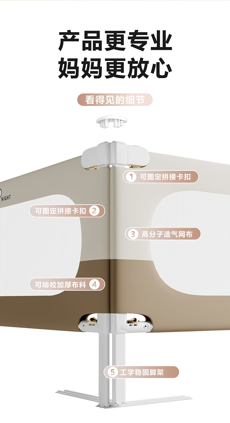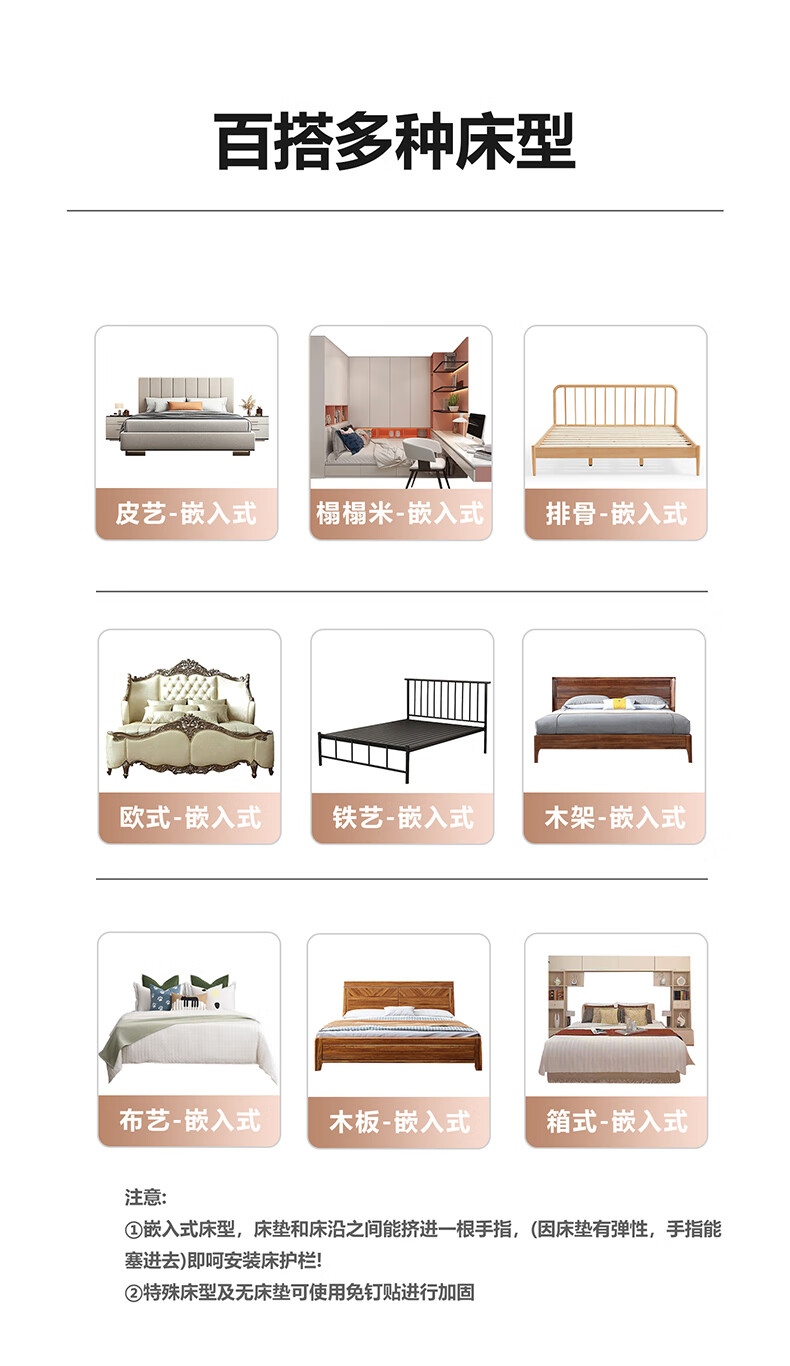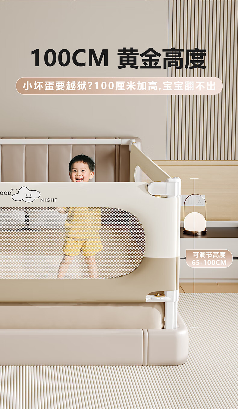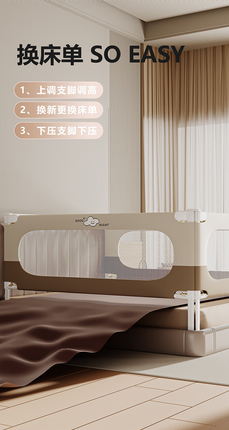 Baozhixuan bed fence bed fence safety guardrail bed baby anti-fall guardrail bedside punch-free single-sided fence punch-free large U base 2m single-sided installation