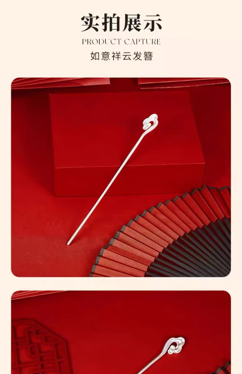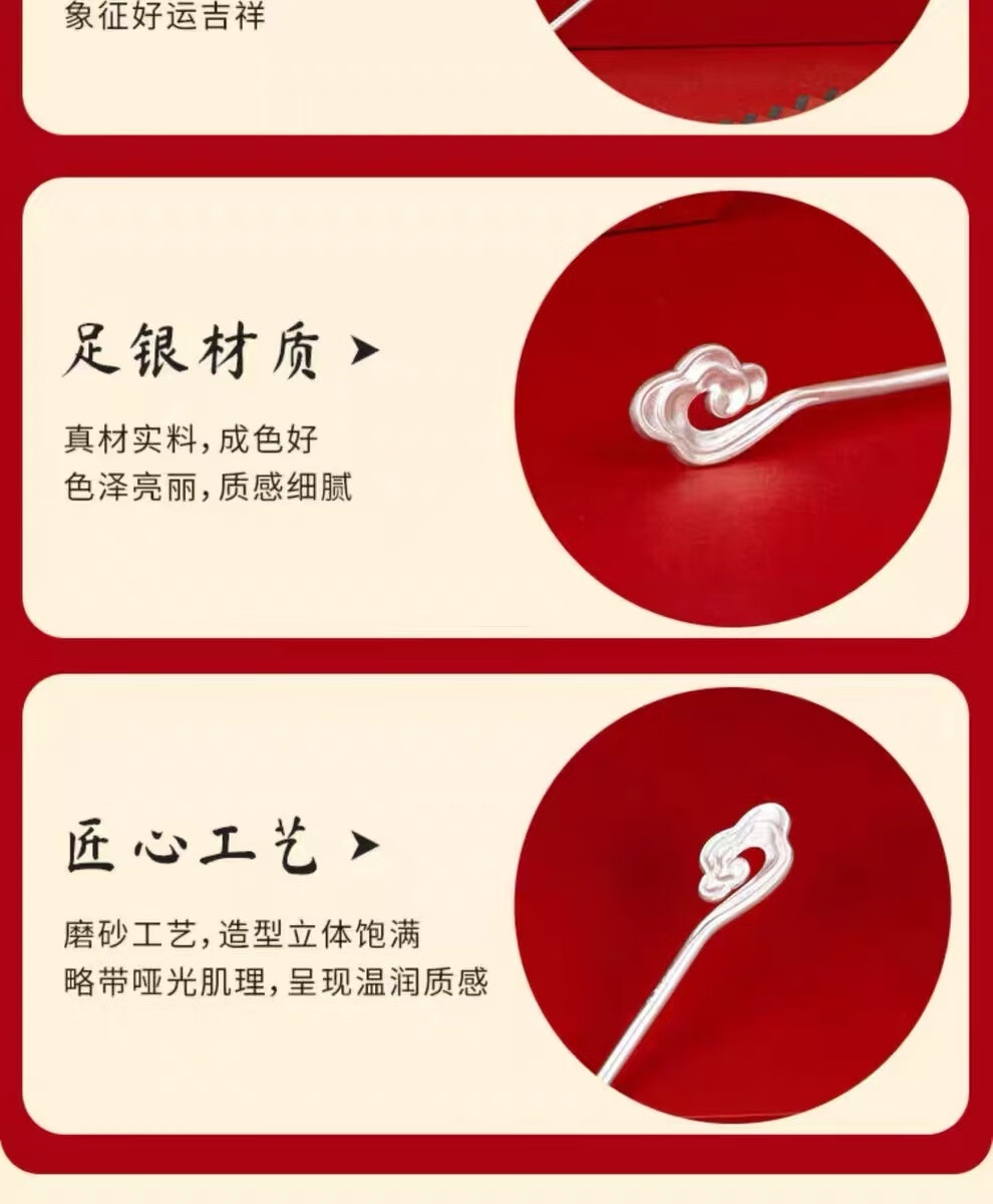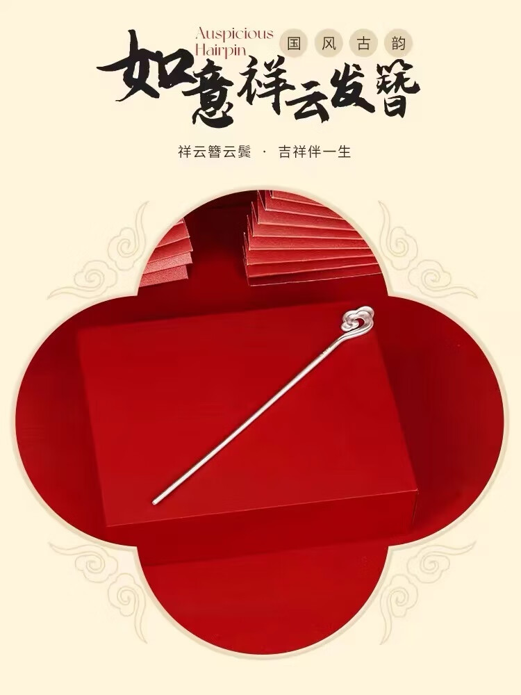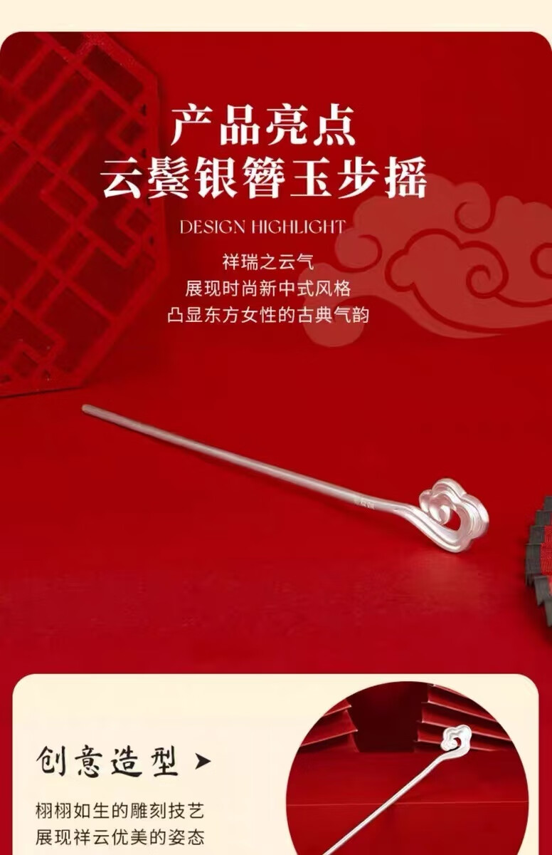 KZD Old Phoenix 999 Pure Silver Palace Hair Ornaments Silver Hairpin Step Shake Hairpin Hairpin as Mother's Day Gift for Girlfriend Xiangyun Hairpin Silver 1-piece Set