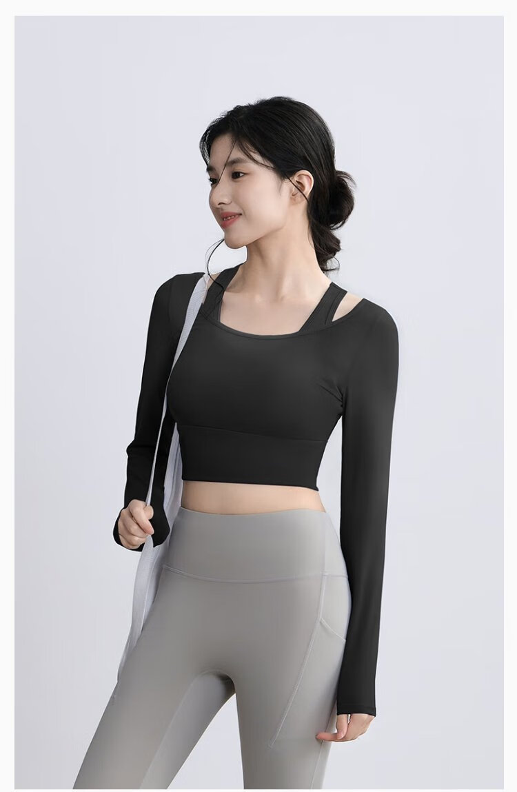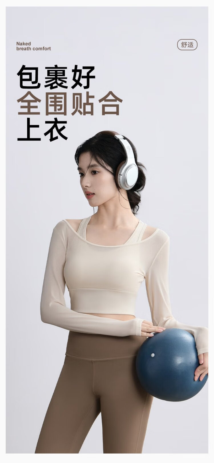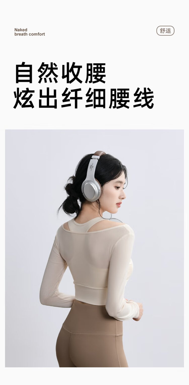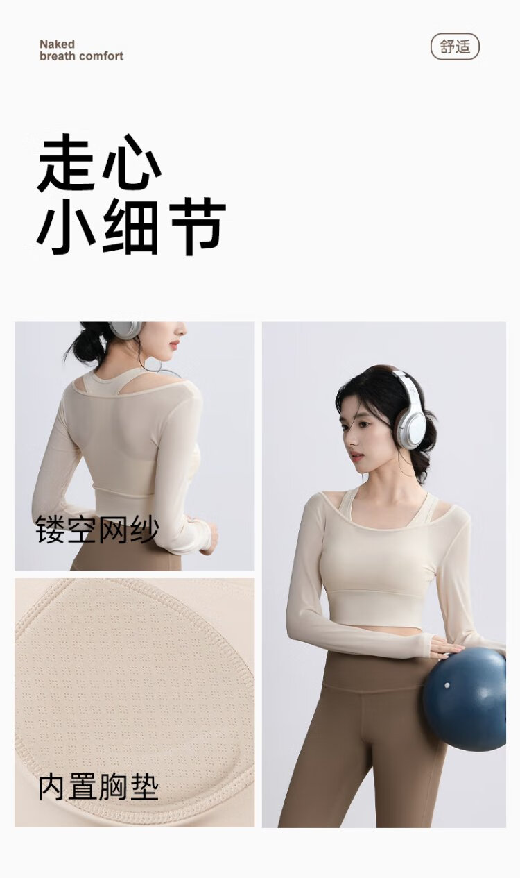 Fluniyu yoga wear women's new sports top with chest pad, long sleeves, fashionable running Pilates training fitness suit, ivory white + cocoa color XL (recommended 115-130 Jin Jin equals 0.5 kg)