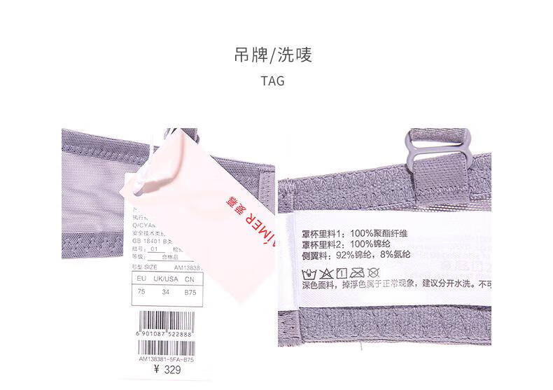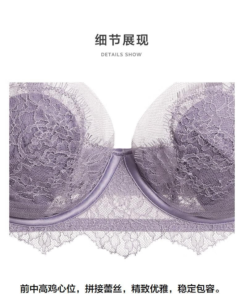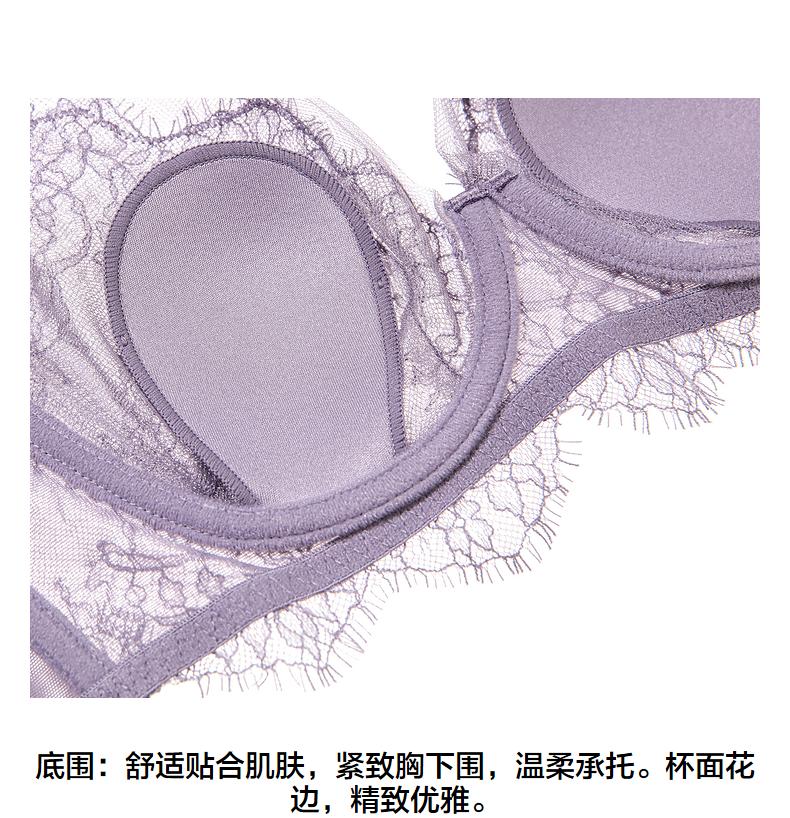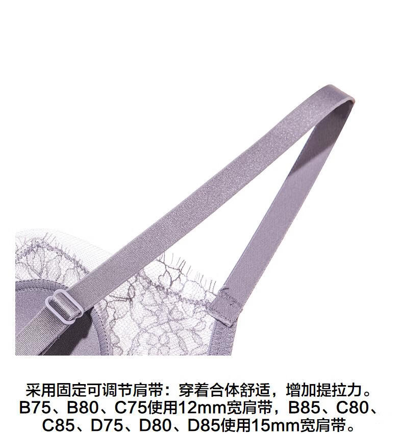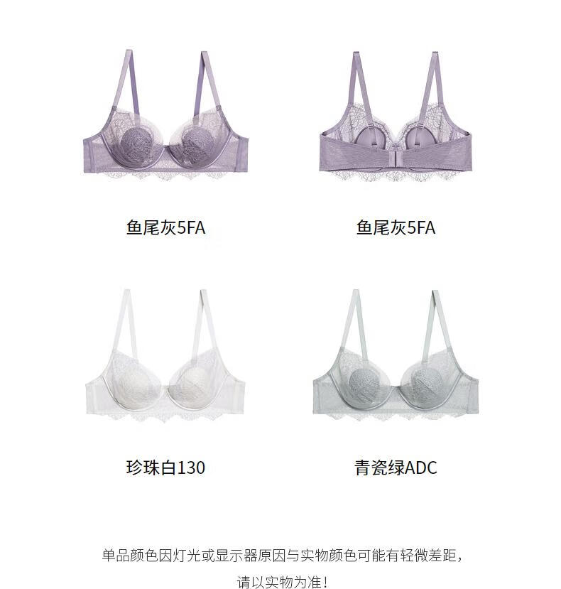 Aimer AIMER/Aimer Xingyuan thin push-up comfortable ultra-thin lace bra set DY202360 Petal Cup-Fishtail Gray L 170 (130-160) 80B (36B)