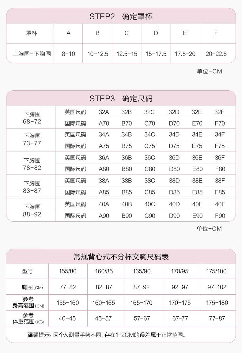 China (cm) 160-165/84-86 165-170 / 88-90 167-172 / 92-96 168-173 / 98-102 170-176 / 106-110