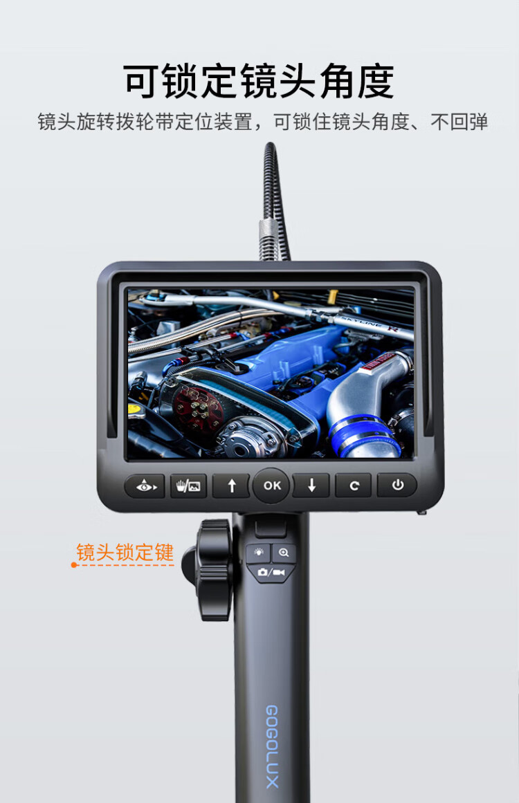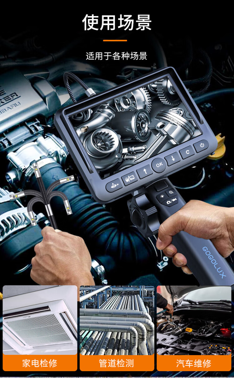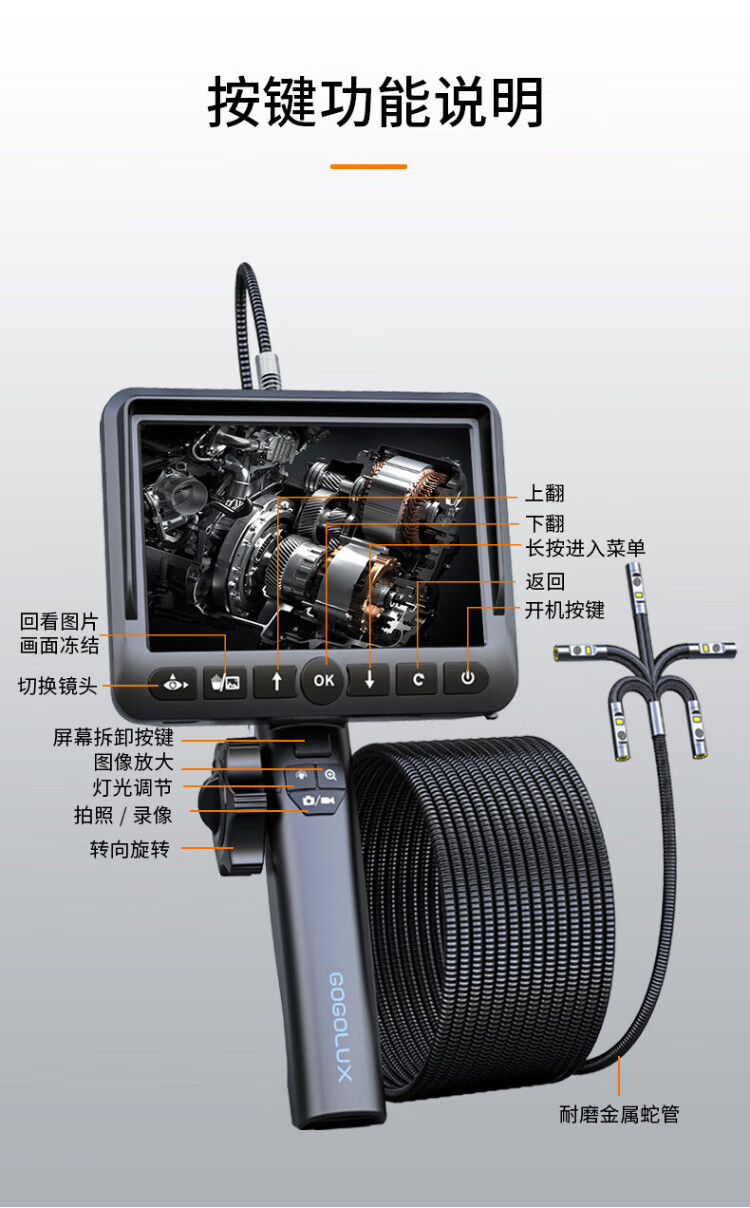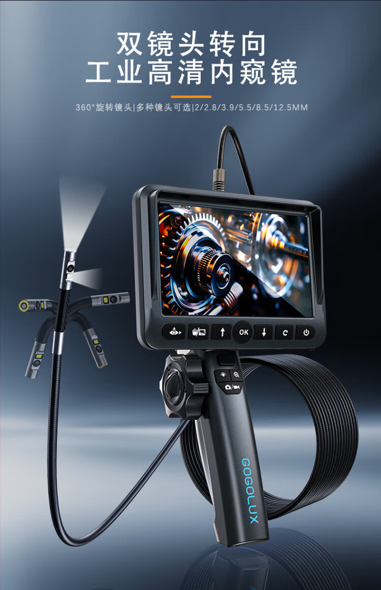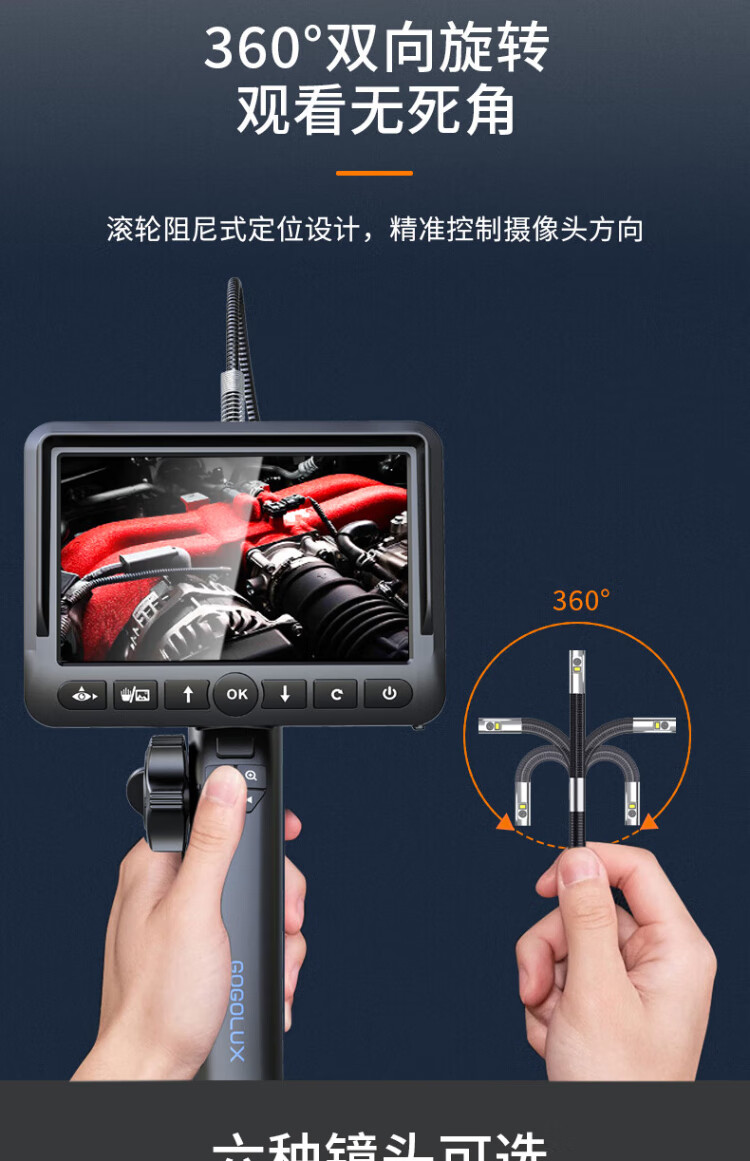 Gugao Lusen 360-degree rotating industrial endoscope HD camera car maintenance pipeline engine inspection GL-500L non-steering lens 2mm + snake tube 1 meter