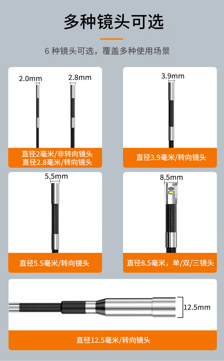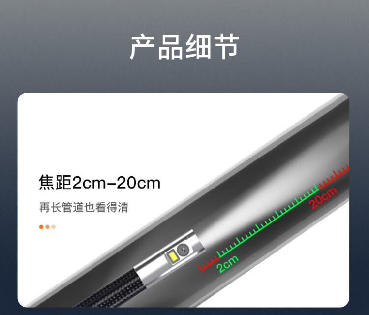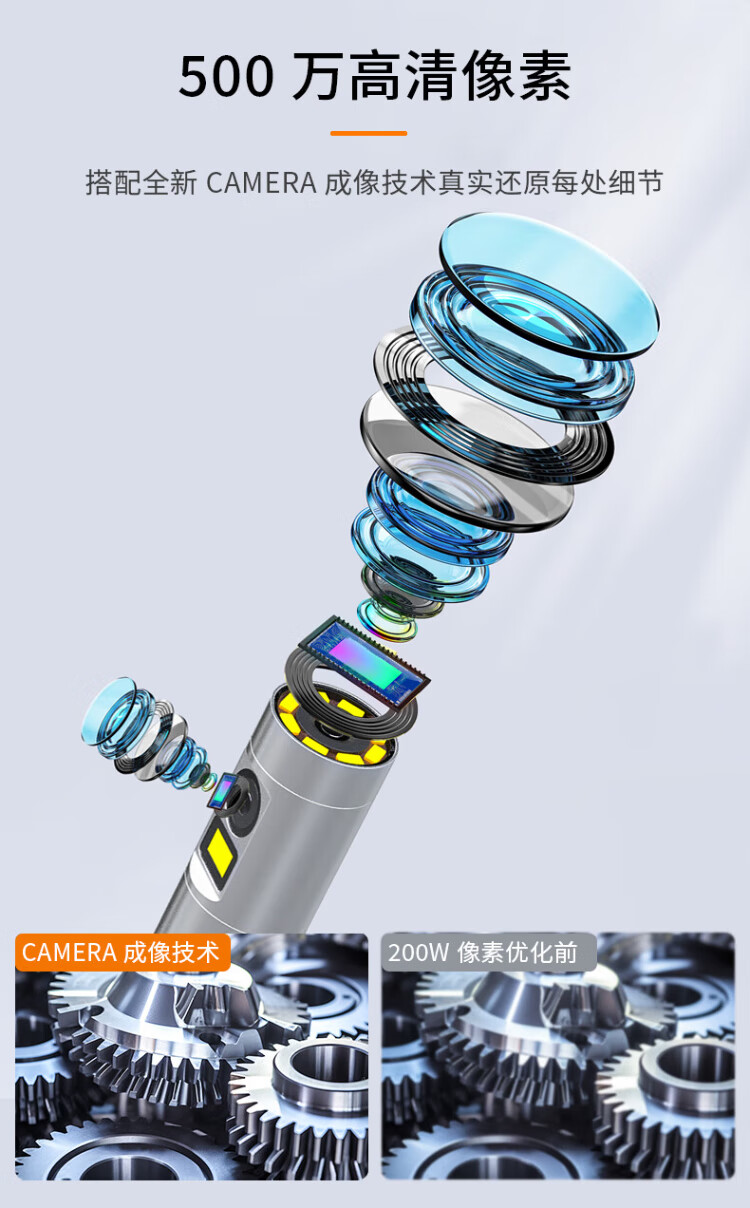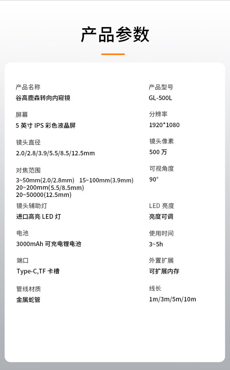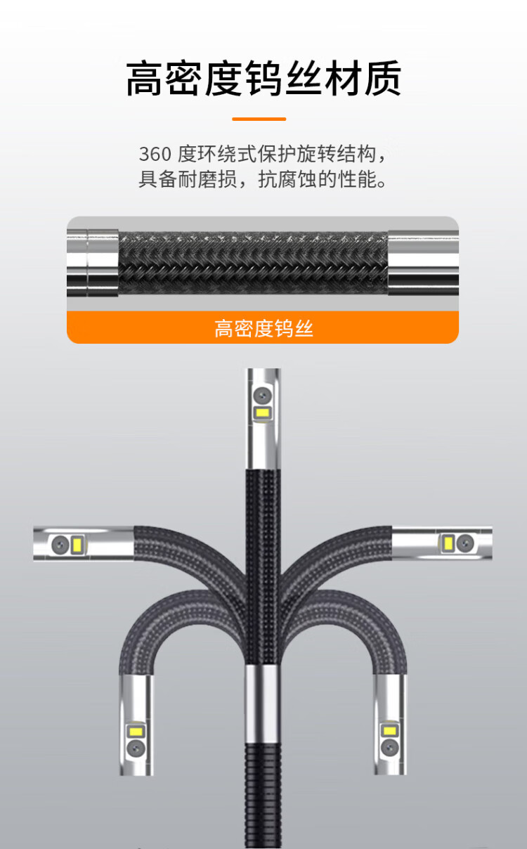 Gugao Lusen 360-degree rotating industrial endoscope HD camera car maintenance pipeline engine inspection GL-500L non-steering lens 2mm + snake tube 1 meter