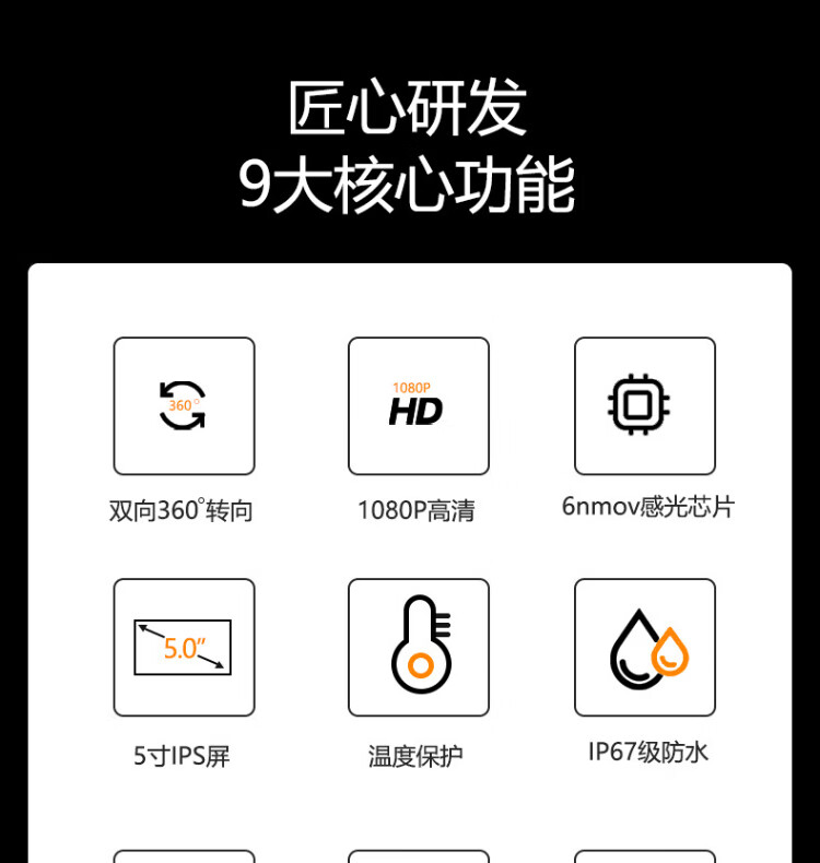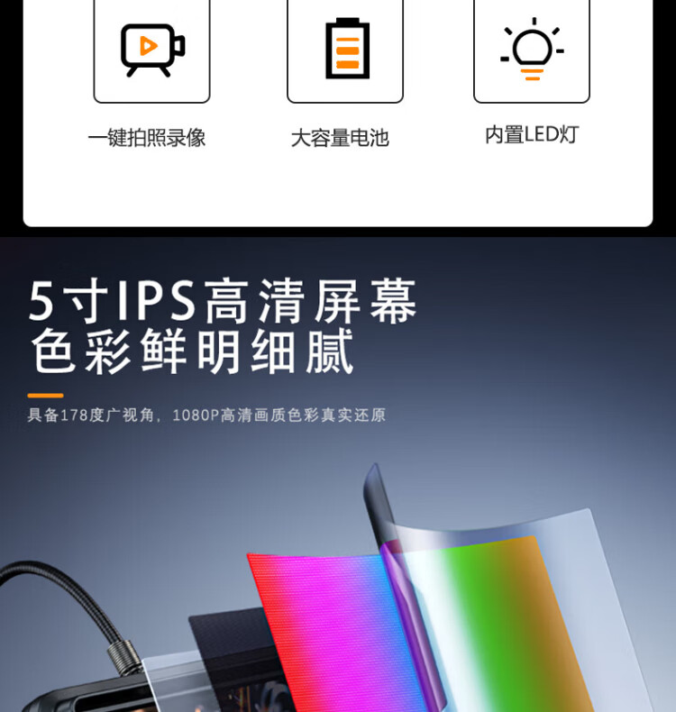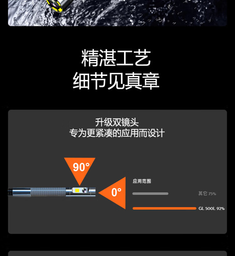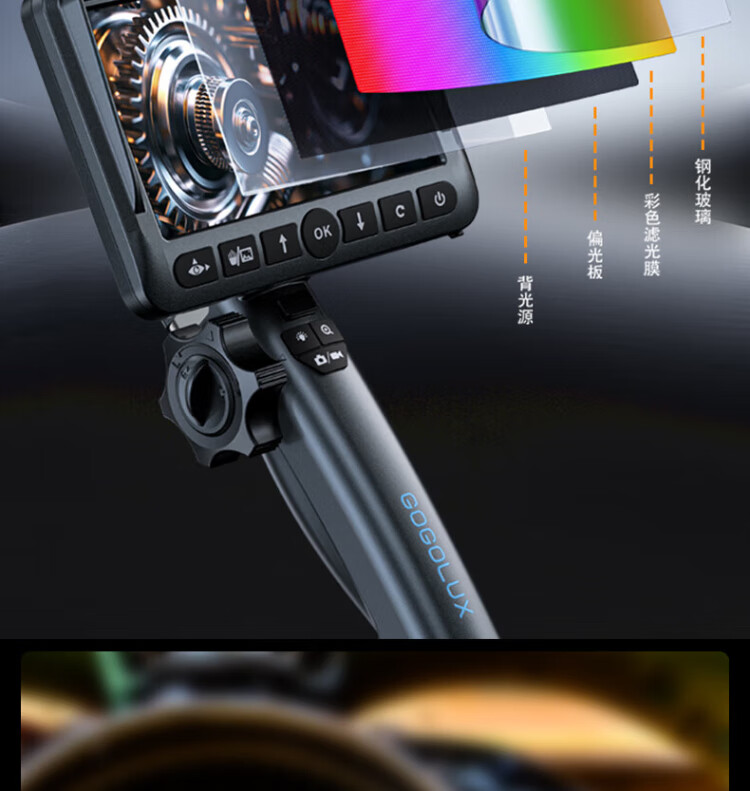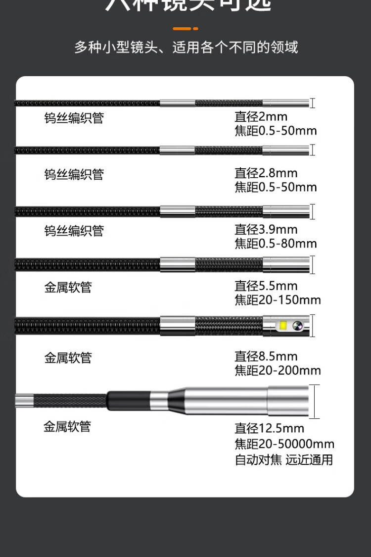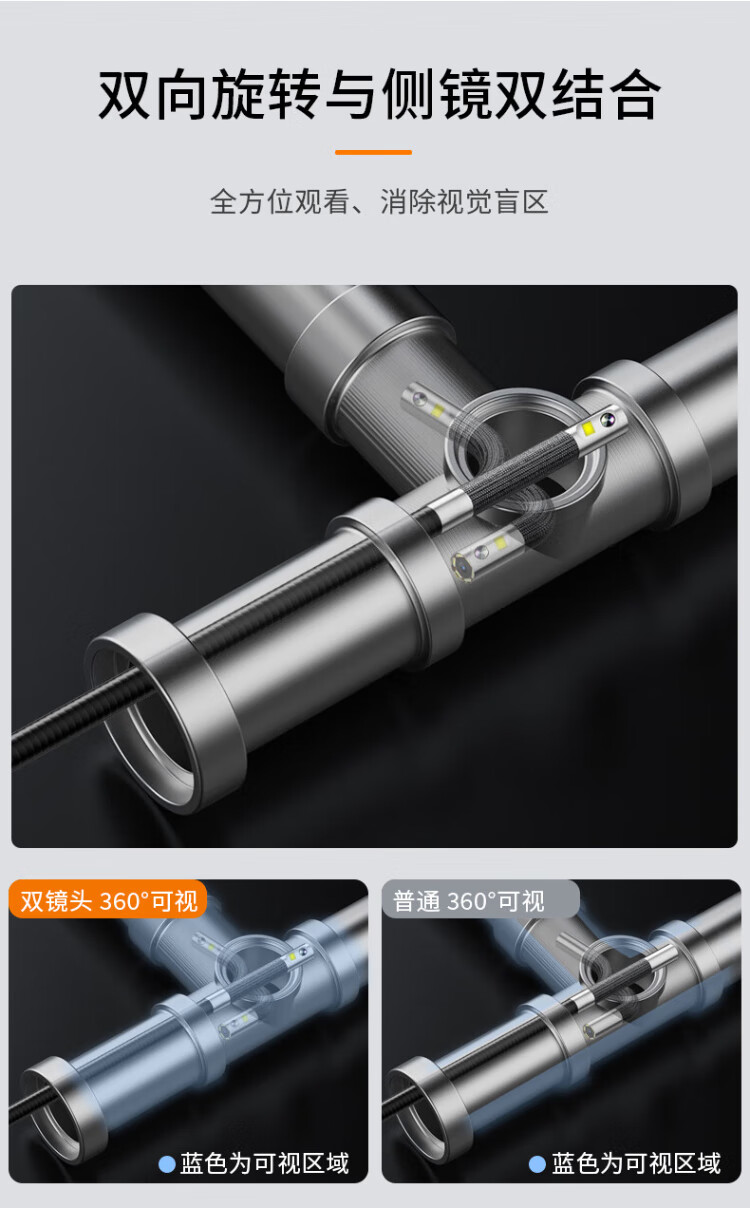 Gugao Lusen 360-degree rotating industrial endoscope HD camera car maintenance pipeline engine inspection GL-500L non-steering lens 2mm + snake tube 1 meter