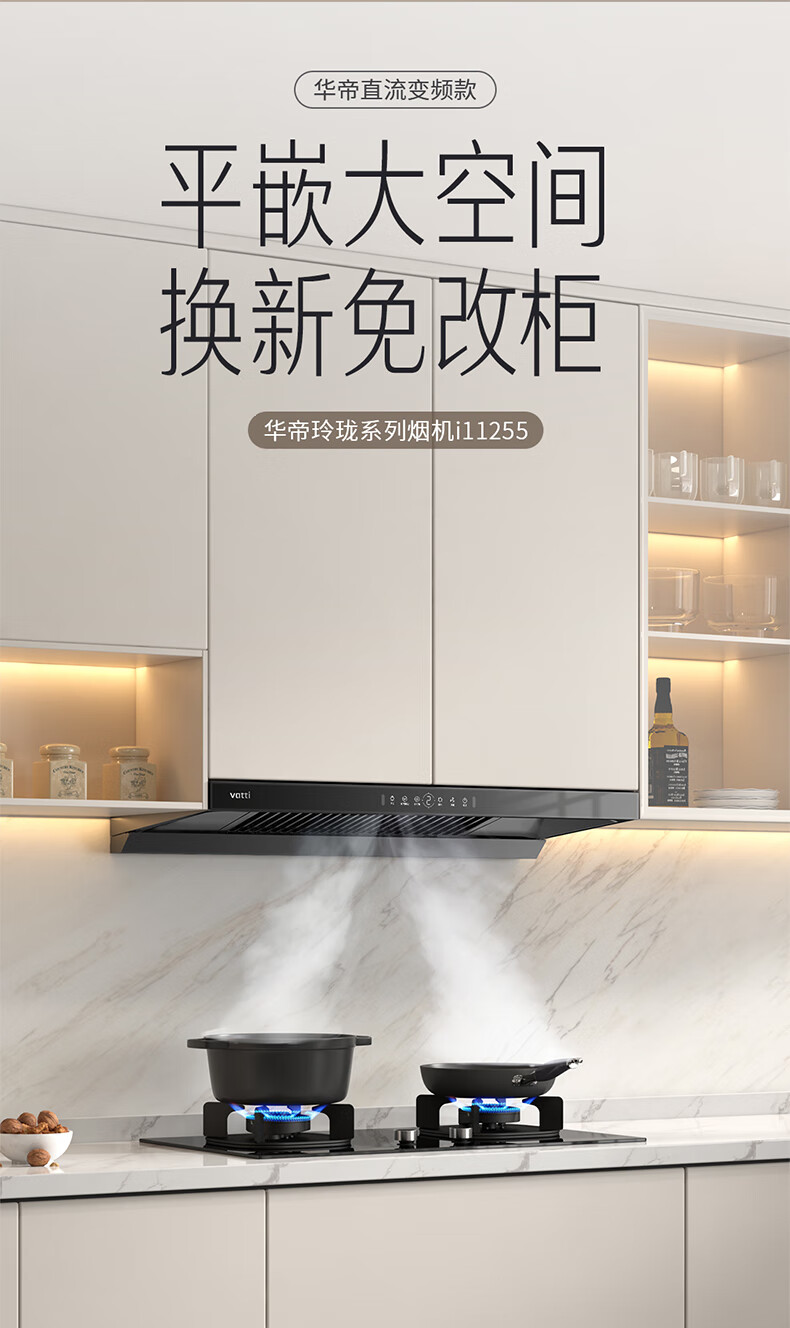 VATTI oficial pequeño platillo volante SE campana extractora juego de estufa de gas campana extractora doméstica de frecuencia variable gran succión autolimpiante 25 volumen de aire gabinete empotrado ultrafino subsidio juego de dos piezas i11255+70B gas natural