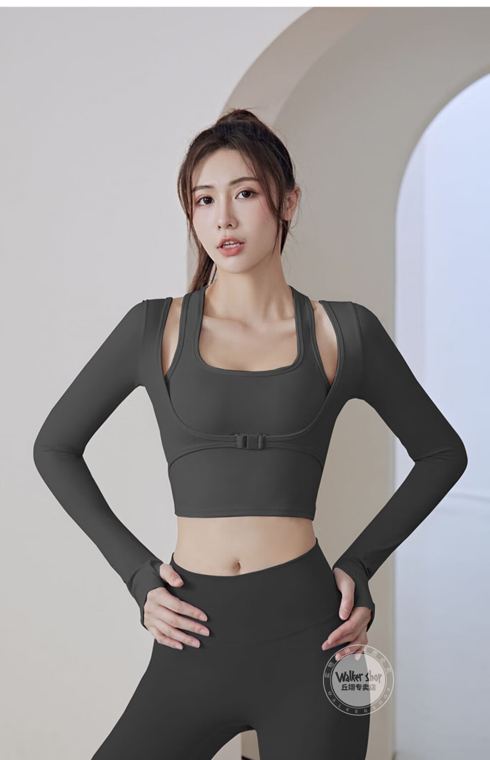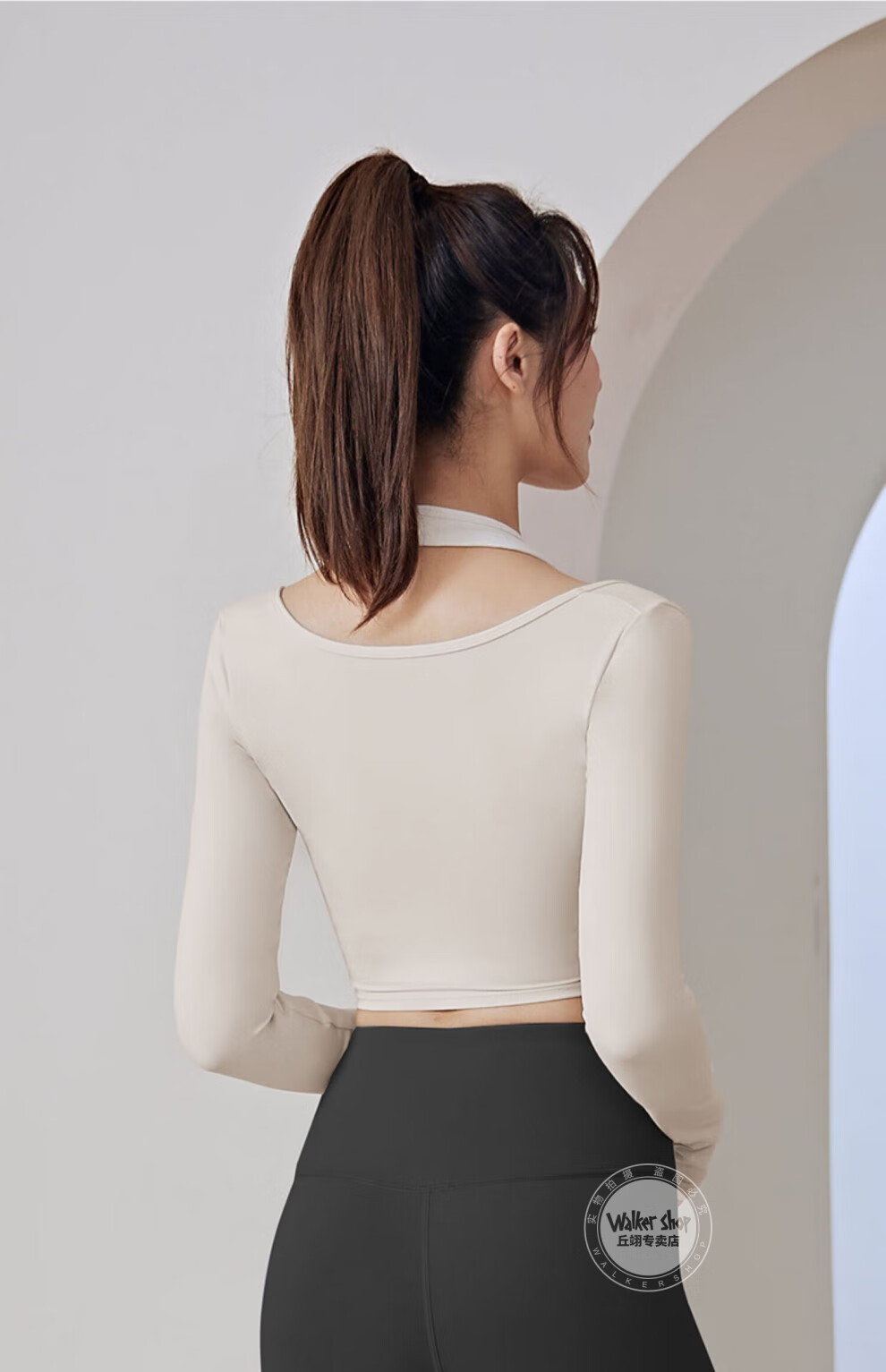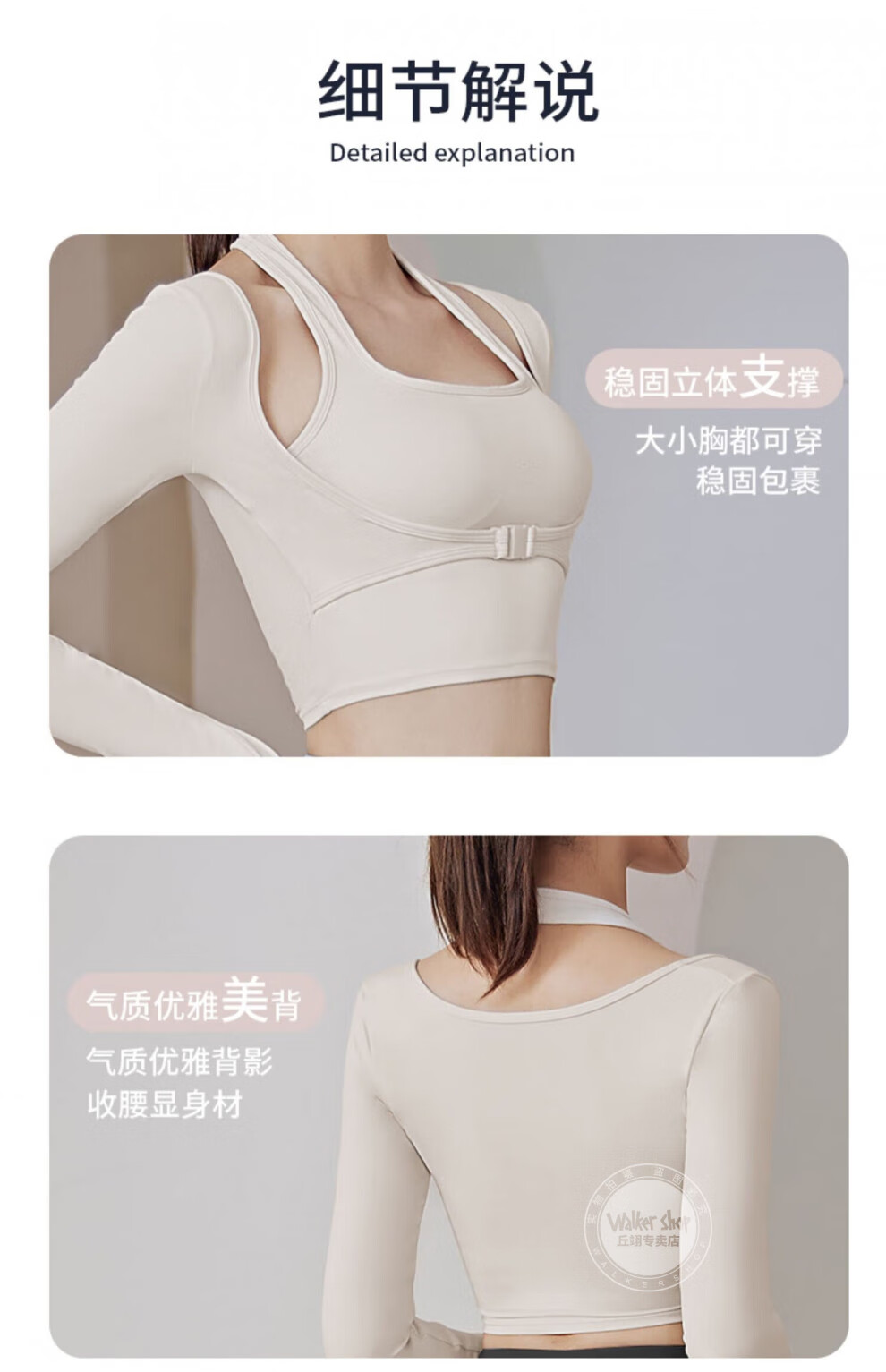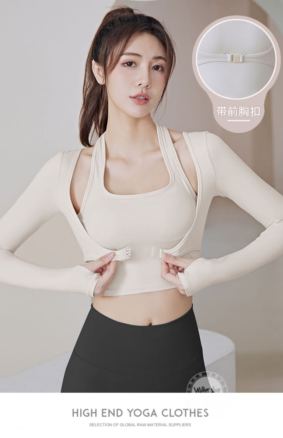 Walker Shop Yoga Wear Suit Women Chinese Valentine's Day Gift Breathable Running Sports Jacket Slim Fit Pilates Training Fitness Wear Long Sleeve Suit Ivory White + Star Black M Recommended 90-100Jin Jin is equal to 0.5 kg