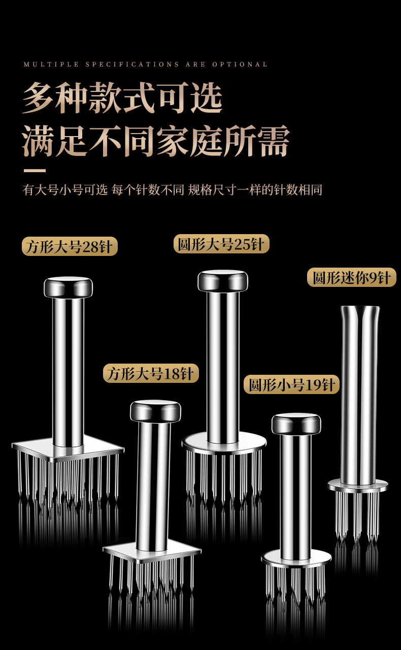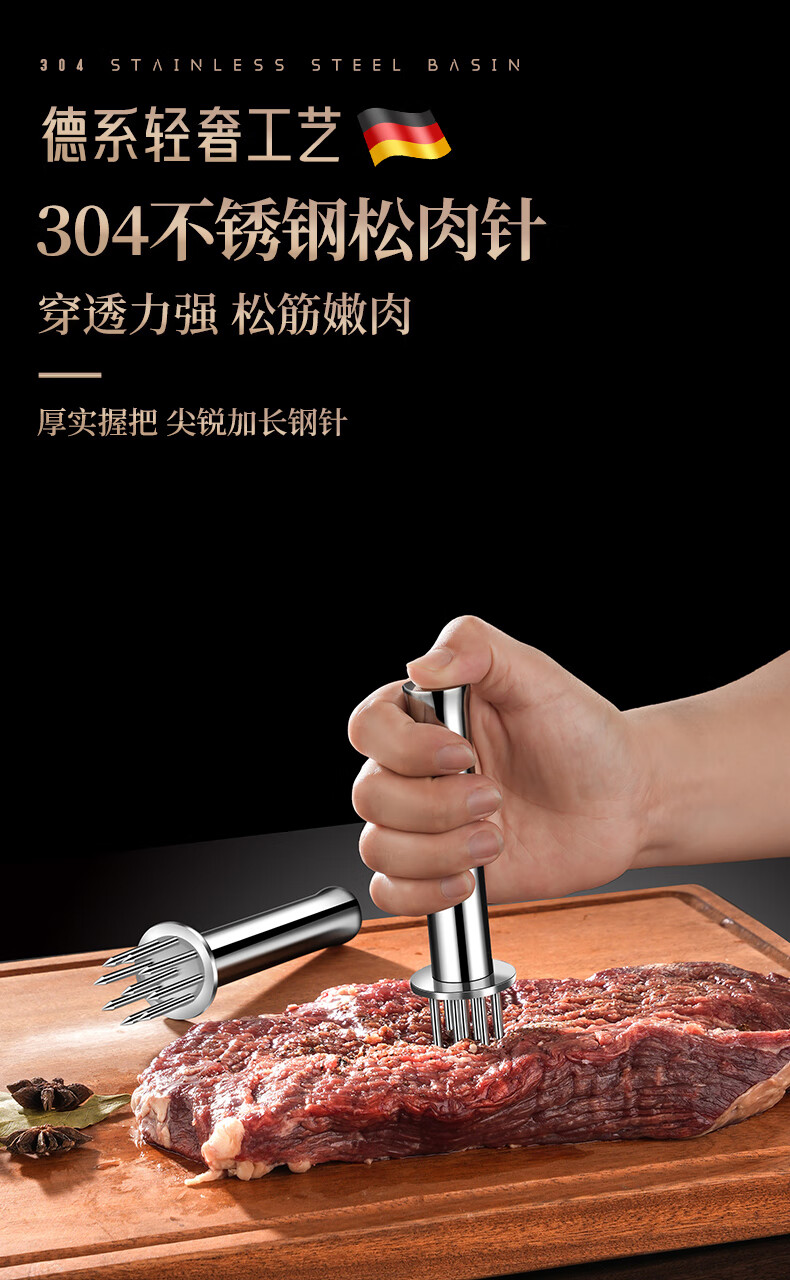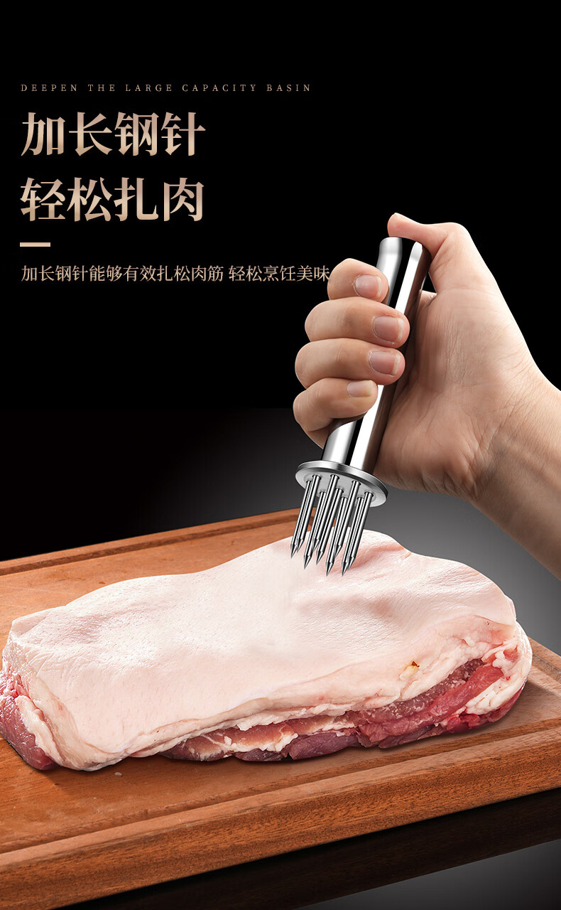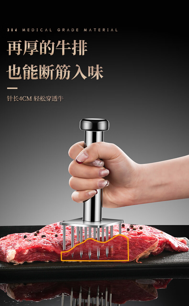 Heqing 304 stainless steel meat loosening needle kitchen household beef hammer meat needle buckle meat hole punch steak eye tenderizing needle round mini 9 needle 304 stainless steel