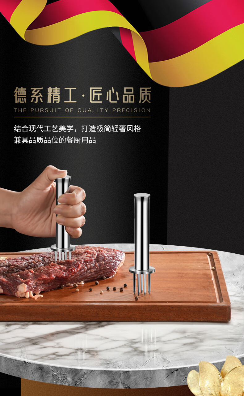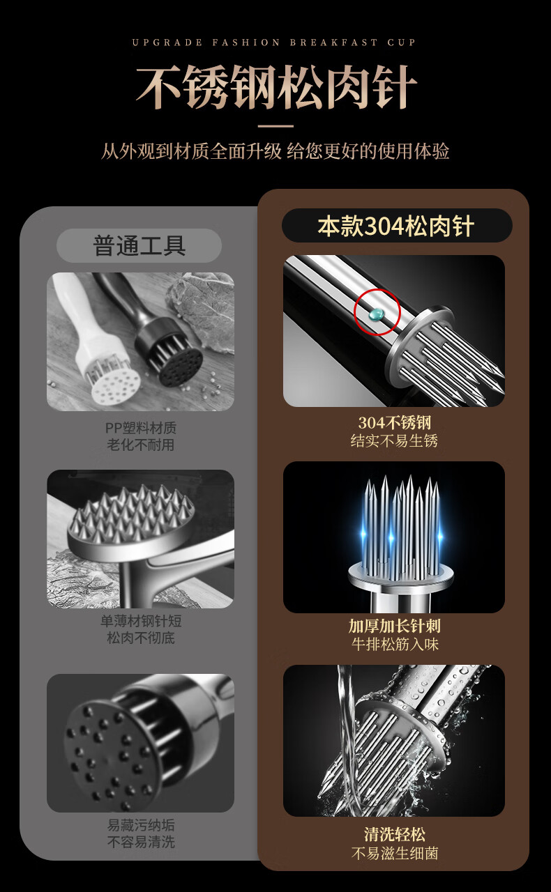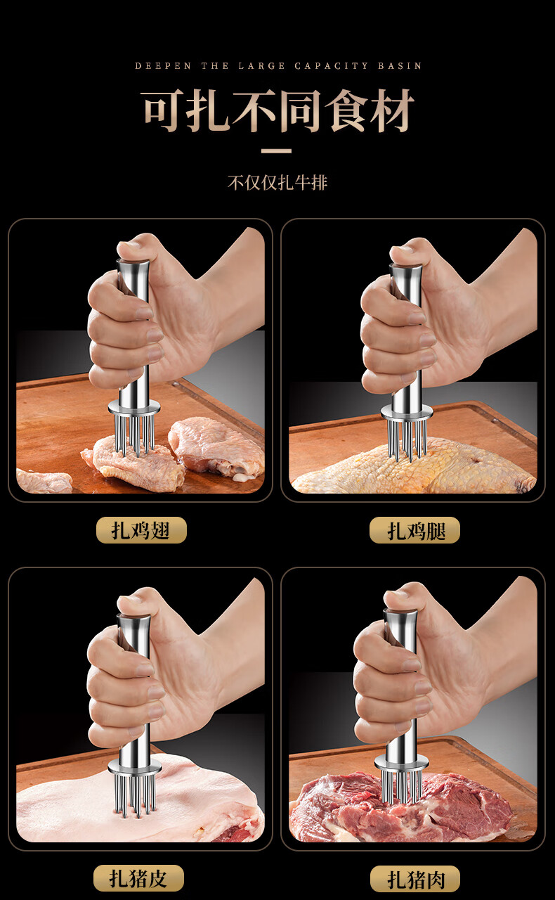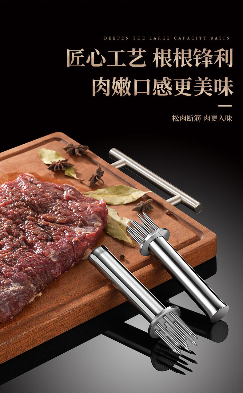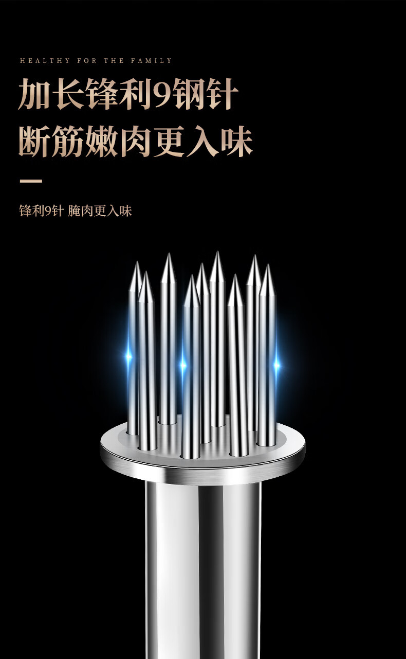 Heqing 304 stainless steel meat loosening needle kitchen household beef hammer meat needle buckle meat hole punch steak eye tenderizing needle round mini 9 needle 304 stainless steel