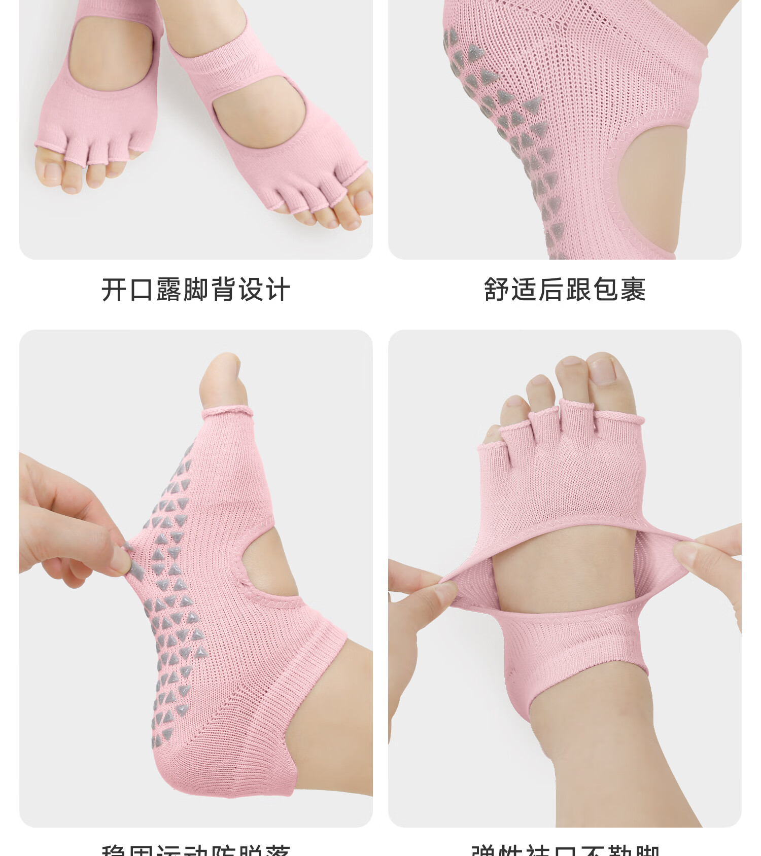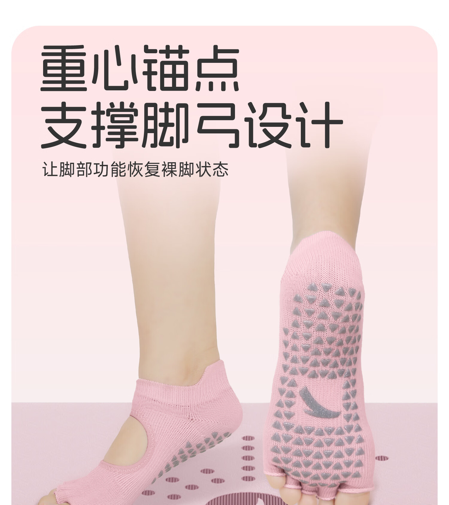 ANTA Yoga Socks Women's Indoor Sports Non-Slip Socks 2025 New Open Toe and Backless Professional Pilates Socks Black + Gray One Size - 2 Pairs