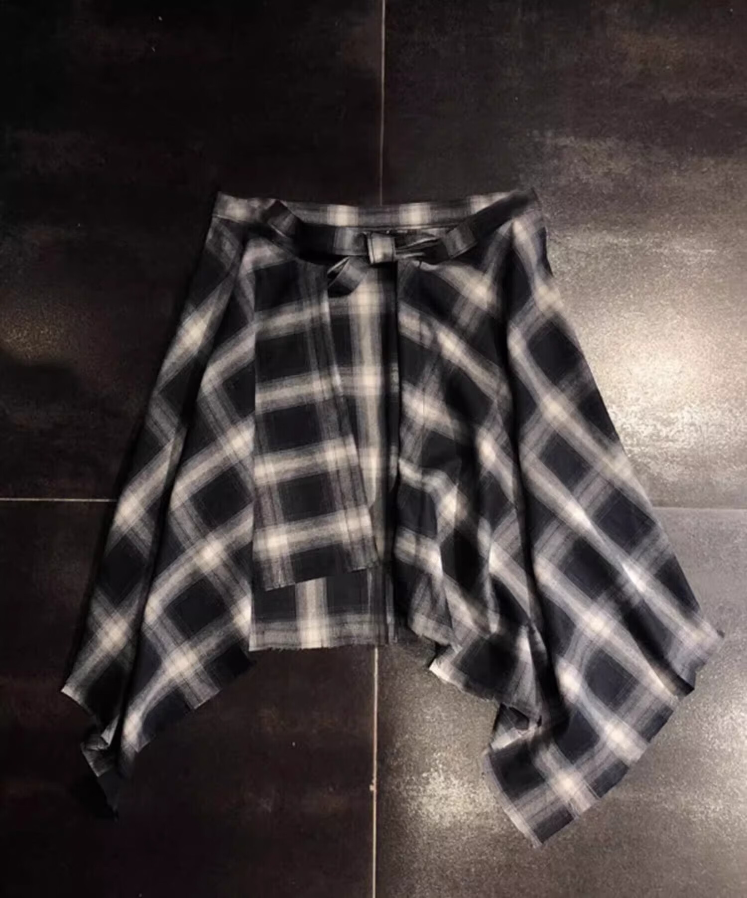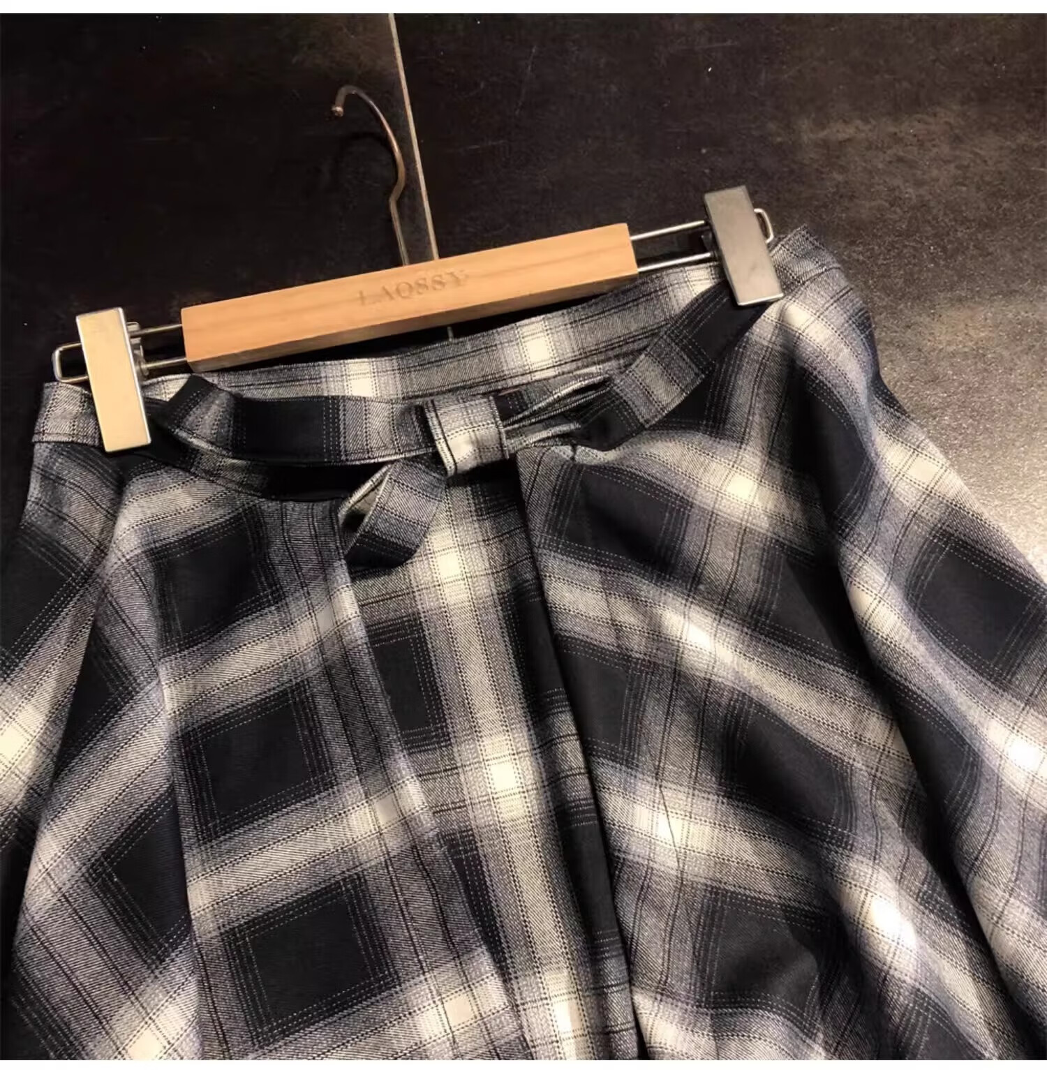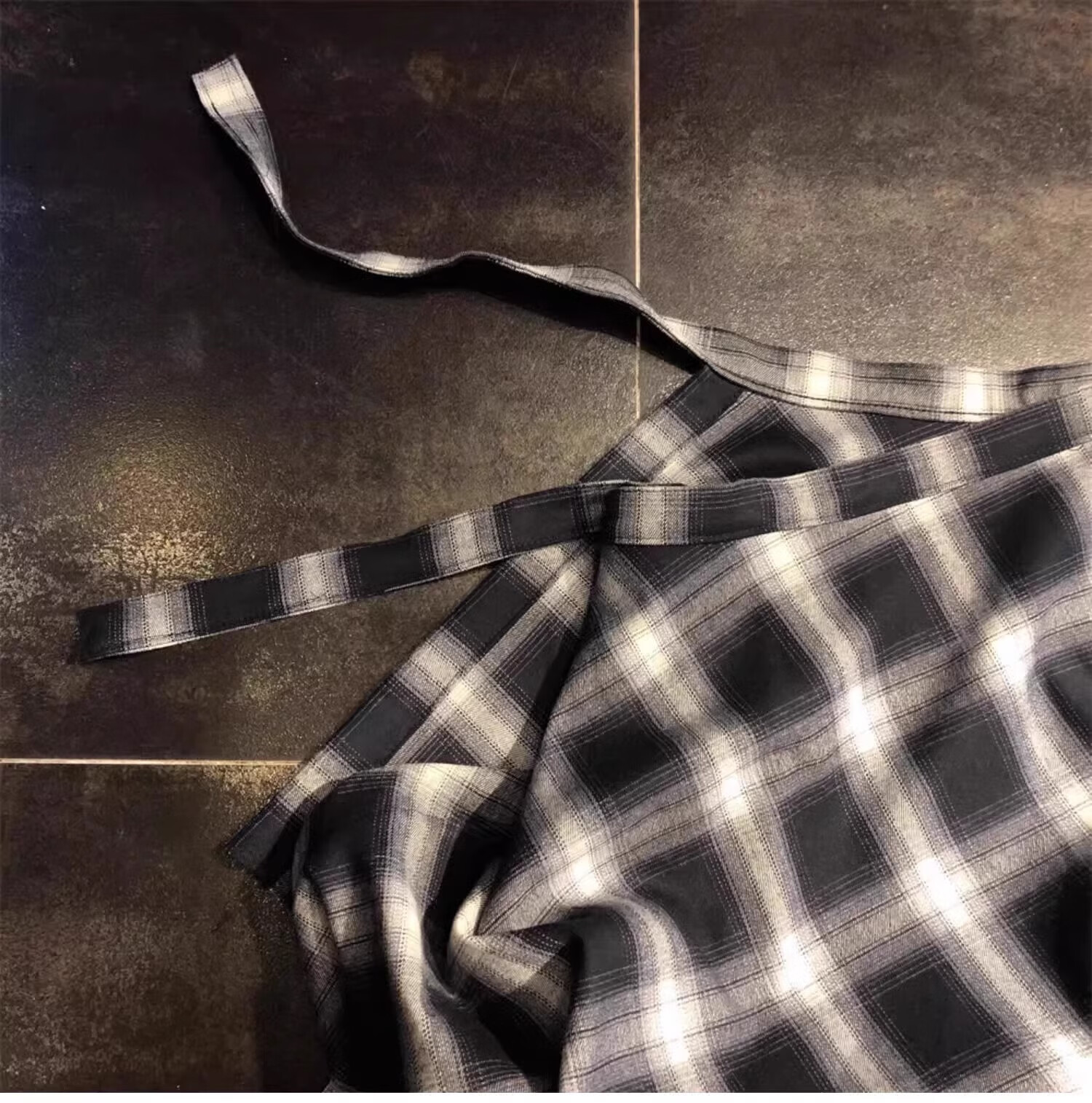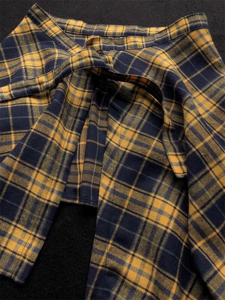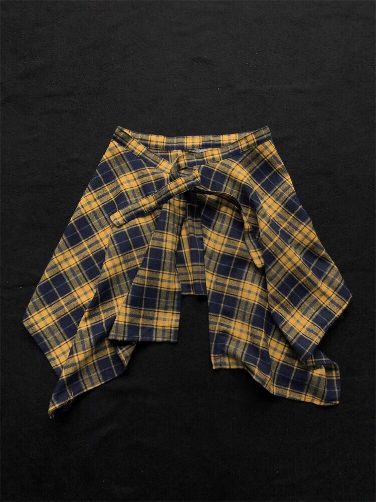 CEENIU Plaid Butt Curtain Women's Hip Covering Artifact Hem Layered Wear Casual Style Skirt One-piece Lace-up Butt Curtain Skirt Black and Yellow Checkered Shirt Skirt One Size