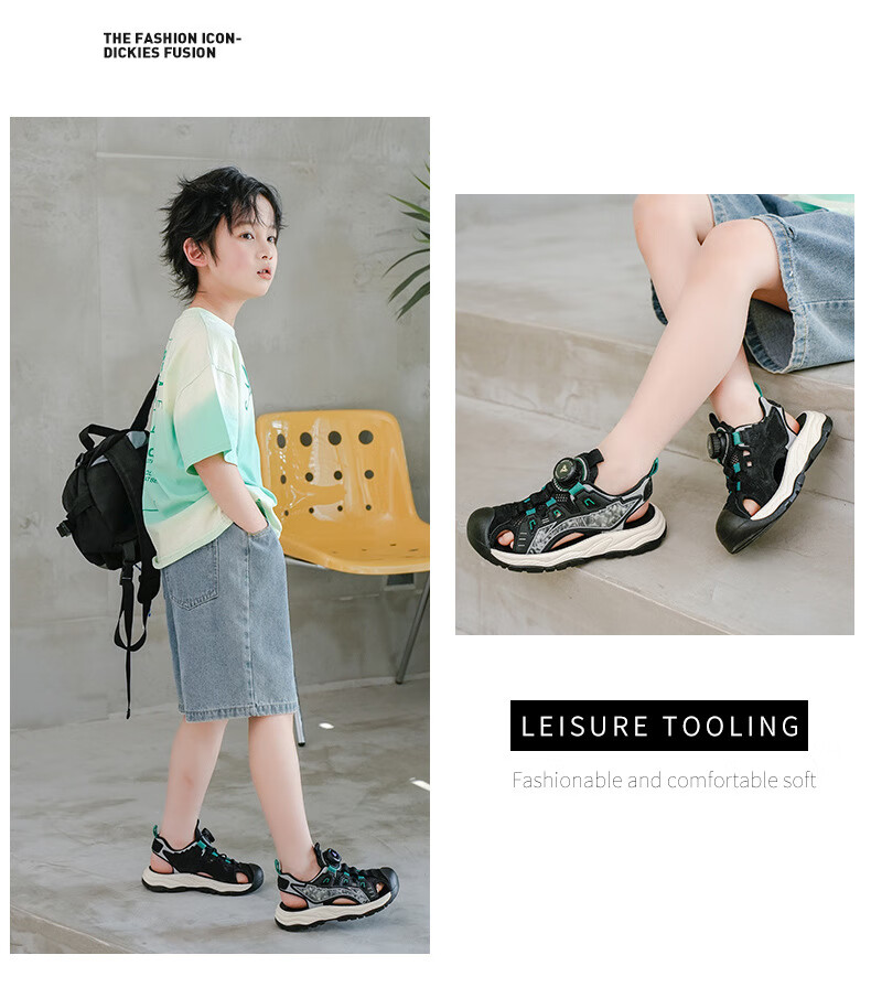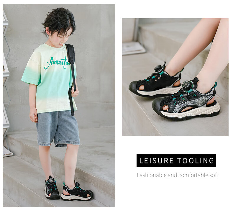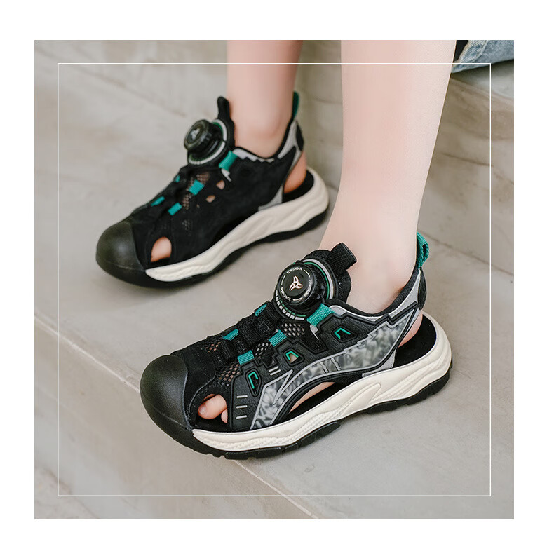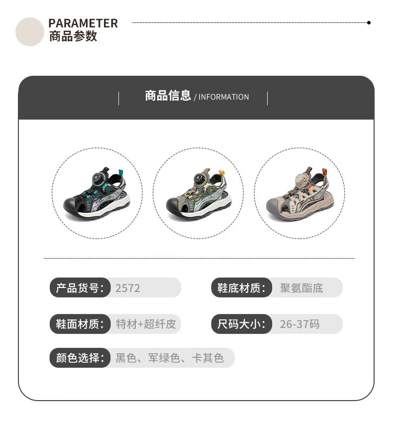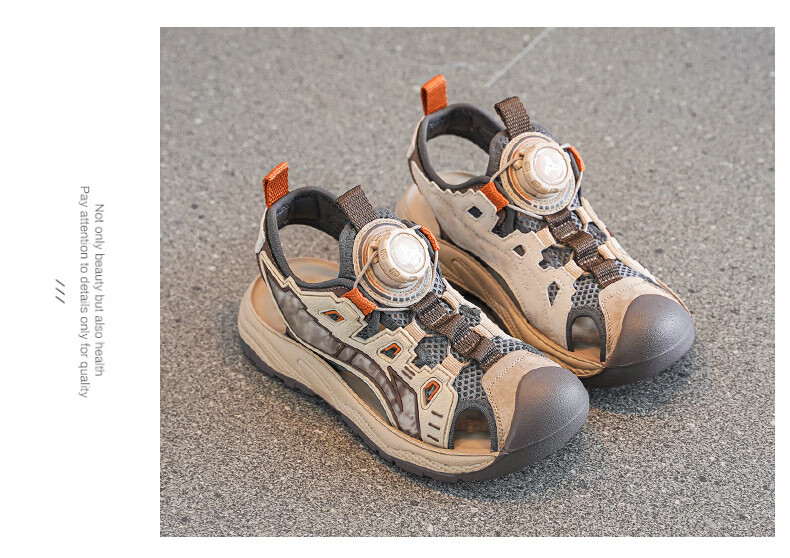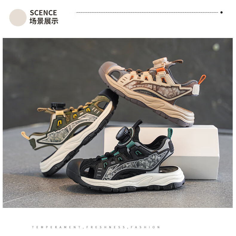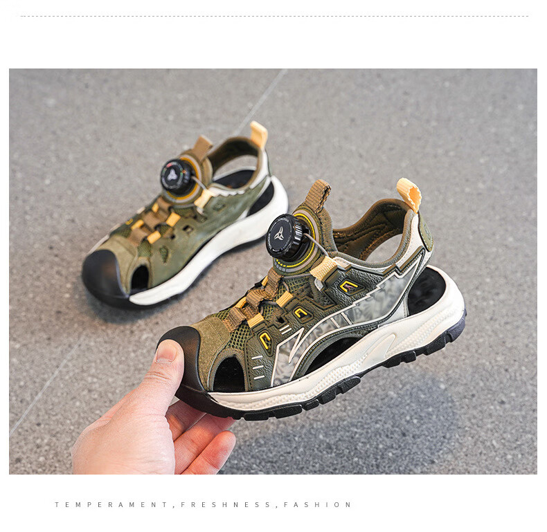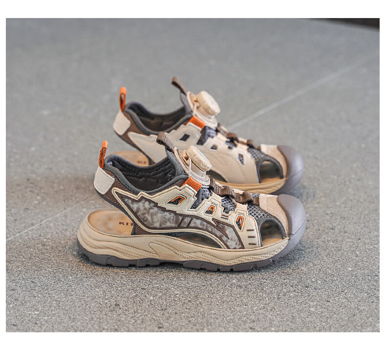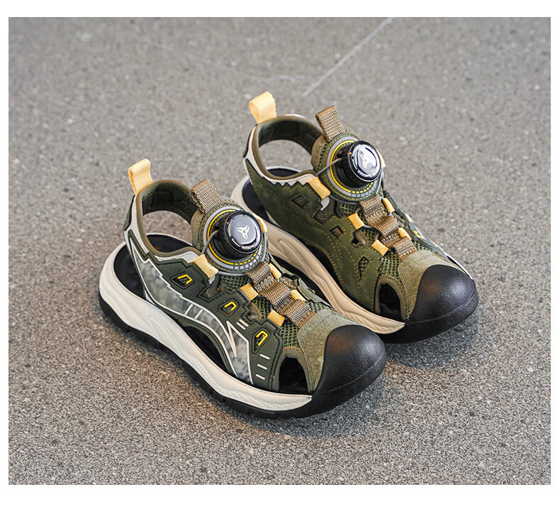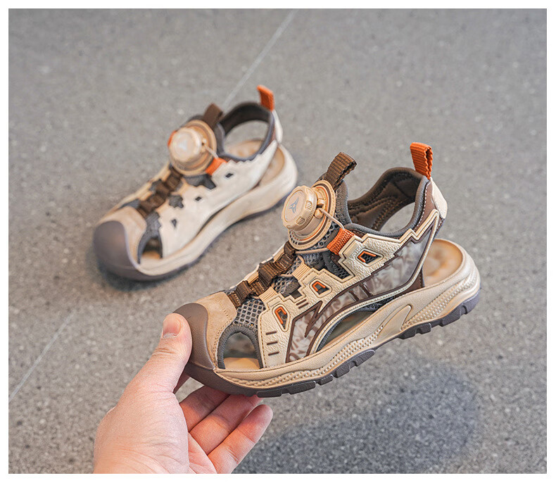 Boys' shoes 2025 summer new style little boy's mesh toe-cap beach shoes casual non-slip children's sports sandals khaki color size 26 inner length 16.5cm