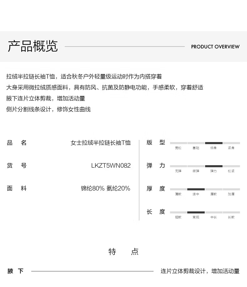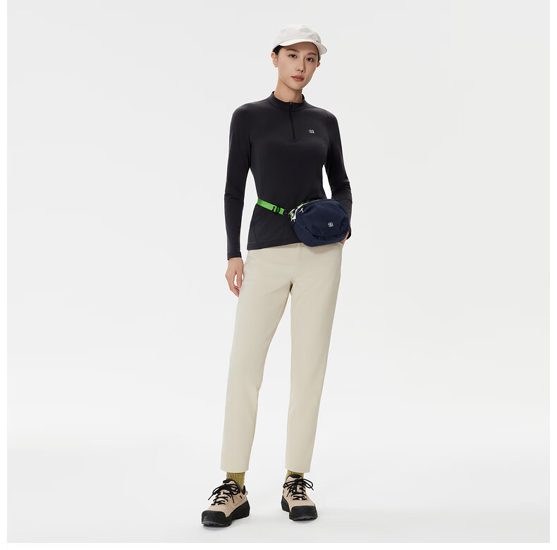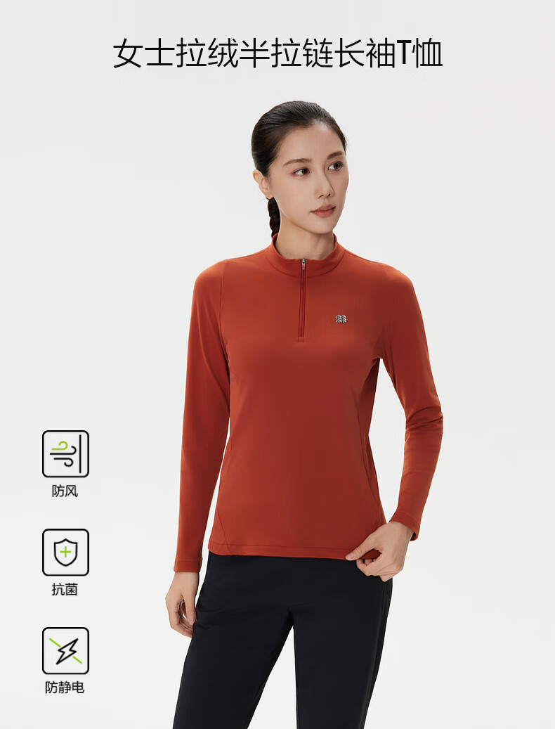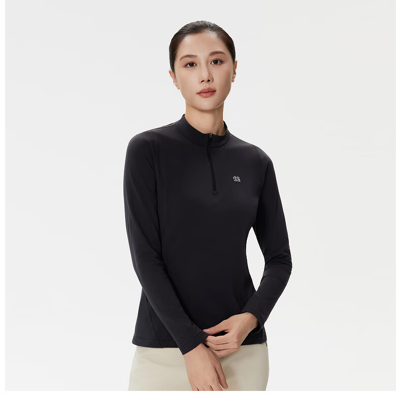 KOLON SPORT/Kolon outdoor casual clothing women's windproof, antibacterial and antistatic brushed half-zip long-sleeved T-shirt LKZT5WN082-BK black M 165/88A