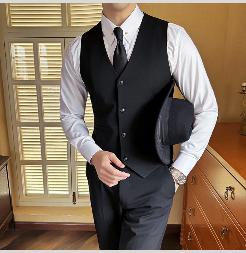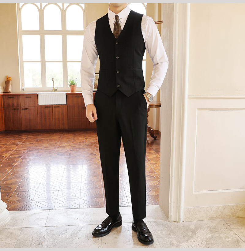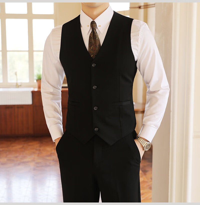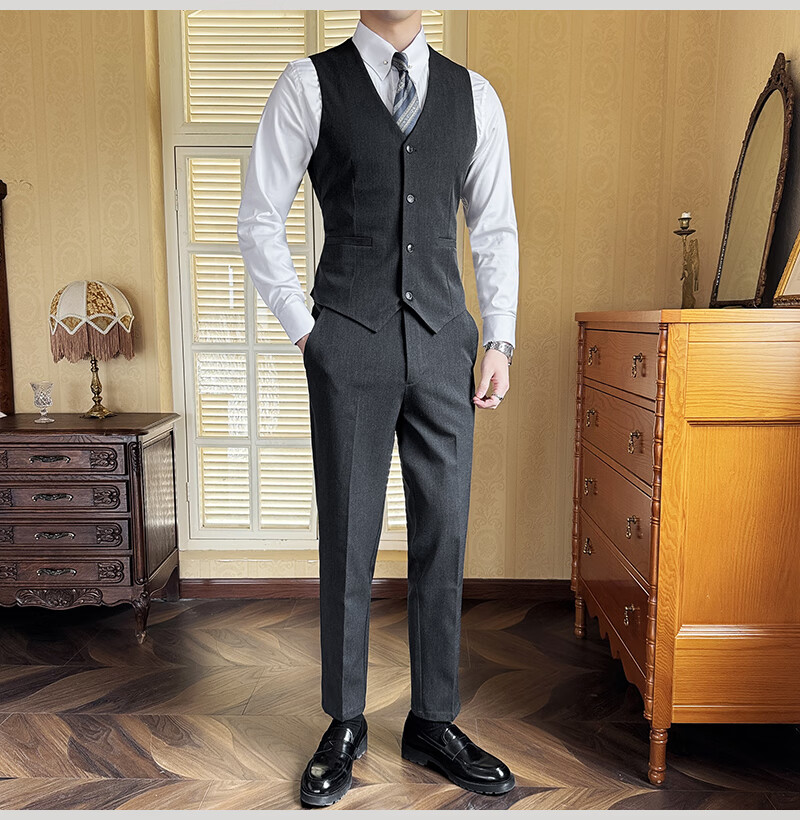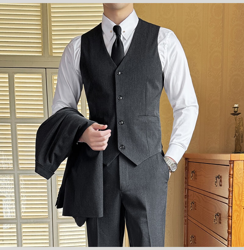ROMON Haute Couture Suit Vest Men's Suit Korean Slim Solid Color Work Wear Vest Wedding Groomsmen Clothing Brother's Outfit Dark Gray (Single Vest) Free Bow Tie 2XL