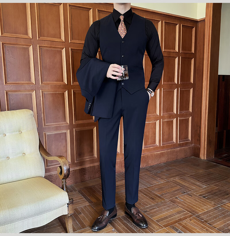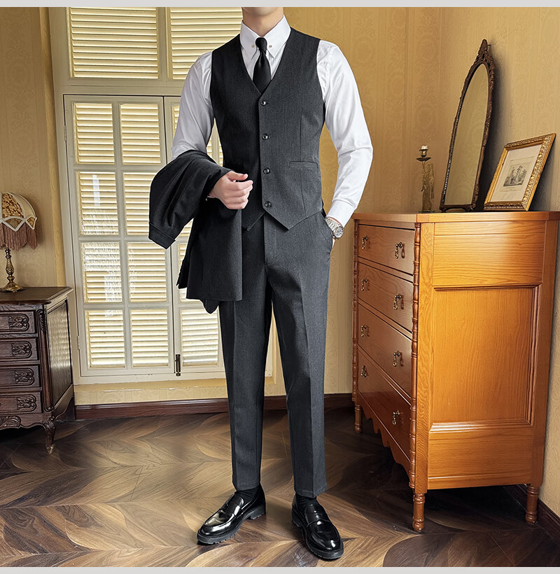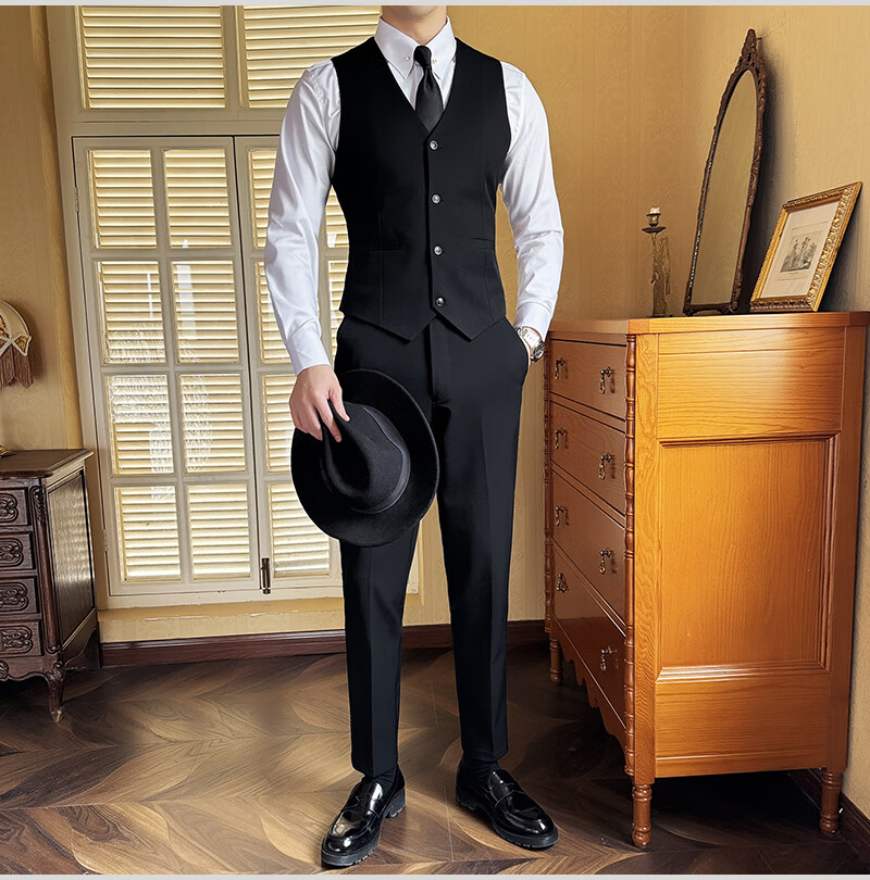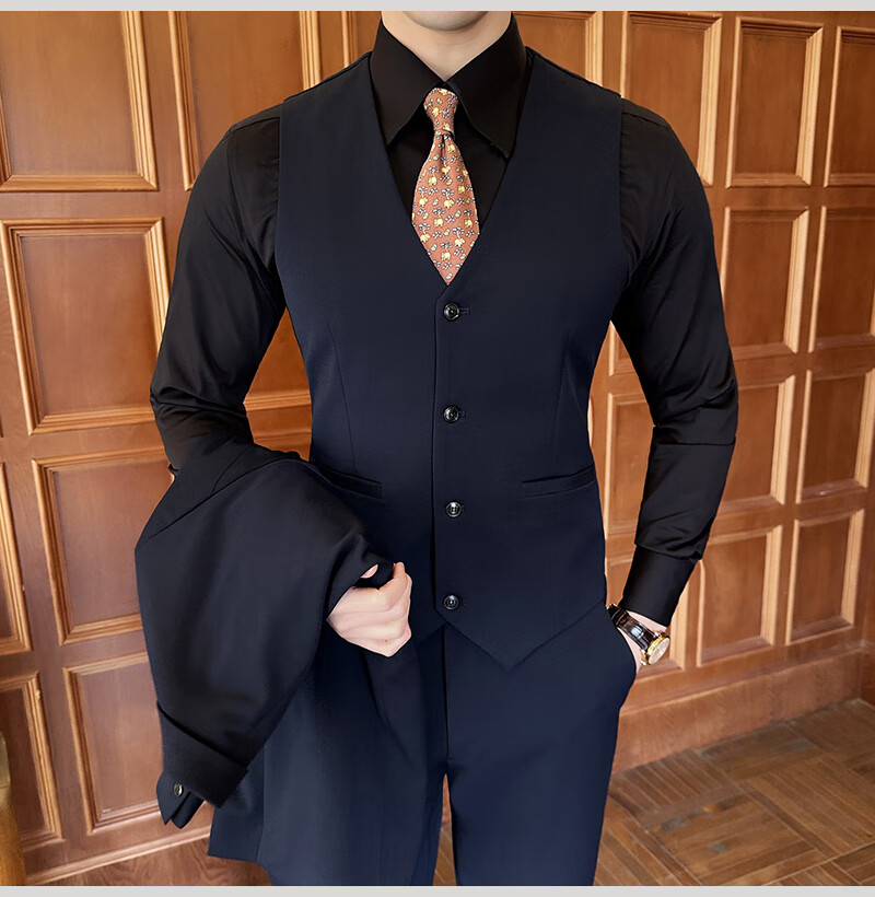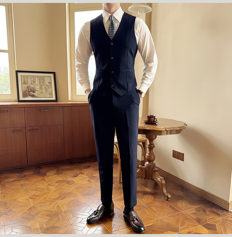 ROMON Haute Couture Suit Vest Men's Suit Korean Slim Solid Color Work Wear Vest Wedding Groomsmen Clothing Brother's Outfit Dark Gray (Single Vest) Free Bow Tie 2XL