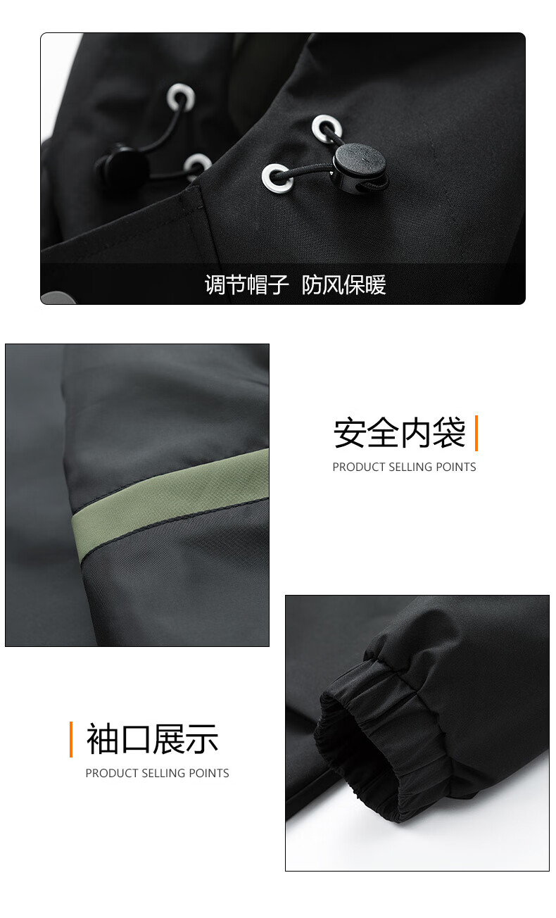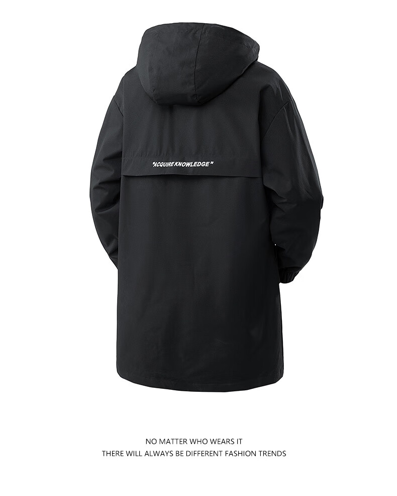 NASA BASE windbreaker men's mid-length autumn trendy coat men's velvet hooded coat men's casual hooded autumn and winter coat black (velvet) XL (120-140Jin Jin equals 0.5 kg)