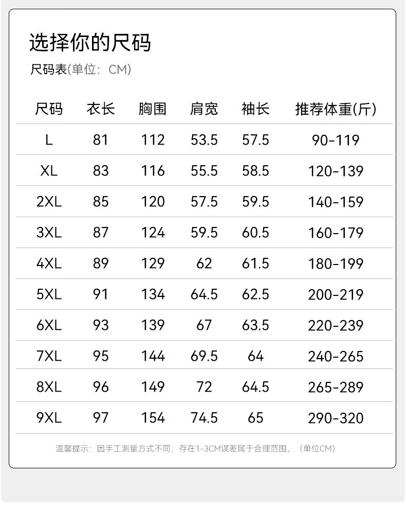 Size (cm) 42 44 46 48 50