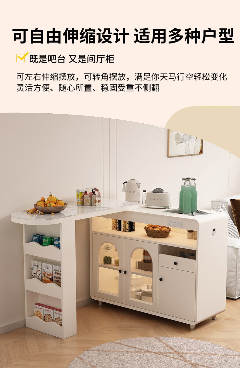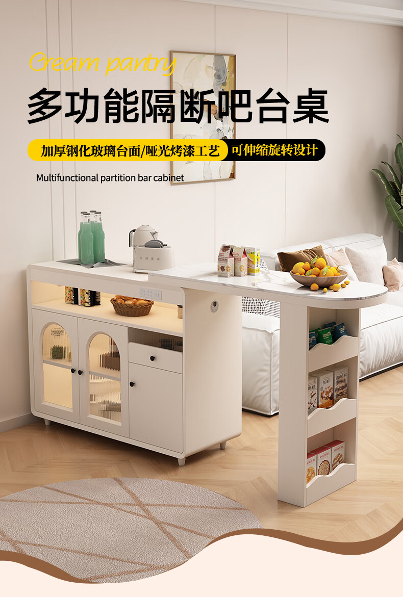 Huang Yusen Cream Style Bar Counter Table Home Balcony Small Apartment Leisure Dining Table Retractable Partition Sideboard Integrated Sofa Sideboard A 81*46*95CM