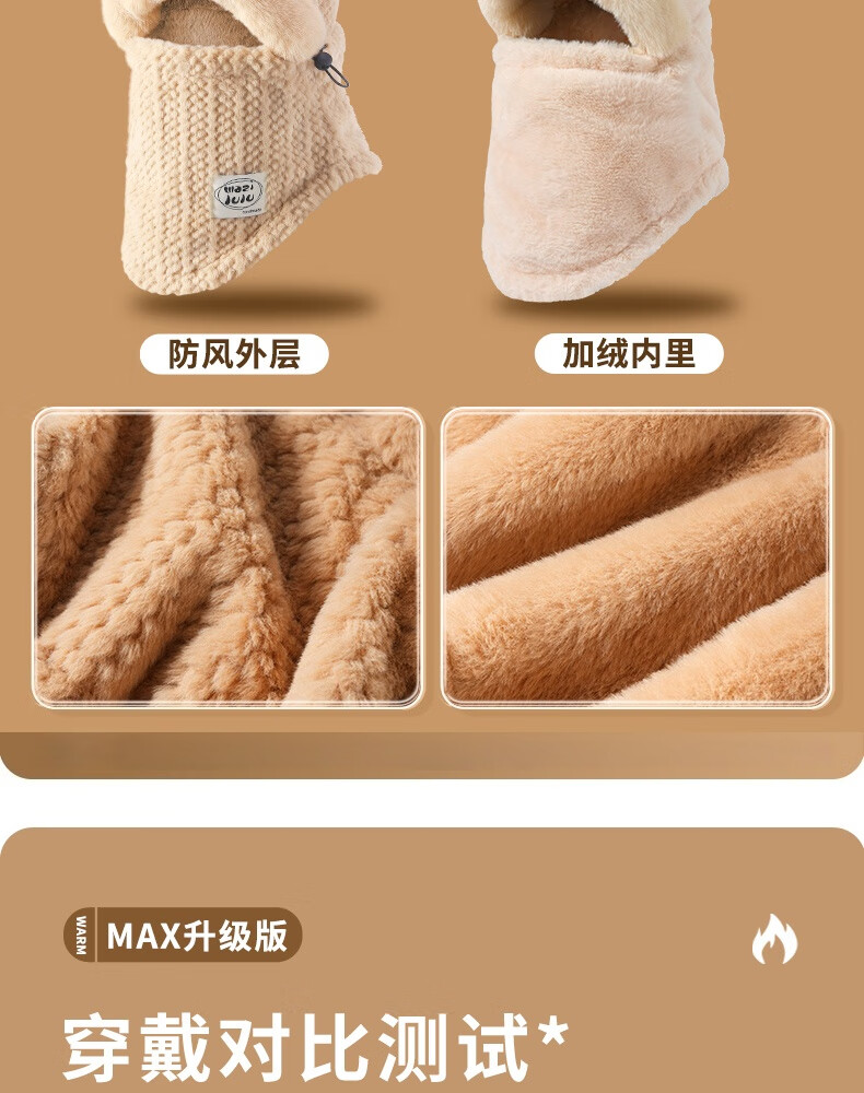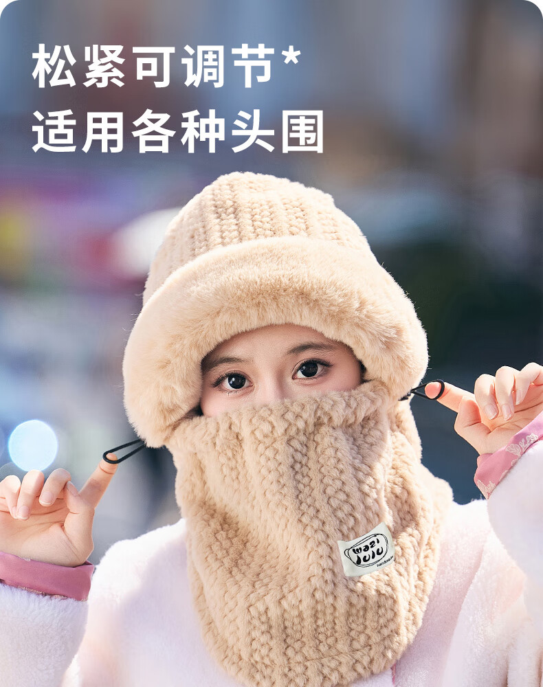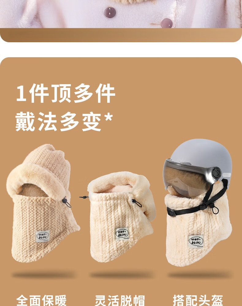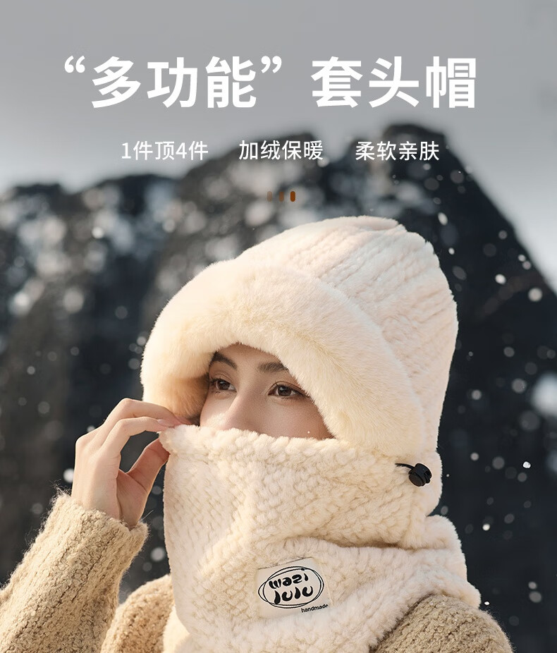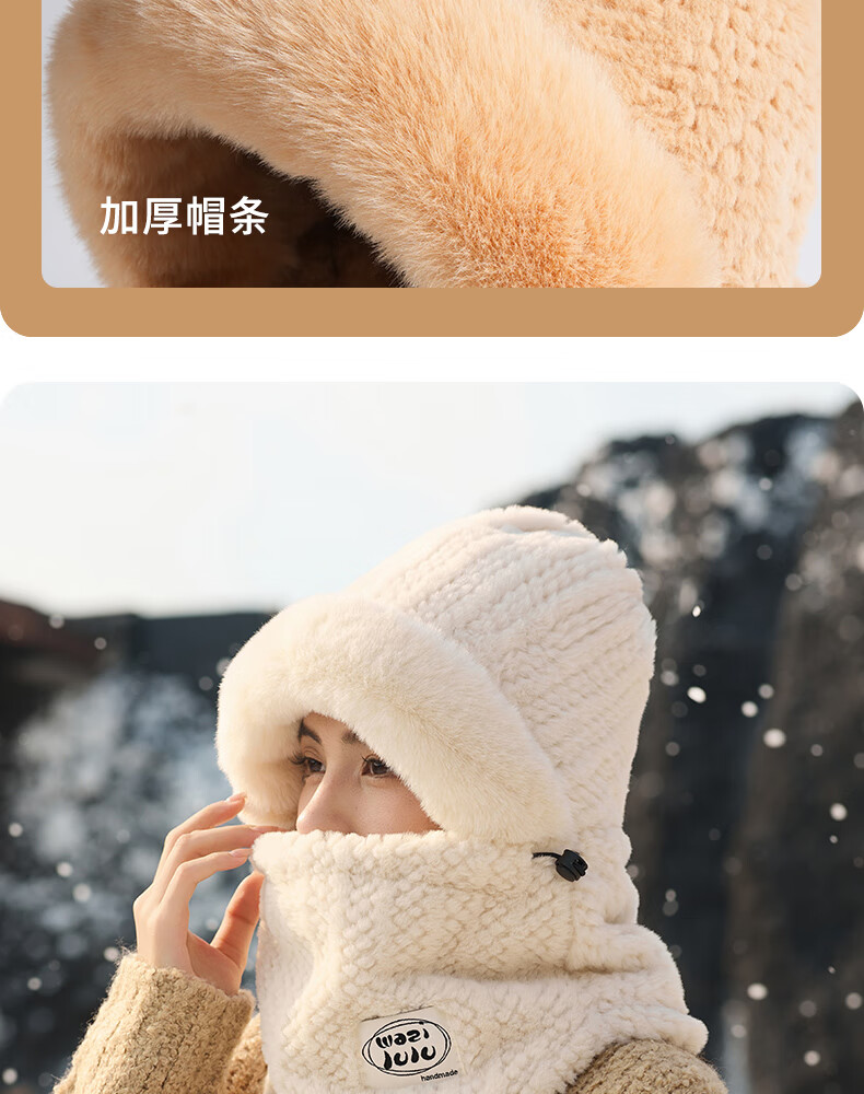 Memaru winter cold-proof hat scarf all-in-one mask for women autumn and winter hat cycling warm windproof scarf mother electric car 1# beige