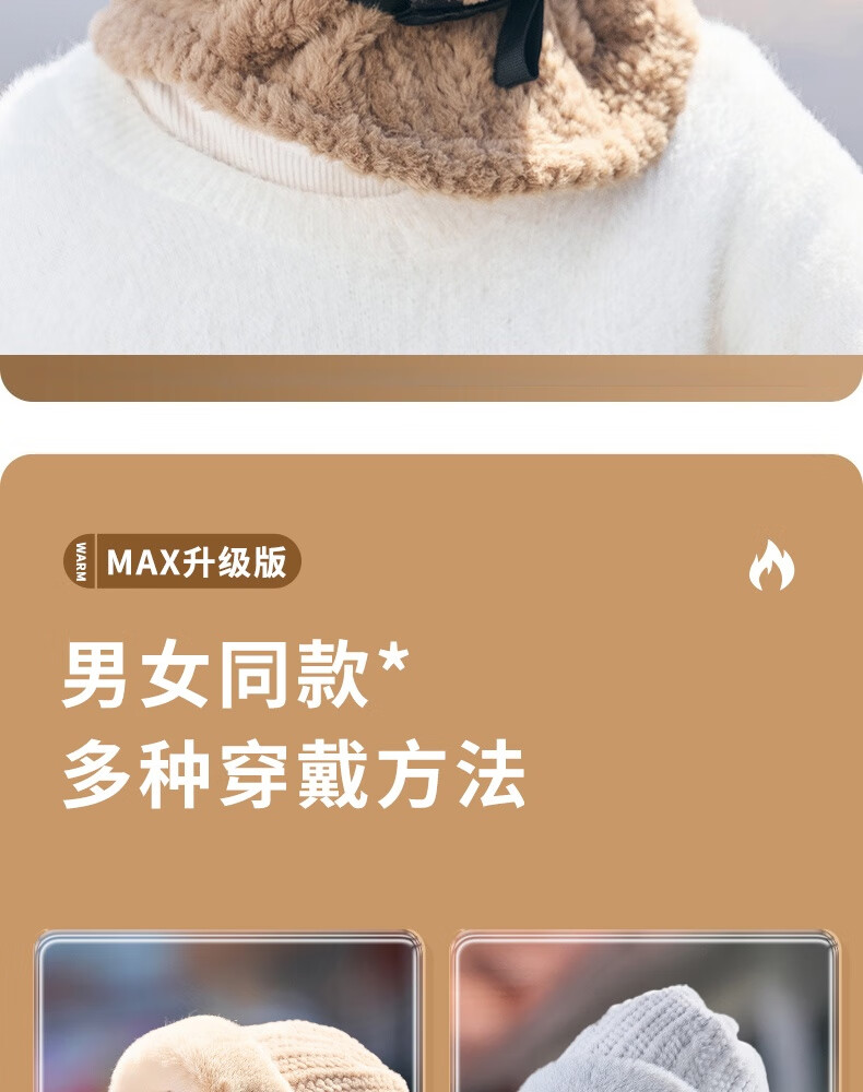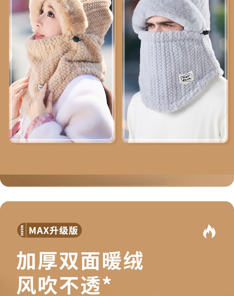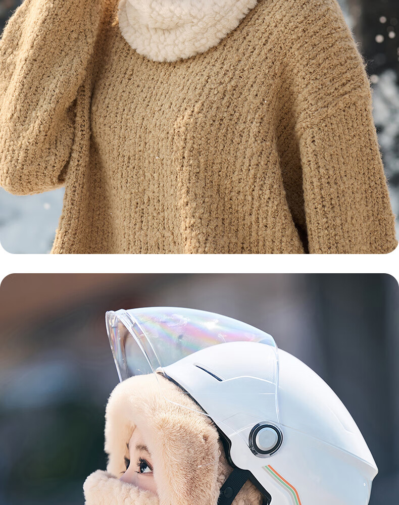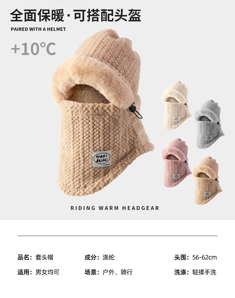 Memaru winter cold-proof hat scarf all-in-one mask for women autumn and winter hat cycling warm windproof scarf mother electric car 1# beige