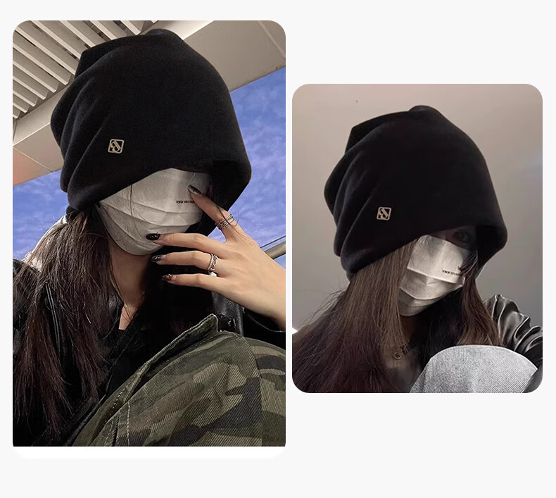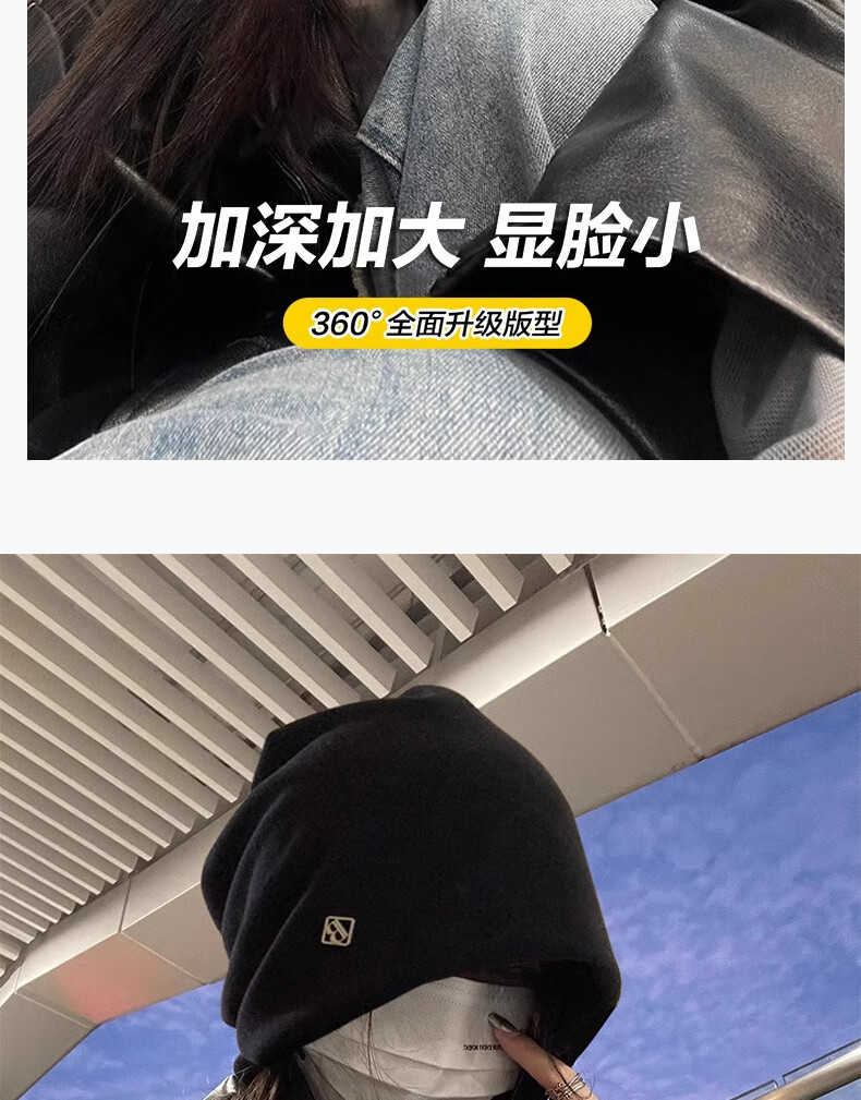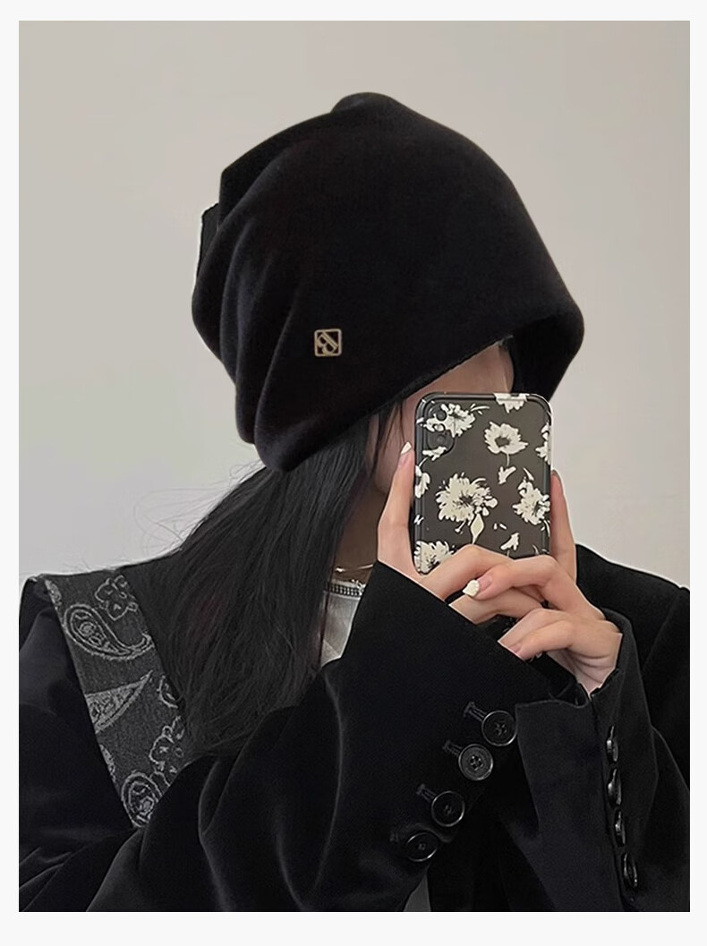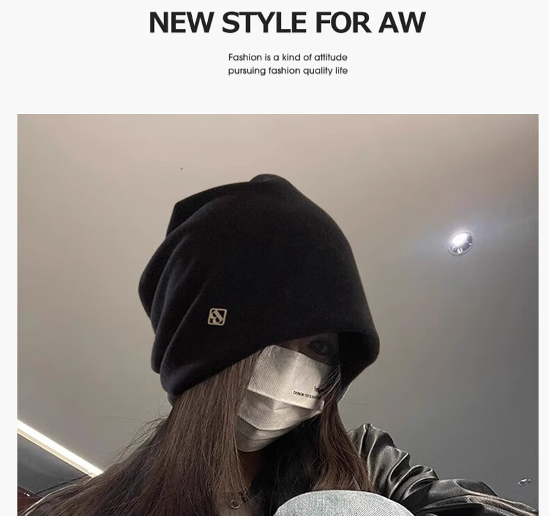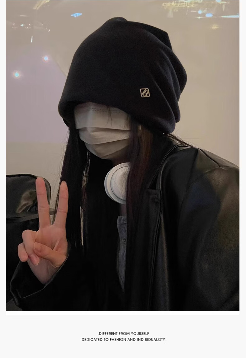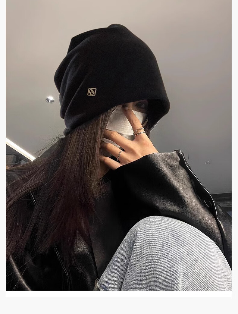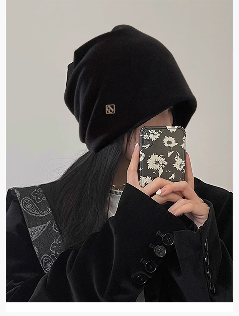 Memaru cold hat high-end metal small label women's 2025 new loose warm knitted niche design Baotou pile hat 1# black