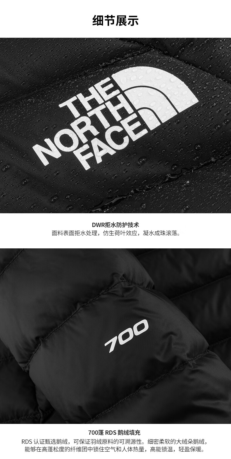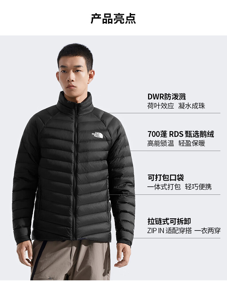 The North Face Down Jacket Men's Thunder Anti-splash 700 Puff Goose Down Lightweight and Warm Outdoor 25th Autumn and Winter New | 8DX2 JK3/Cosmic Black 2XL /185